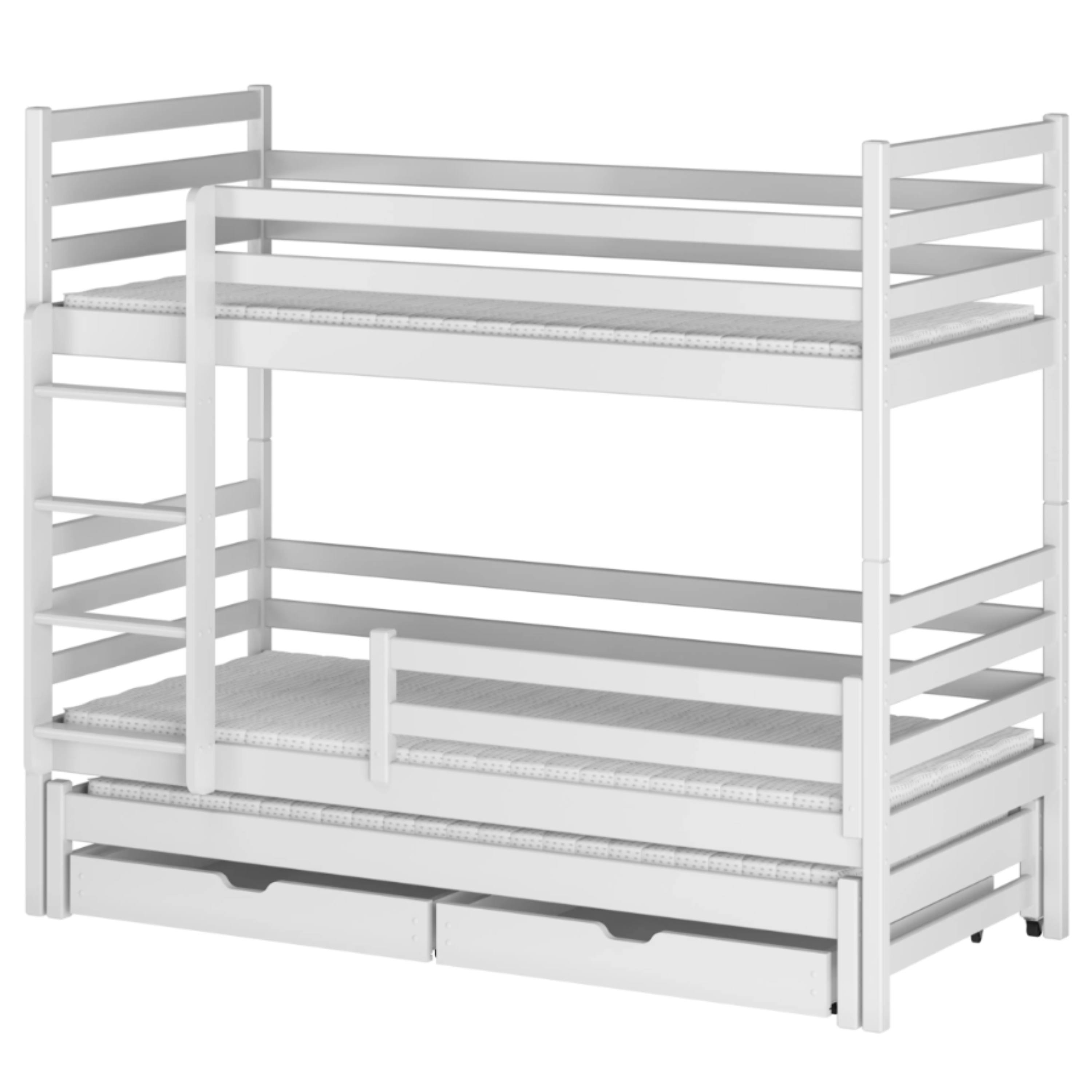 Poschodová posteľ s výsuvným lôžkom ULK - biela, 80x200 cm