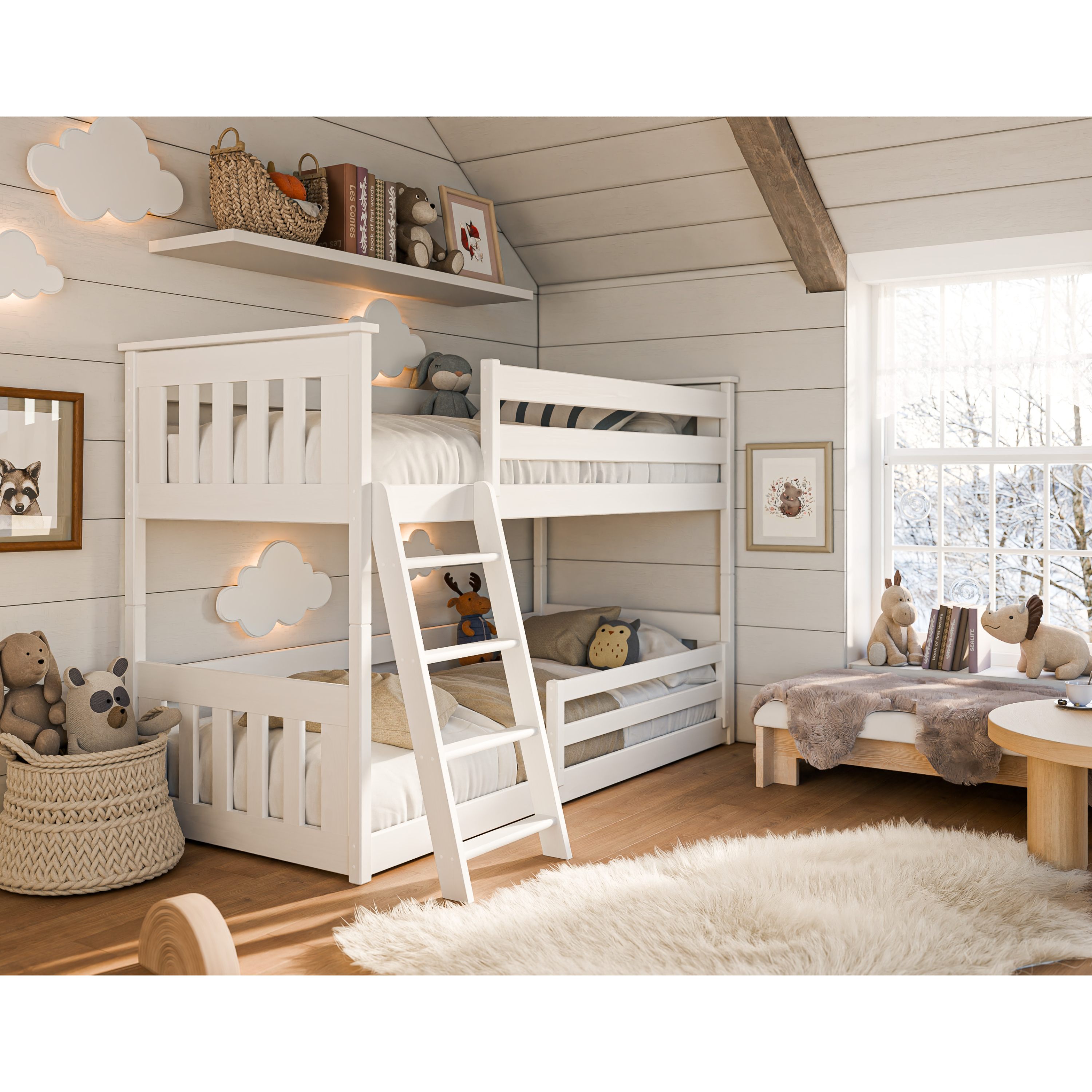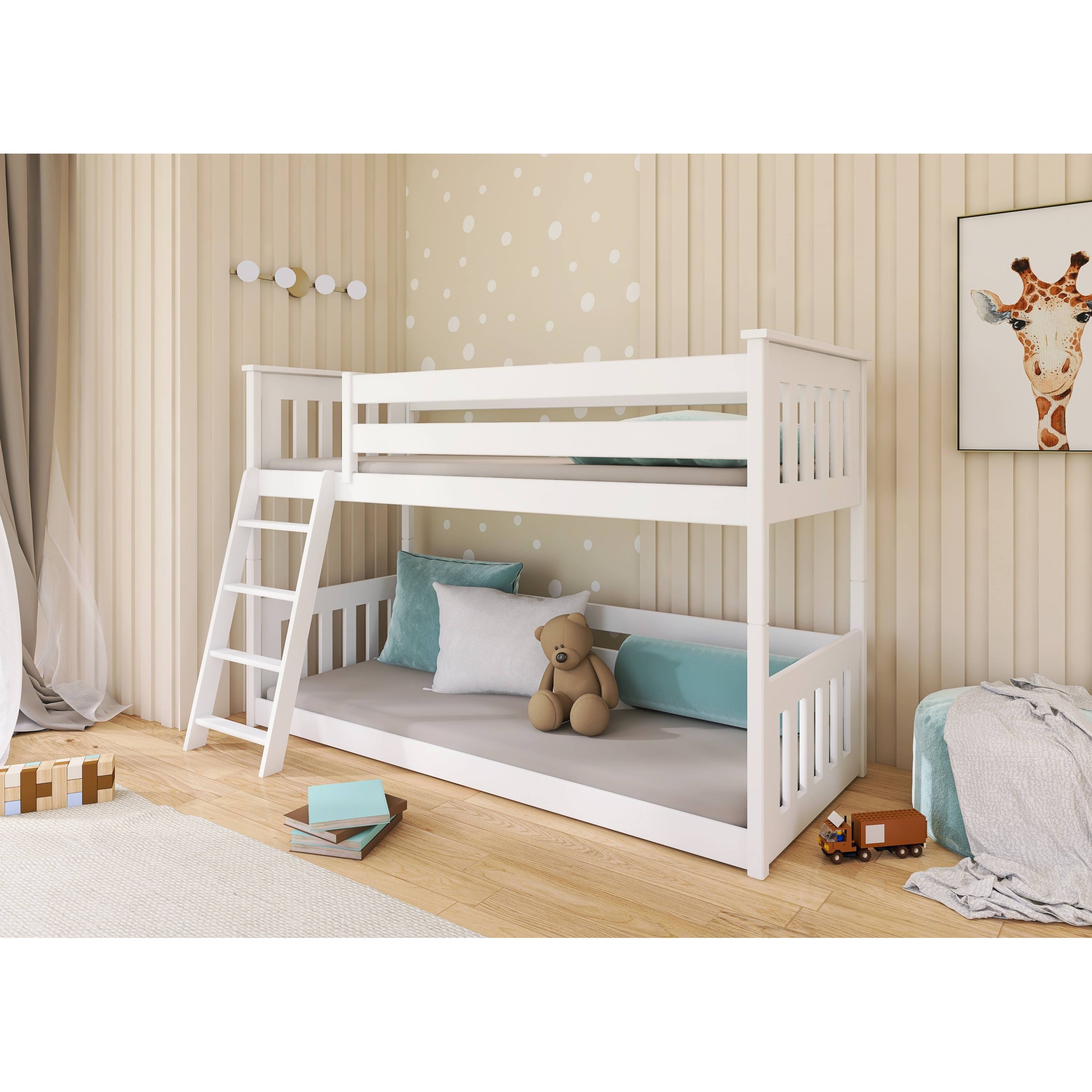 Jej pevná a stabilná konštrukcia je vyrobená z masívneho borovicového dreva v lakovanej úprave. Posteľ ponúka 2 pevné lôžka, kedy vrchné poschodie je ľahko prístupné vďaka rebríku, ktorý je možné namontovať na ľavú alebo pravú stranu. Vrchné lôžko je pre bezpečie vašich detí vybavené bezpečnostnými zábranami.