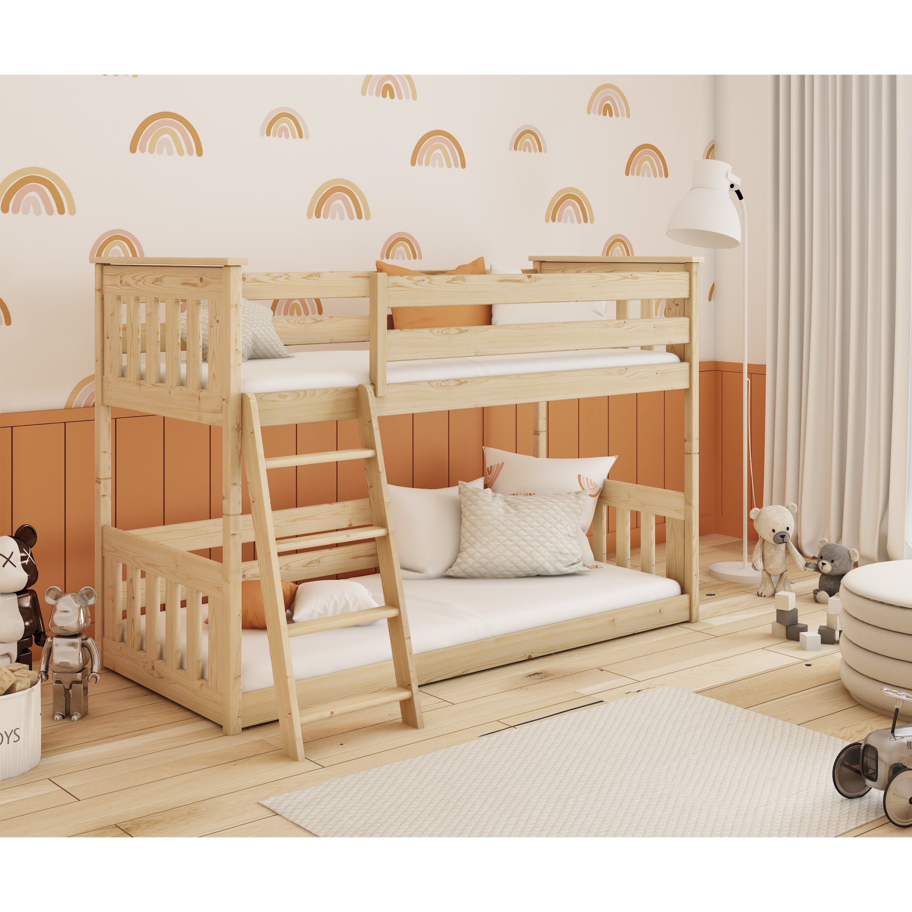 Jej pevná a stabilná konštrukcia je vyrobená z masívneho borovicového dreva v lakovanej úprave. Posteľ ponúka 2 pevné lôžka, kedy vrchné poschodie je ľahko prístupné vďaka rebríku, ktorý je možné namontovať na ľavú alebo pravú stranu. Vrchné lôžko je pre bezpečie vašich detí vybavené bezpečnostnými zábranami.