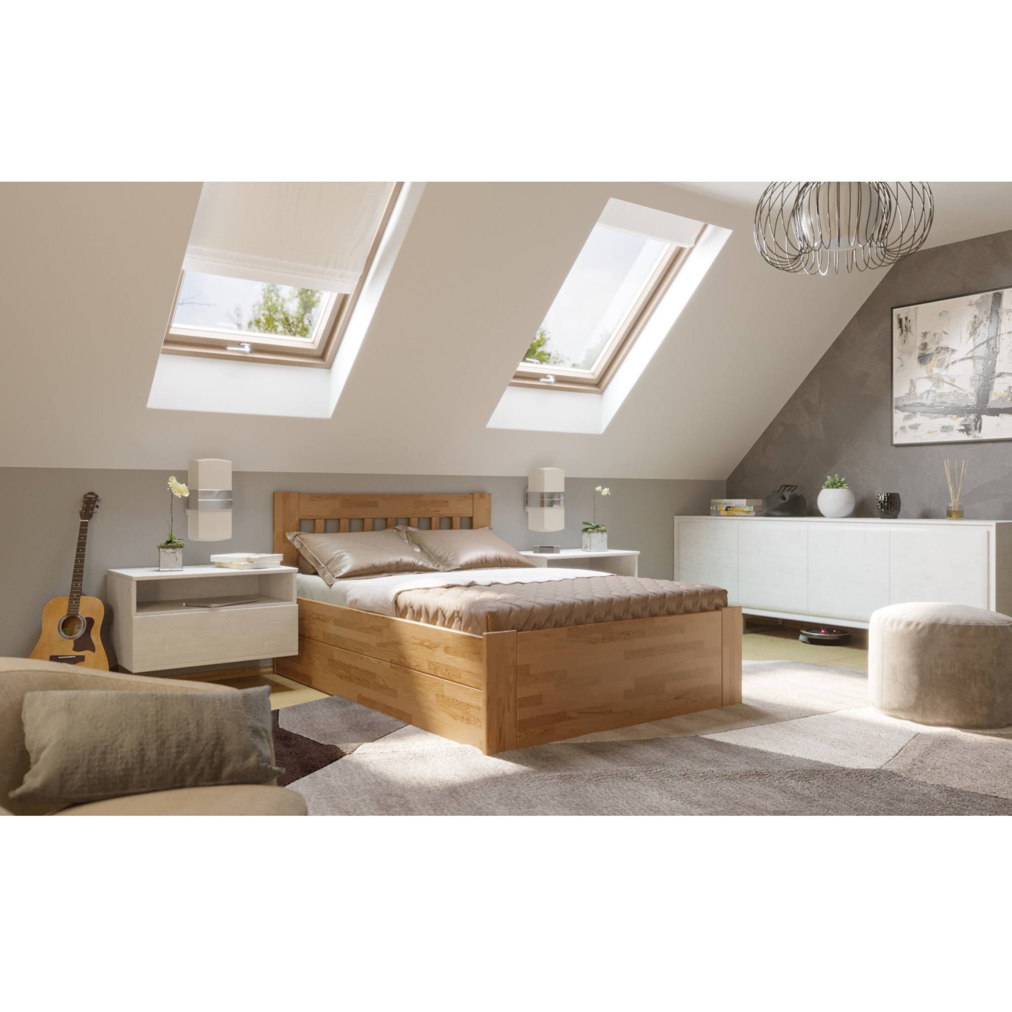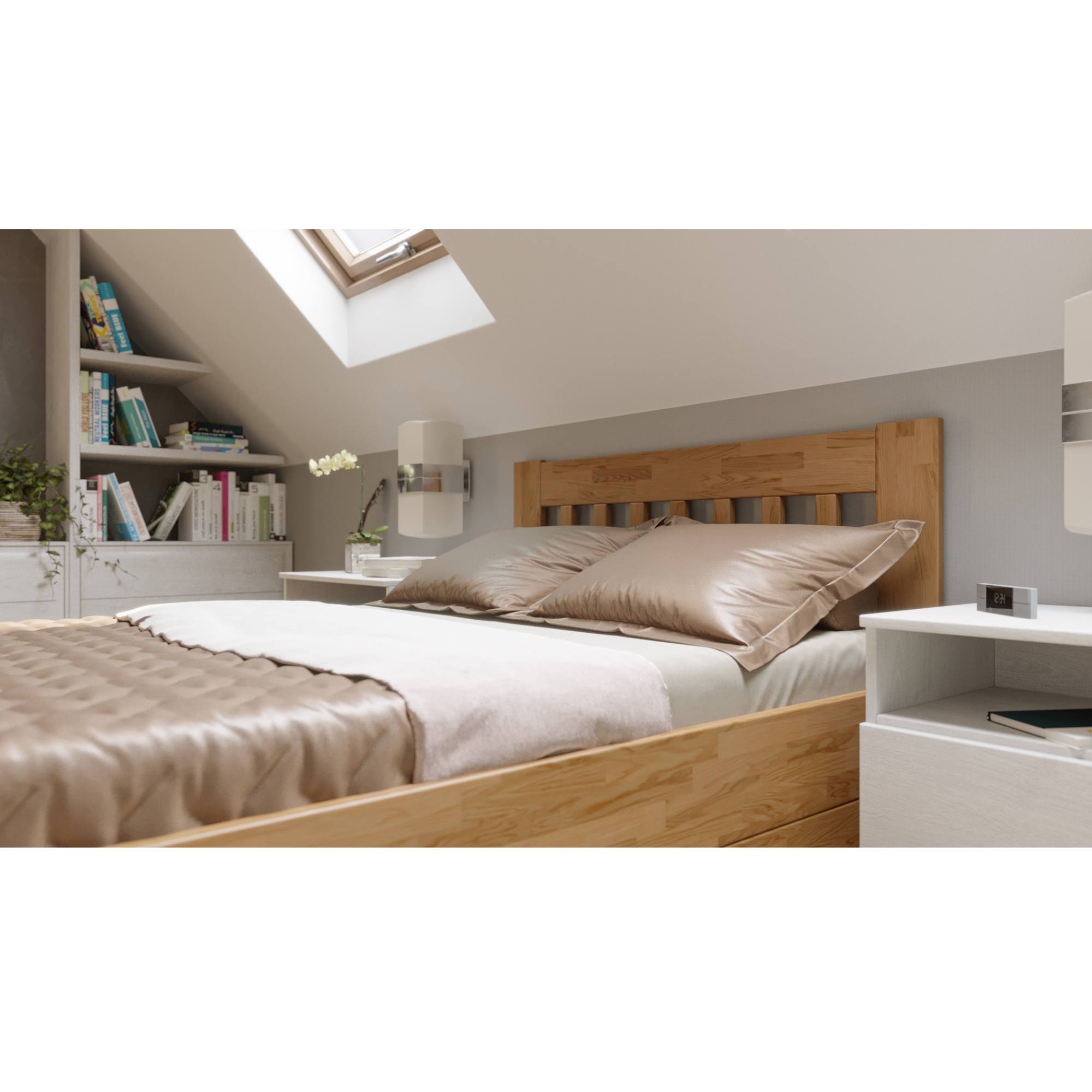 - Doplňujúca poznámka: Posteľ z dubového masívneho dreva je morená do odtieňa svetlý orech. Nosnosť na jednu ložnú plochu 98 kg.