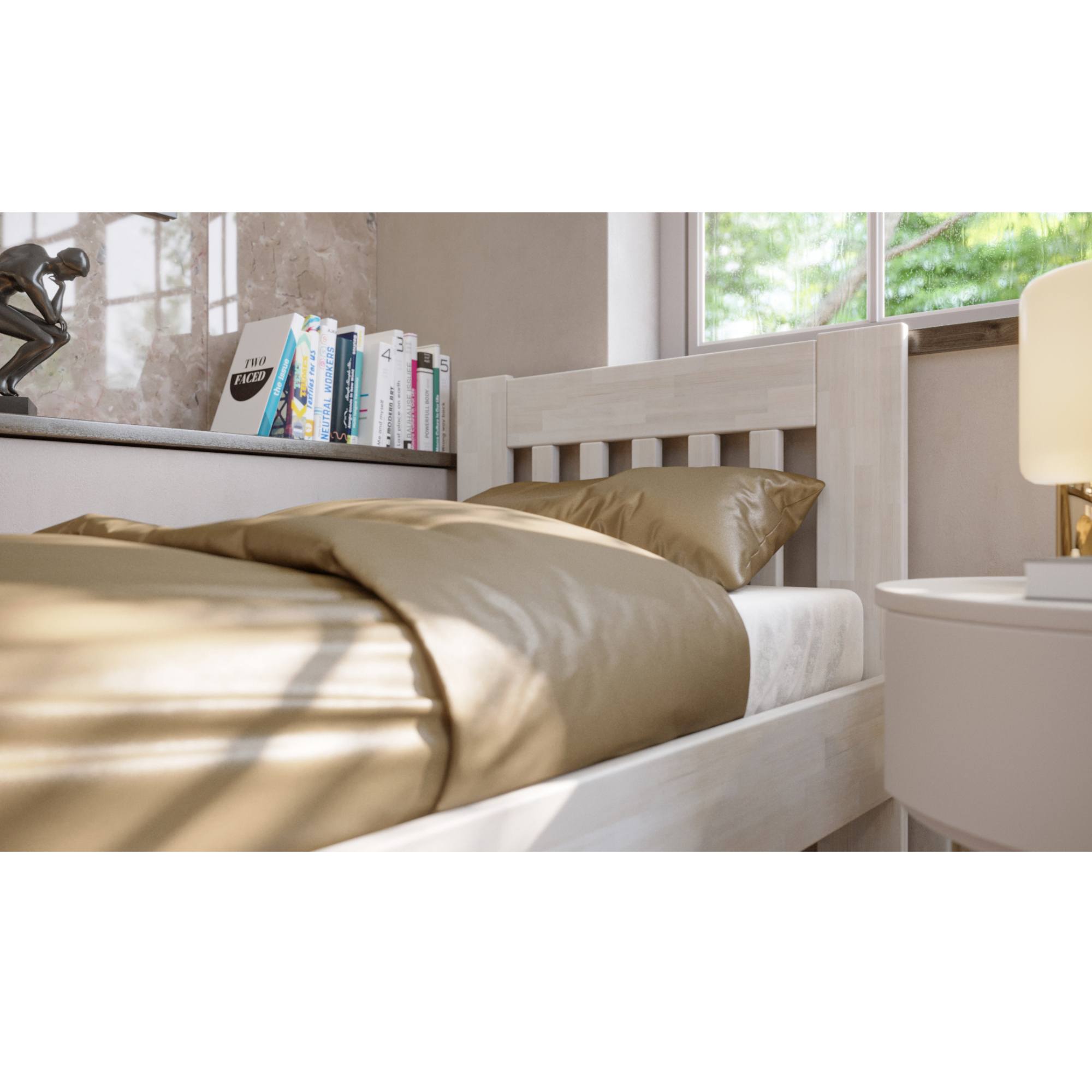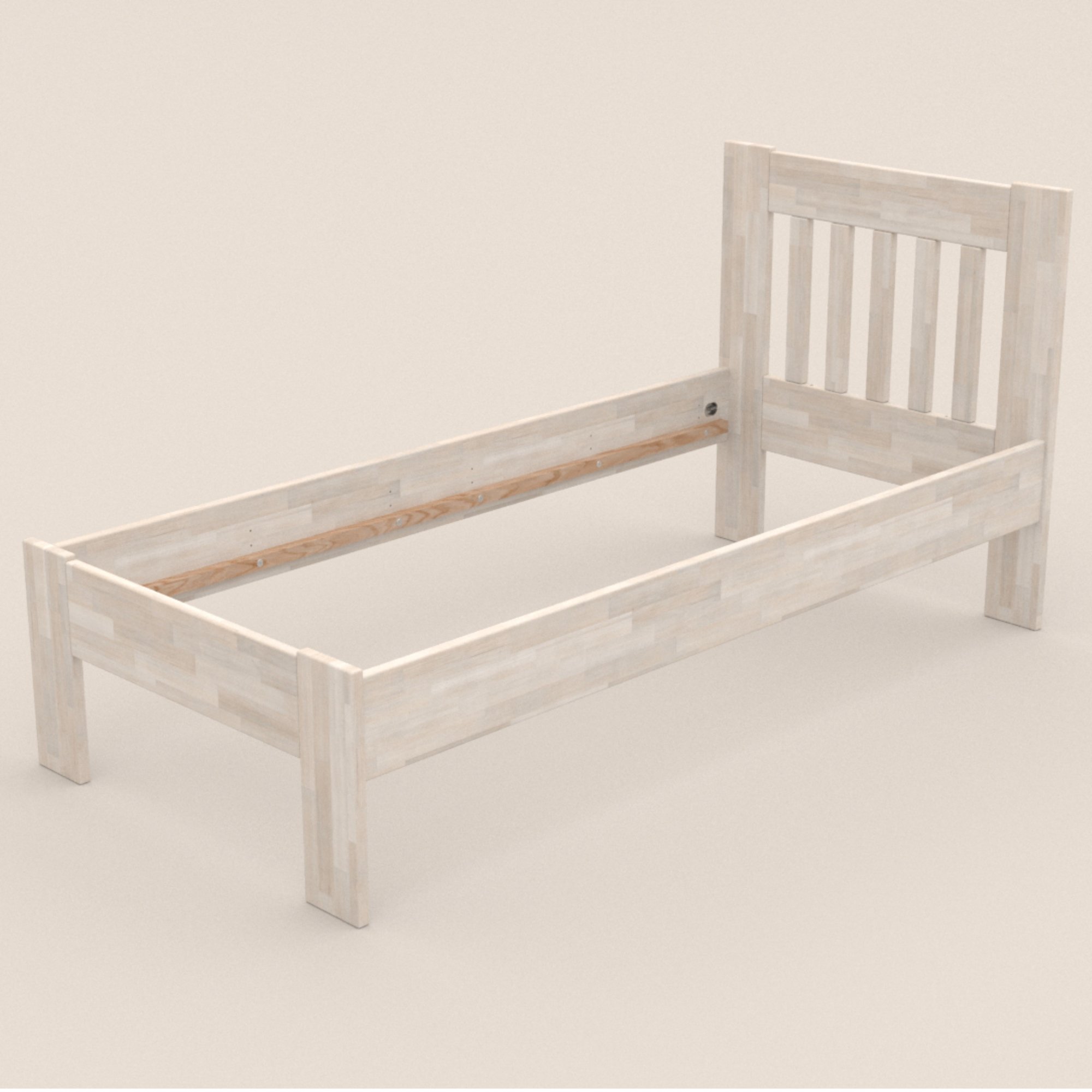 - Doplňujúca poznámka: Posteľ z bukového masívneho dreva je morená do bieleho odtieňa. Maximálna nosnosť celej postele je 130 kg.