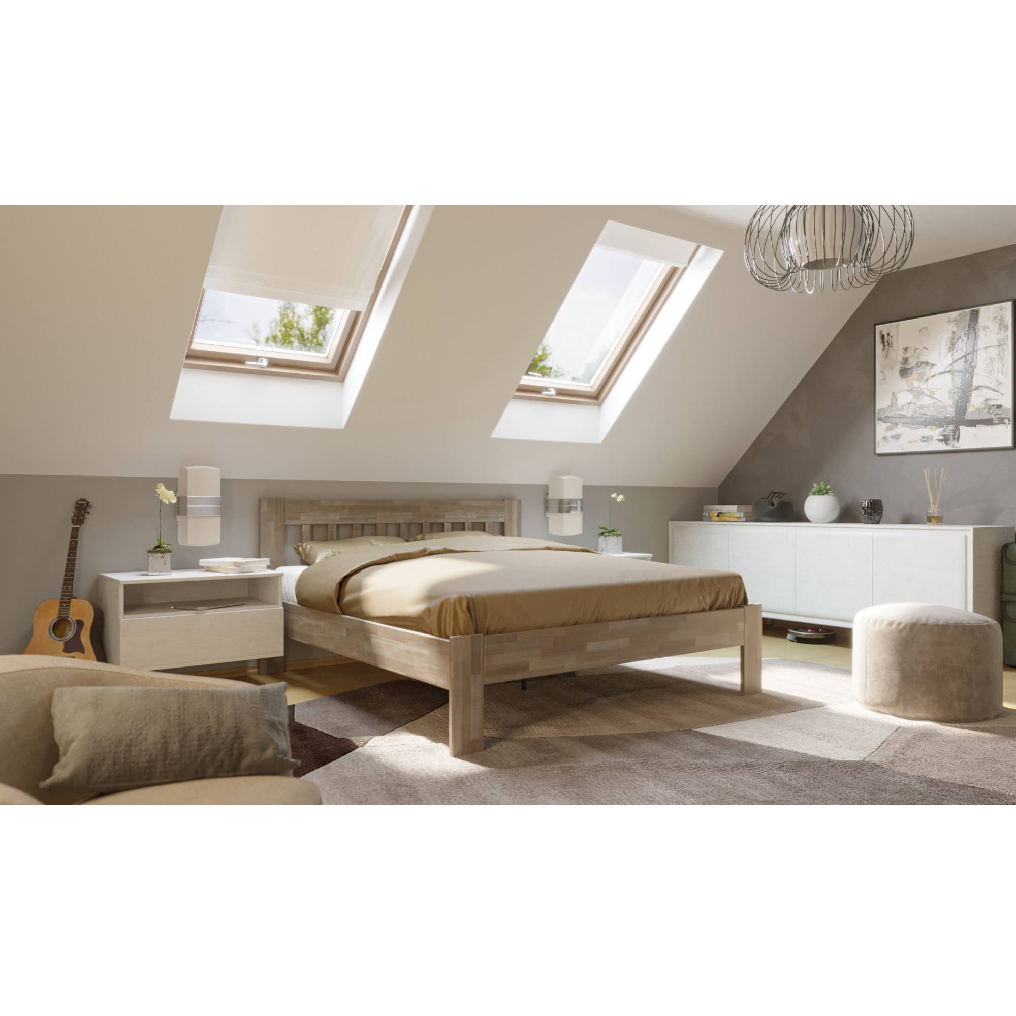 - Doplňujúca poznámka: Posteľ z bukového masívneho dreva je morená do sivého odtieňa. Nosnosť 98 kg na jednu ložnú plochu.