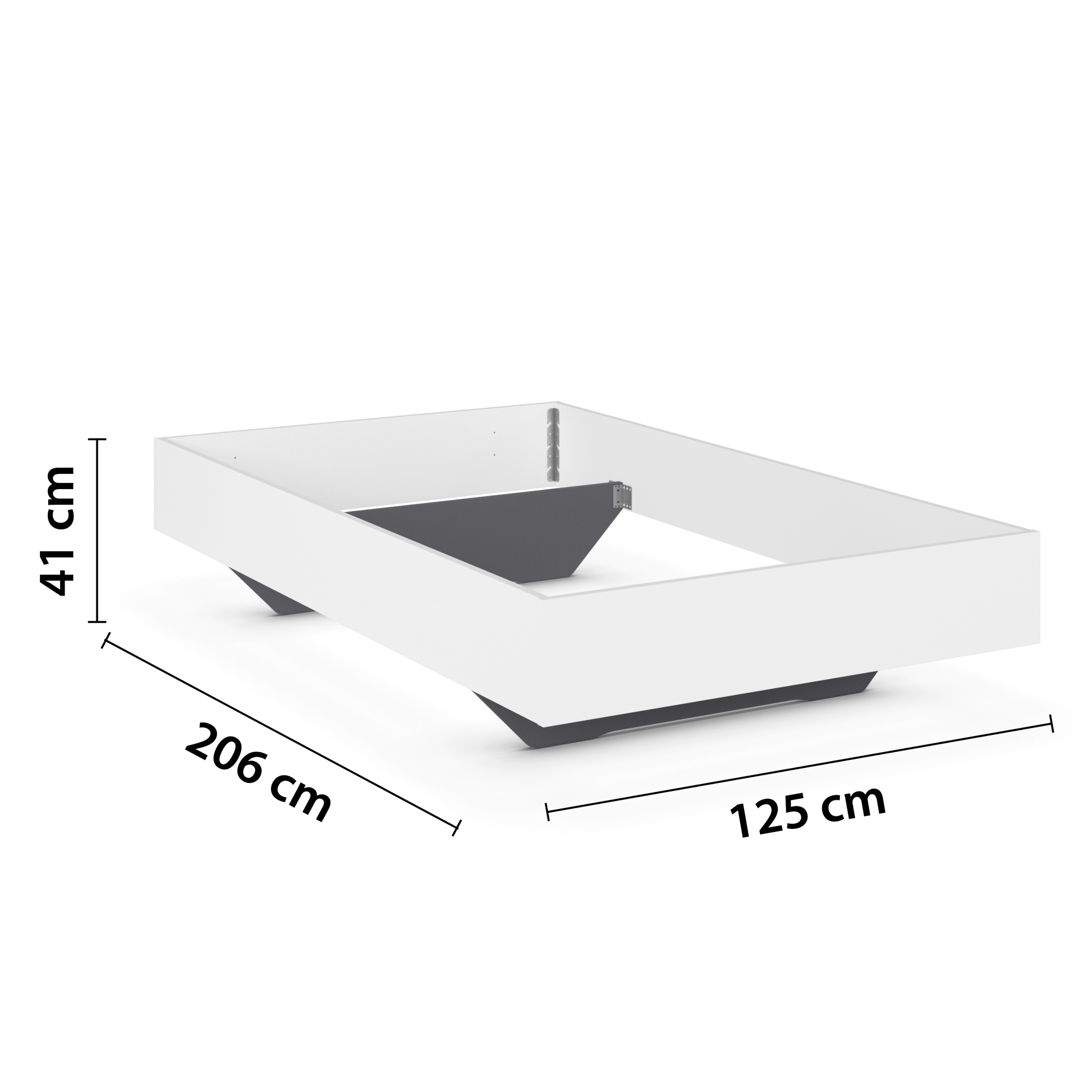 Vyrobený je z pevnej drevotrieskovej dosky, ktorá je pokrytá špeciálnym tlačeným povrchom. Ten zaručuje dlhú životnosť bez obáv z odlupovania vrchných vrstiev. Posteľ je dodávaná bez matraca a roštu. K tejto posteli je nutné dokúpiť zosilnený rošt v ráme, ktorý si môžete vybrať z našej ponuky roštov. Samostatne si je možné dokúpiť aj čelo v rovnakom či odlišnom dekore a zostaviť si tak lôžko podľa vašich predstáv.
