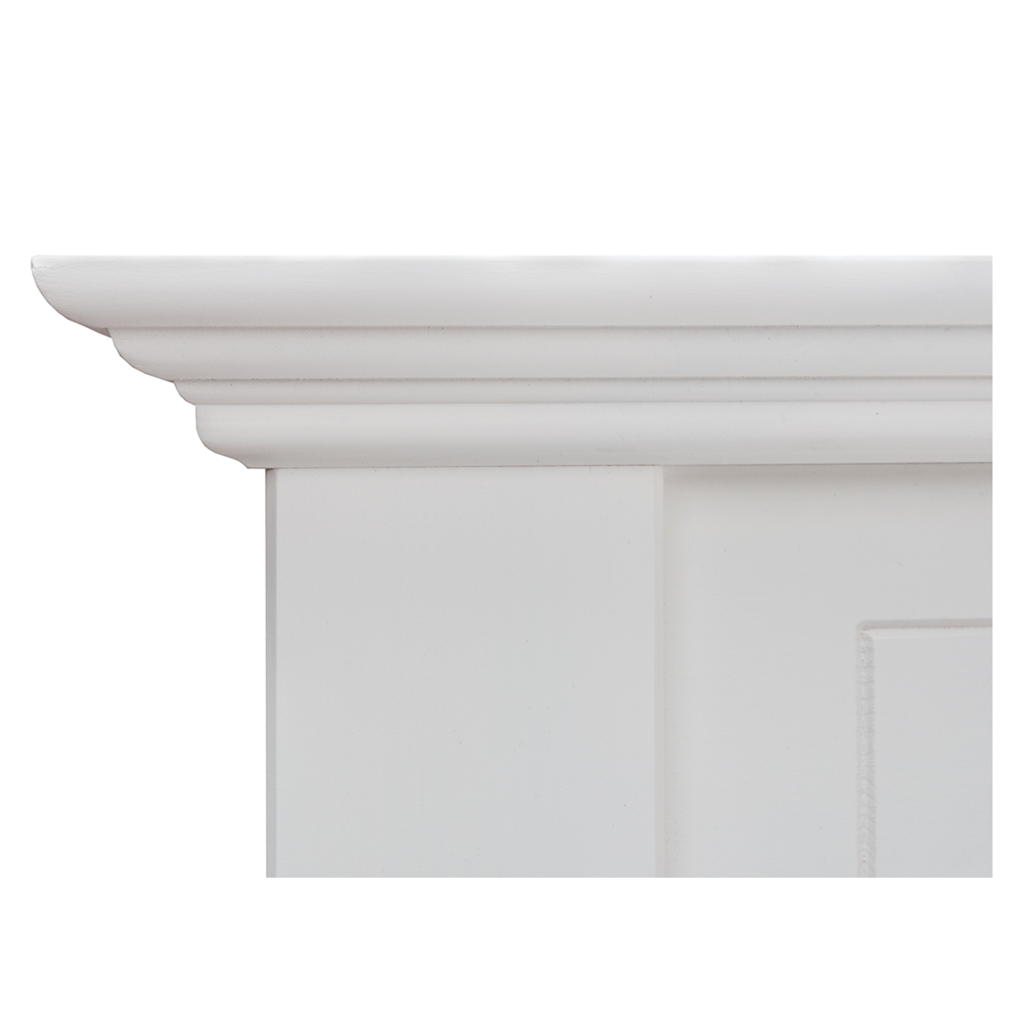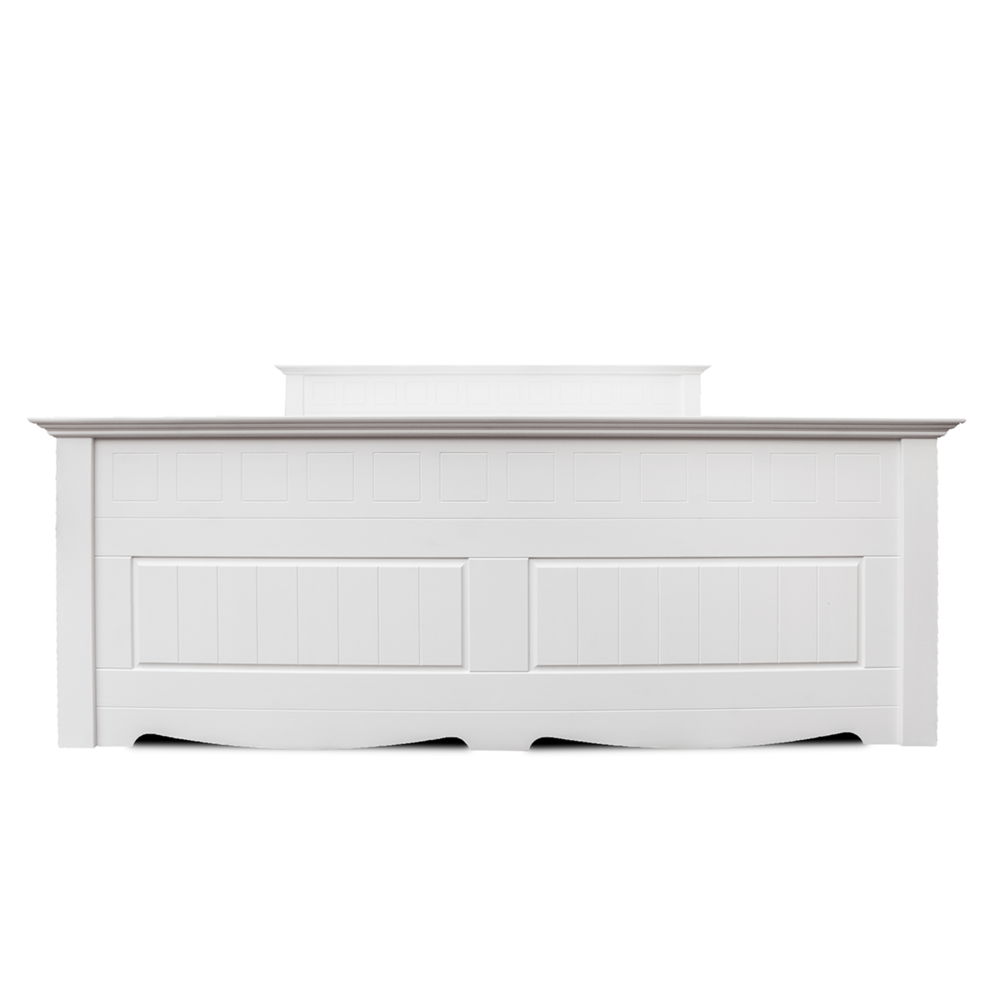 Manželská posteľ BELLU v bielom nadčasovom vyhotovení je ozdobená množstvom ozdobných prvkov ako je dekoratívne frézovanie alebo ozdobné pilastre. Vďaka týmto detailom nábytok pôsobí zaujímavým, romantickým dojmom. Vzhľadom na jej čistý vzhľad ju ľahko skombinujete s ďalším vybavením spálne.