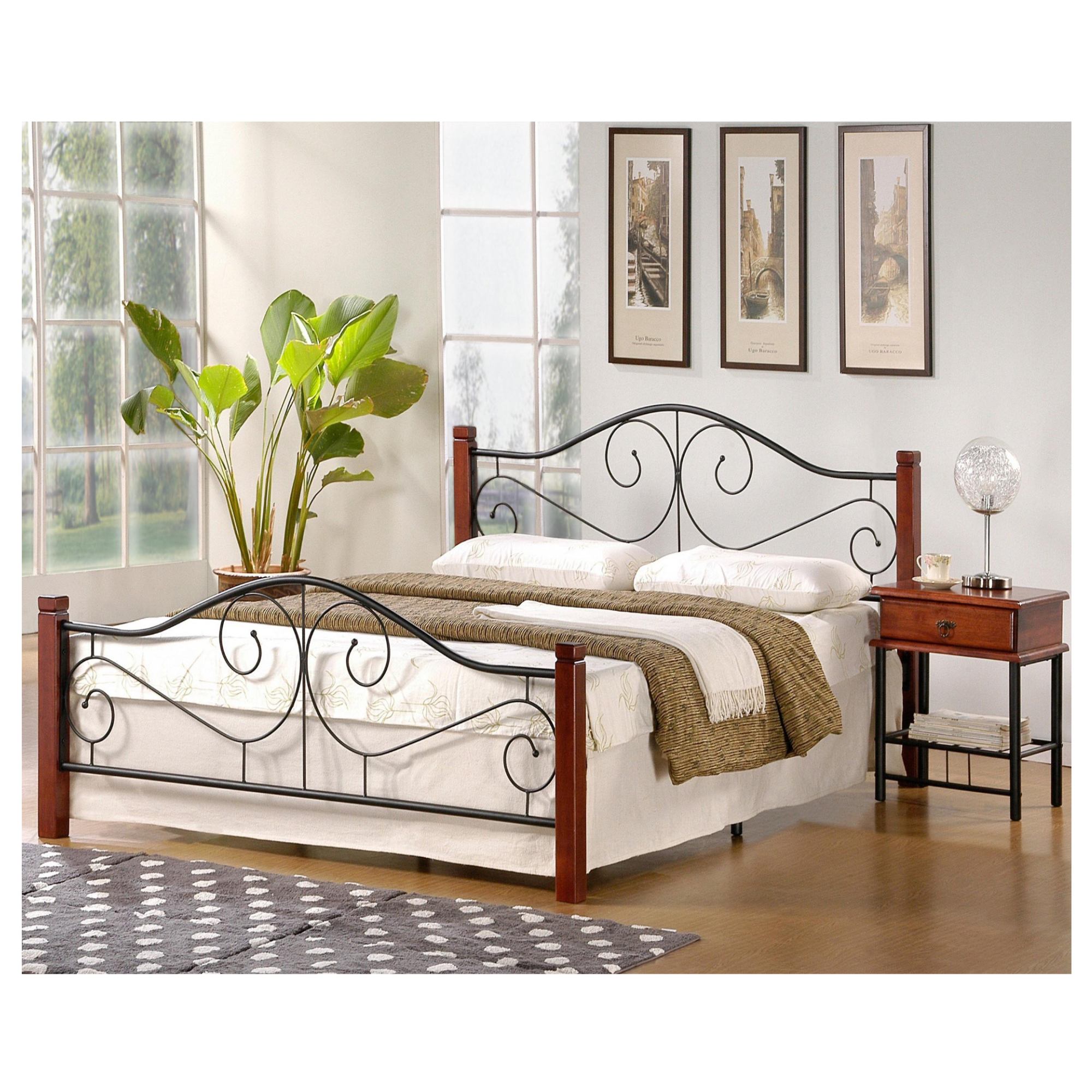 Dvojlôžková posteľ BIANA zaujme jednoduchými líniami a minimalistickým dizajnom, ktorý oživí a doplní interiér o zaujímavý kus nábytku. Konštrukcia postele je vyrobená z ocele, ktorá je lakovaná. Stĺpiky postele sú zhotovené z masívneho dreva lakovaného v dekore čerešne.