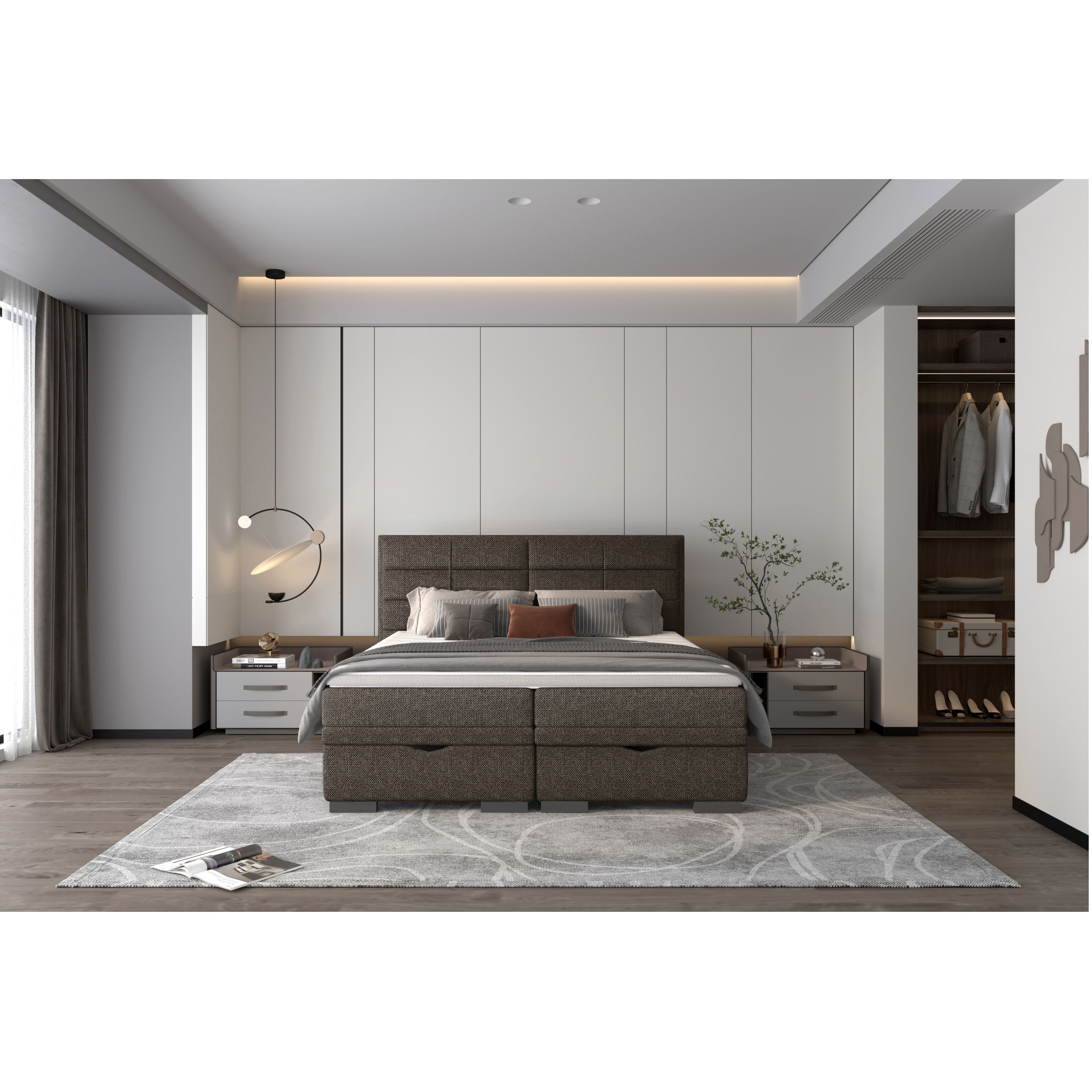 Posteľ boxspring BRAM - tmavohnedá, 160x200 cm
