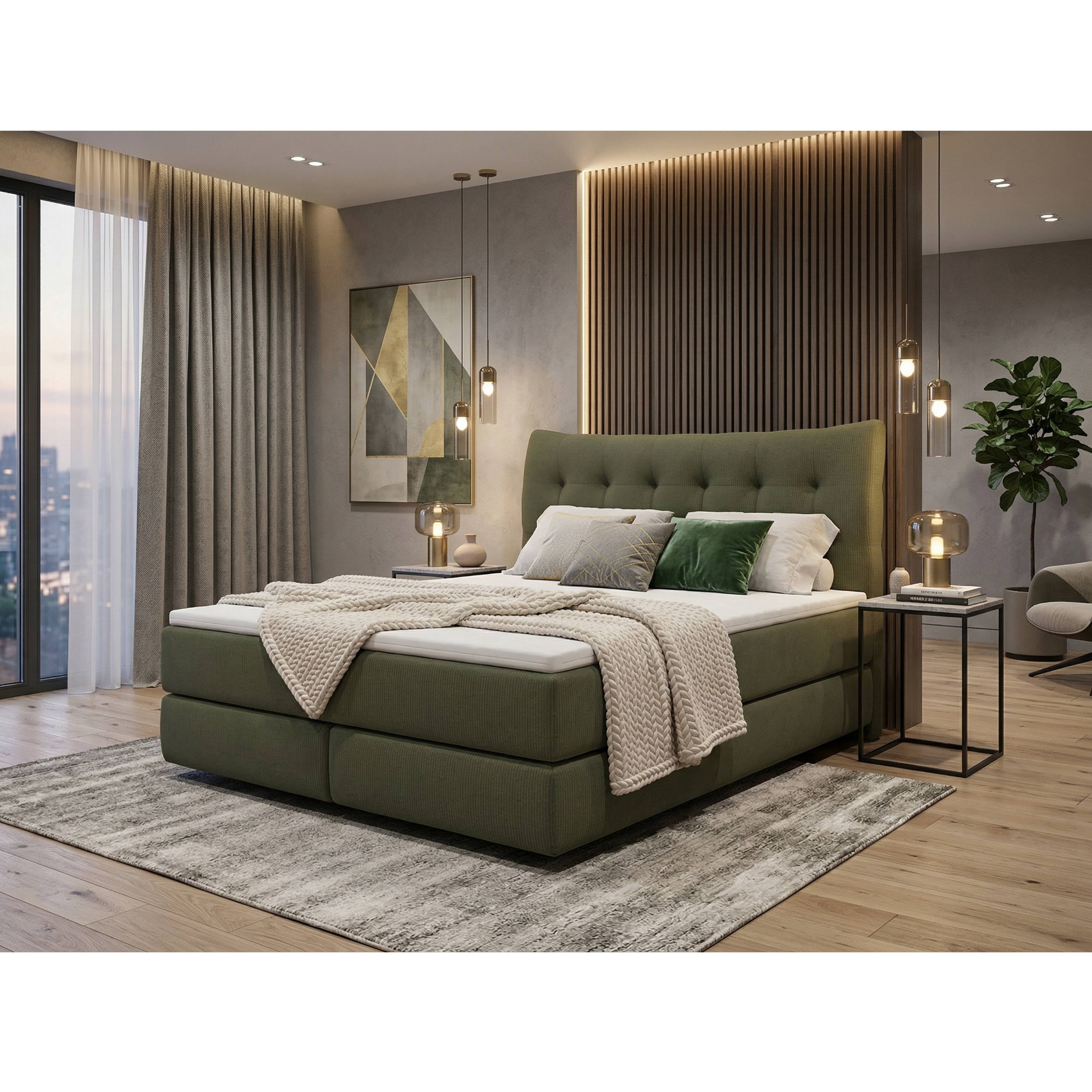 Posteľ boxspring LIMONE - olivová, 140x200 cm
