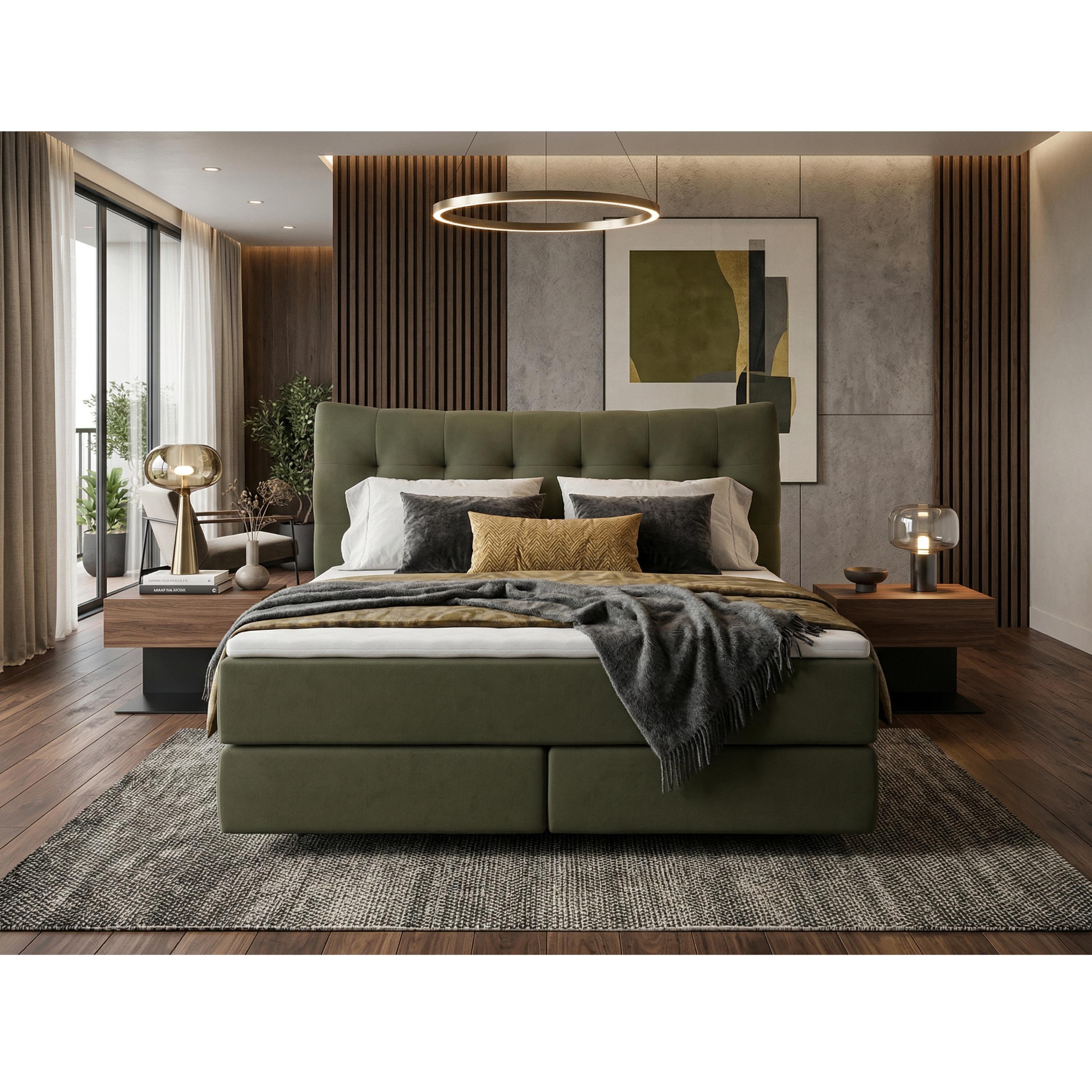 Posteľ boxspring LIMONE - olivová, 180x200 cm