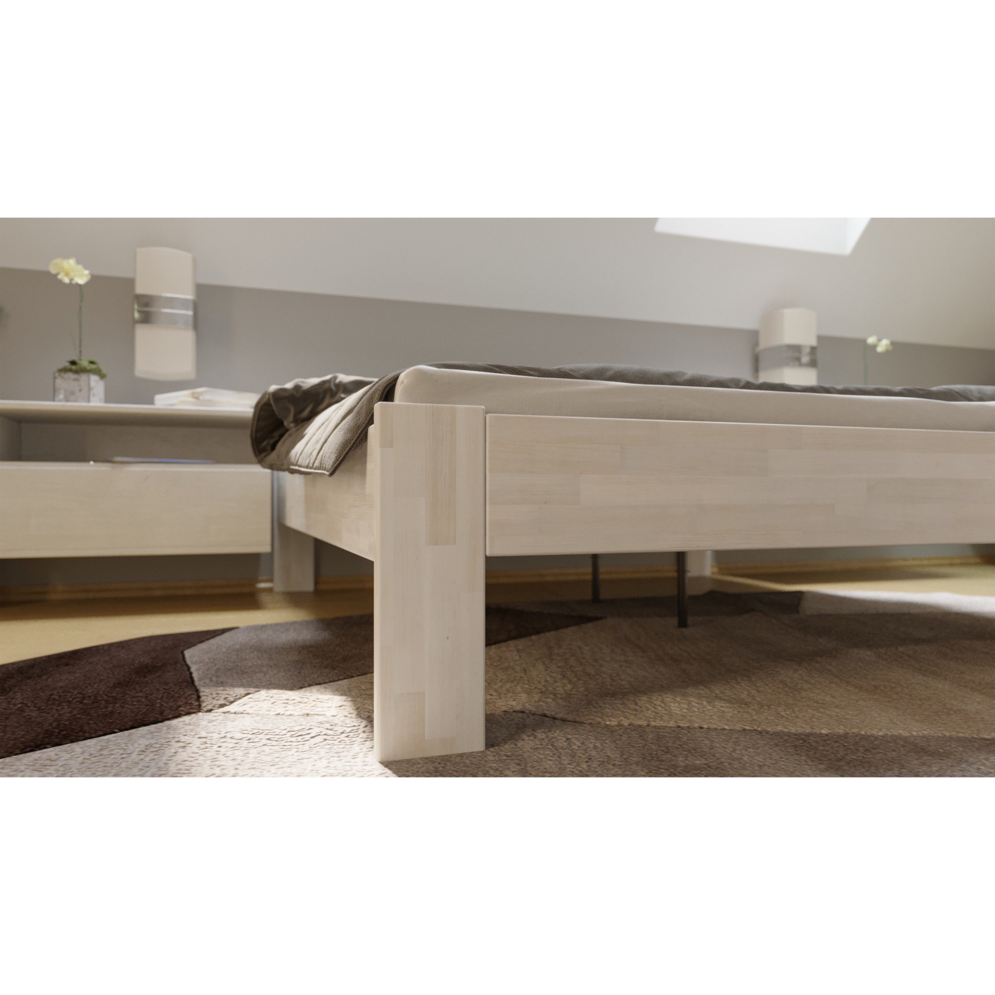 - Doplňujúca poznámka: Posteľ z bukového masívneho dreva je morená do bieleho odtieňa. Nosnosť 130 kg pre jednu ložnú plochu.