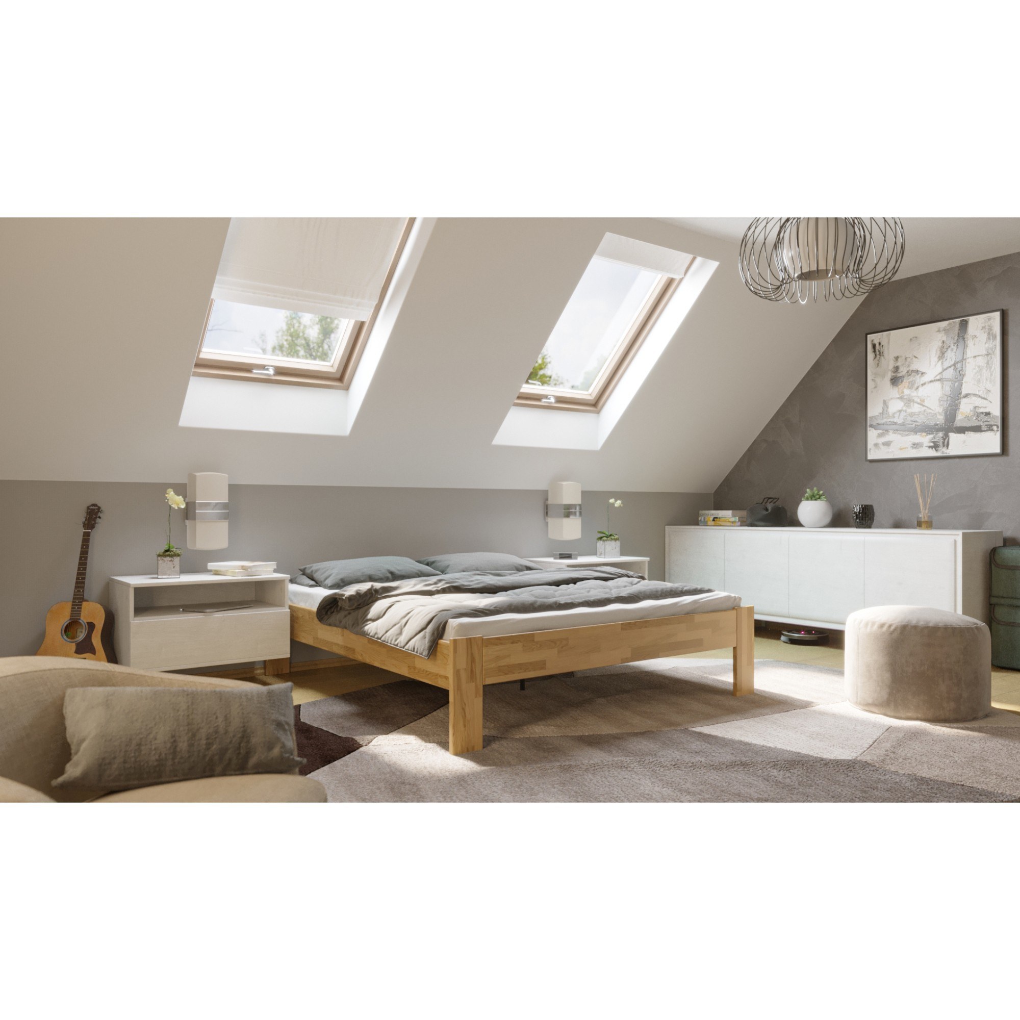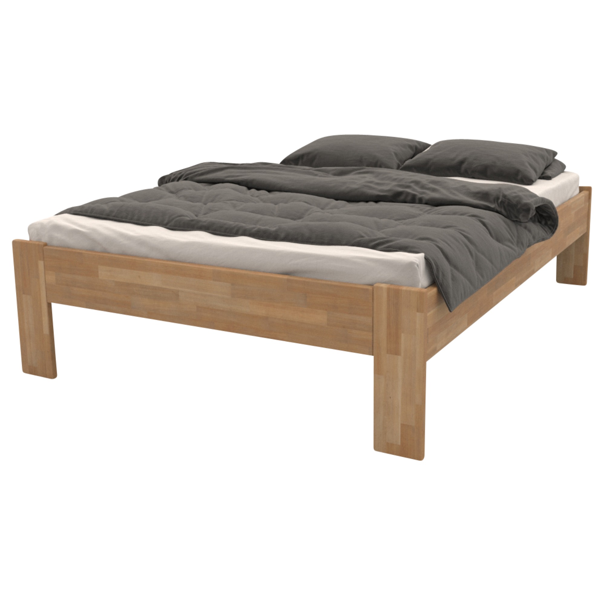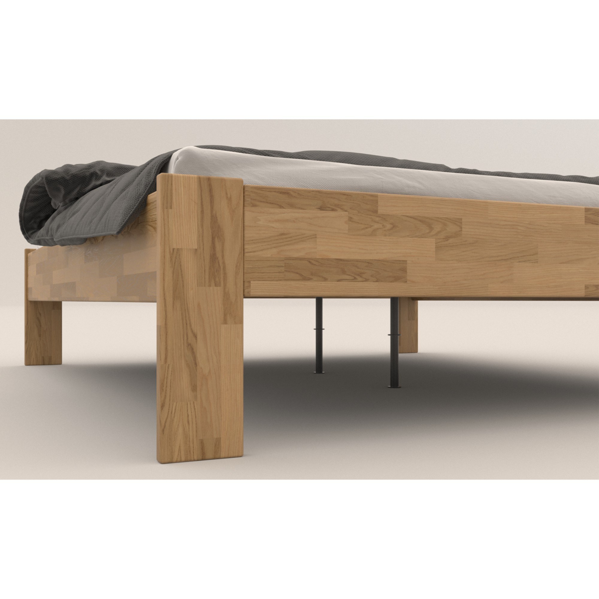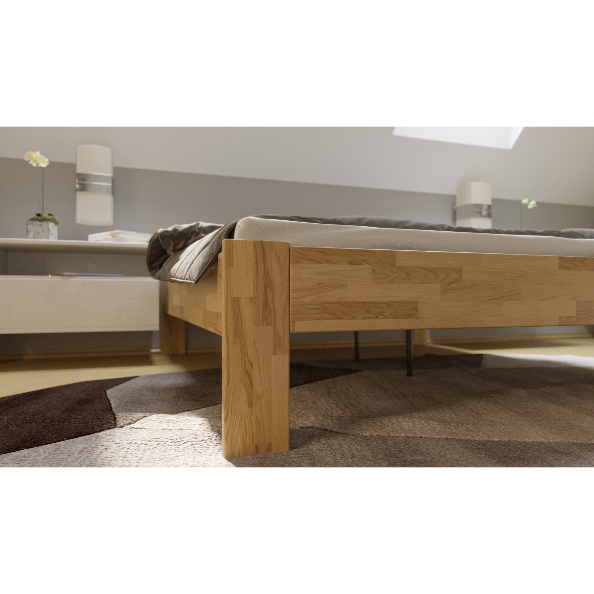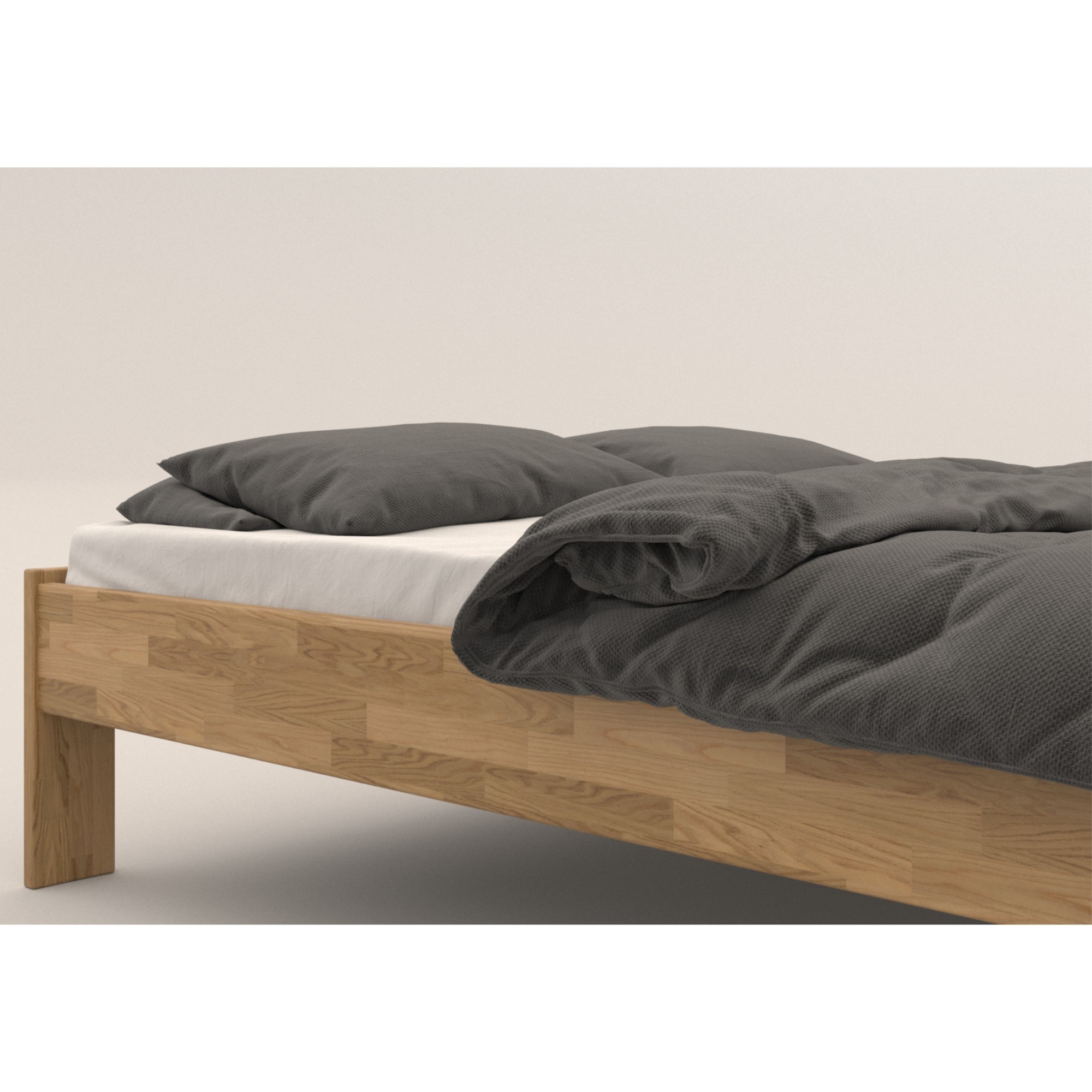 Lôžko je vyrobené z masívneho dreva, ktoré sa vyznačuje svojou vysokou odolnosťou a dlhou životnosťou. Navyše je ošetrené olejovým náterom, ktorý drevo napúšťa a zvyšuje tak odolnosť postele proti oteru. Škrabance nie sú tak viditeľné a hlbšie stopy sa dajú odstrániť čistením či lokálnou opravou. Posteľ je dodávaná ako samostatný rám bez matraca a roštu, ale veríme, že si tie ideálne vyberiete z nášho širokého sortimentu.