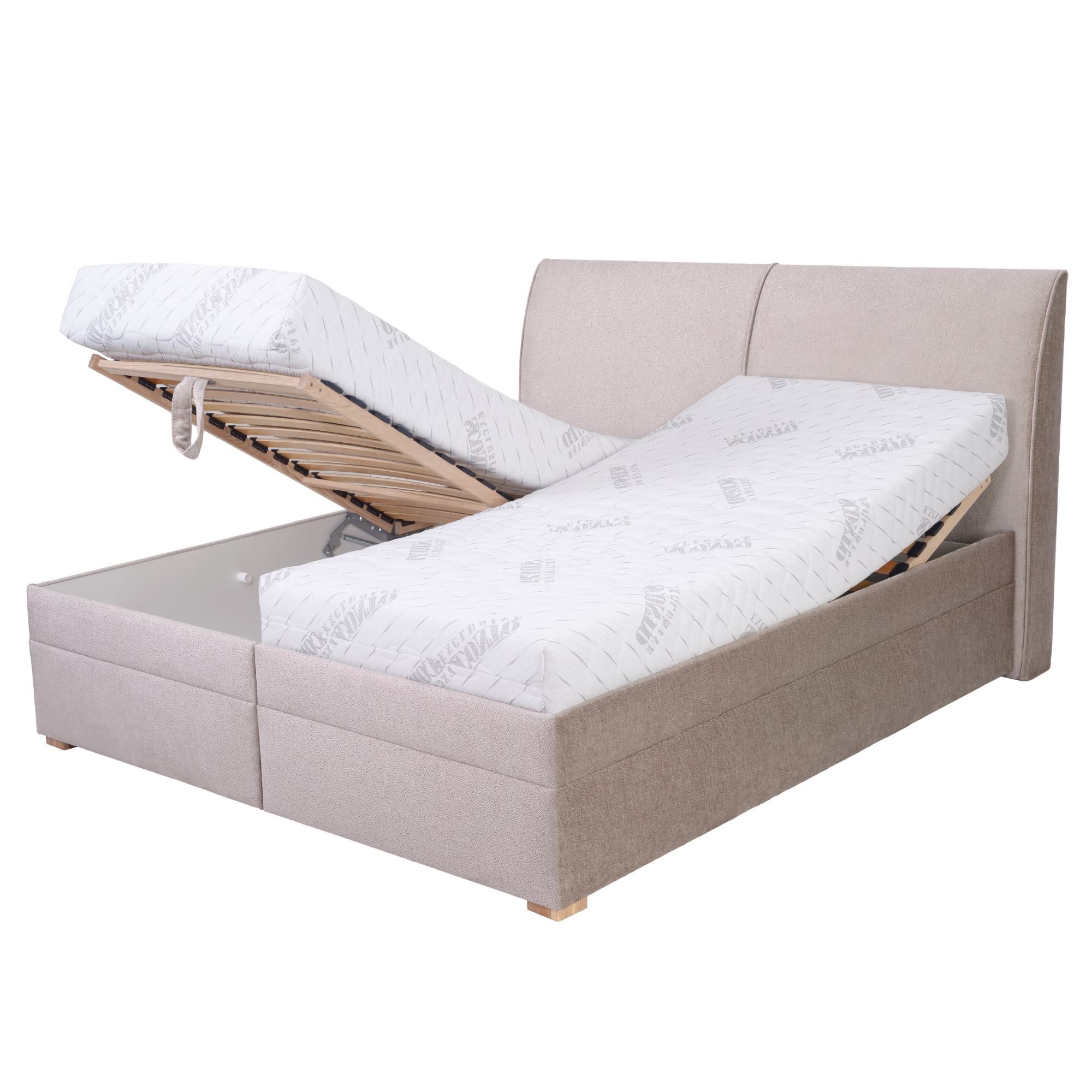 Sami sa môžete rozhodnúť, či budete chcieť posteľ bez matraca alebo s matracom (ako kompletné lôžko). Posteľ môže byť vybavená 2 partnerskými matracmi zo studenej peny s výškou 19 cm, u ktorých si môžete jednoduchým otočením vybrať medzi tvrdou a mäkkou stranou. Matrace sa efektívne prispôsobujú tvaru a váhe tela, zaisťujú vyváženú podporu pre chrbticu a kĺby a zároveň minimalizujú rušivé efekty.