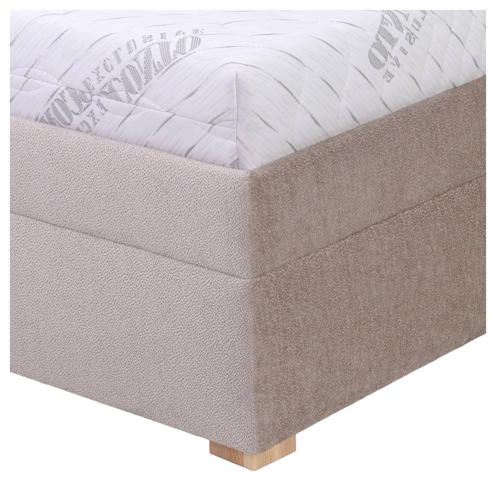 Konštrukciu podopierajú nízke nôžky z bukového dreva, ktoré posteli dodávajú elegantný nádych.
