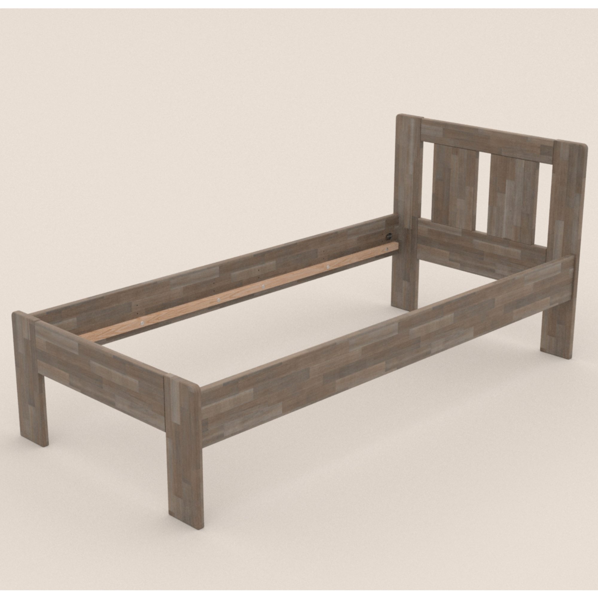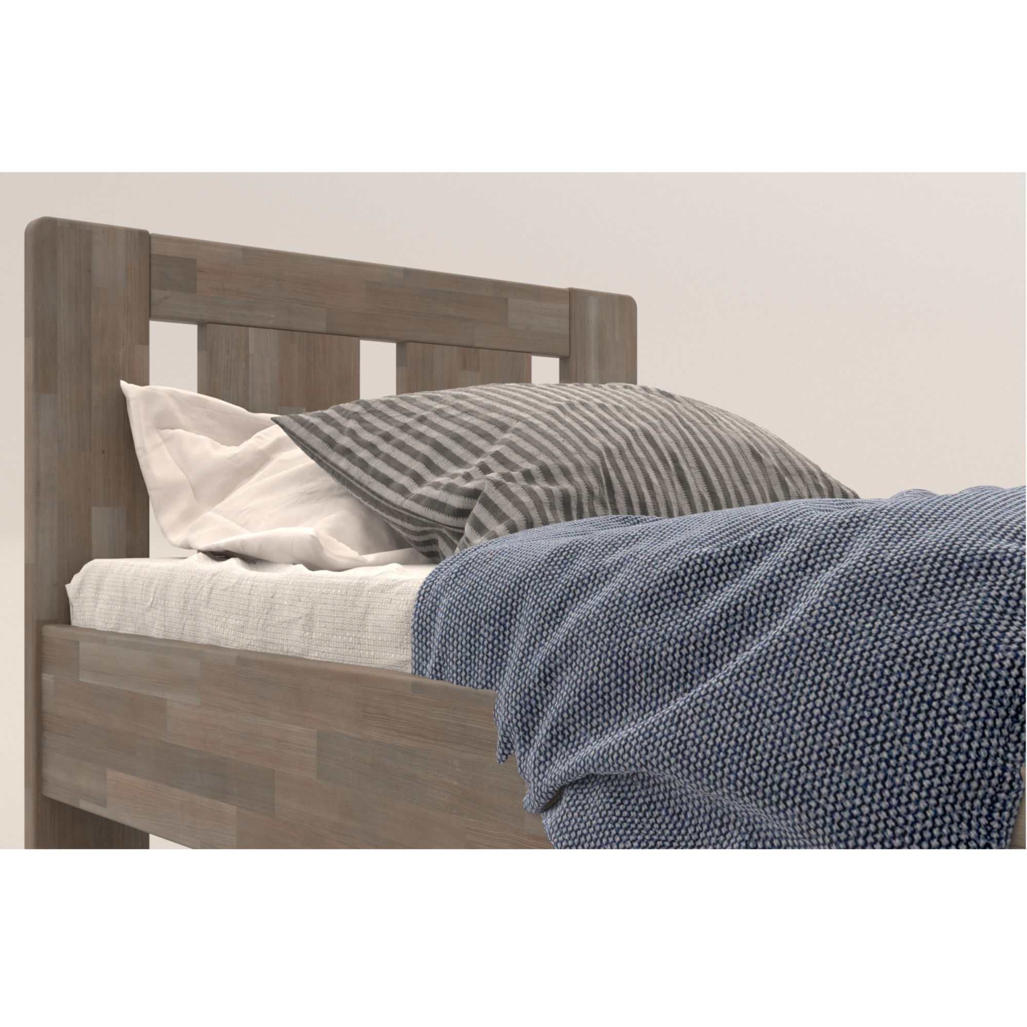 - Doplňujúca poznámka: Maximálna nosnosť celej postele je 130 kg. Posteľ z bukového masívneho dreva je morená do sivého odtieňa.