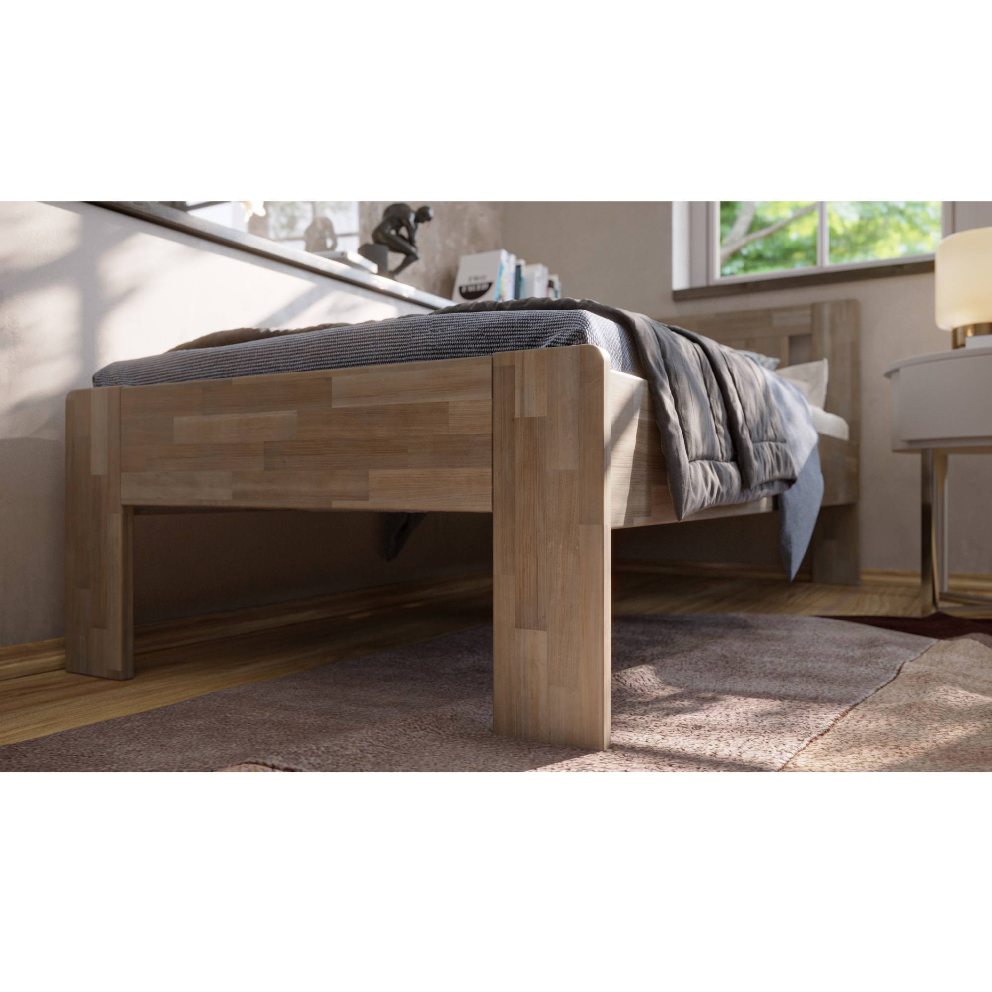 Konštrukcia je vyrobená z masívneho bukového či dubového dreva, záleží len na vás, aký typ dreva si vyberiete. Drevo sa môže pochváliť svojou pevnosťou, odolnosťou, vysokou nosnosťou a dlhou životnosťou. Povrchová olejovaná úprava jeho životnosť ešte predlžuje a tiež zvyšuje odolnosť proti oteru. Vďaka tejto úprave nie sú škrabance toľko vidieť a dajú sa ľahšie odstrániť. Pod posteľou sa vám bude ľahko upratovať vďaka vysokým, pevným nohám. Posteľ je dodávaná bez matraca a roštu, ale veríme, že si tie ideálne na skompletizovanie lôžka vyberiete z nášho širokého sortimentu.