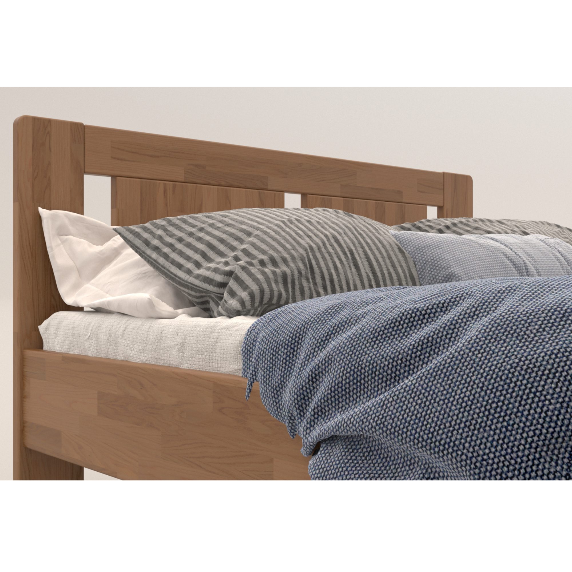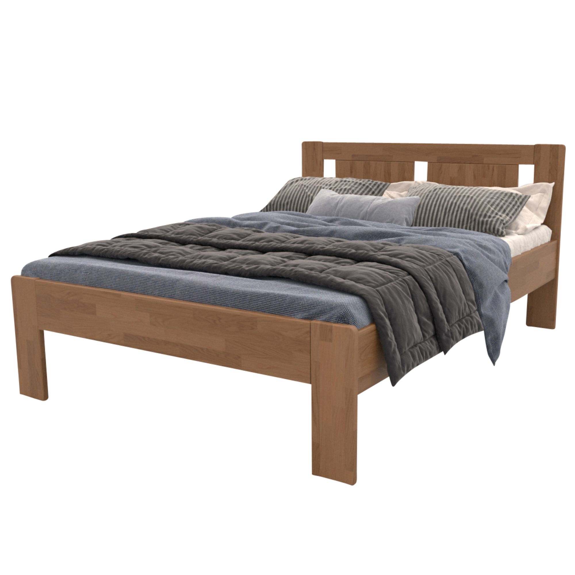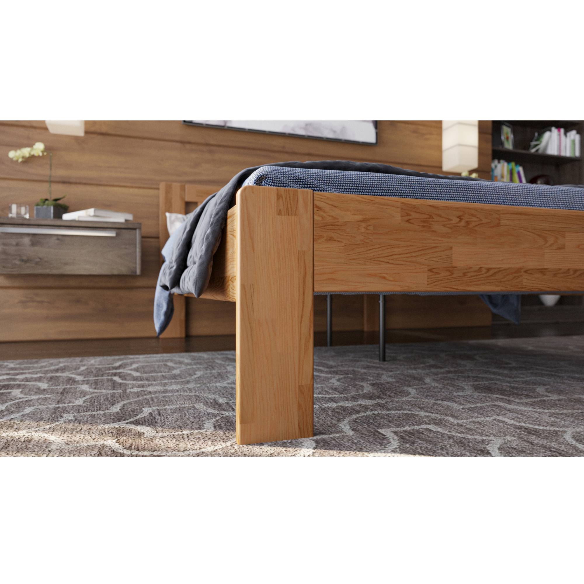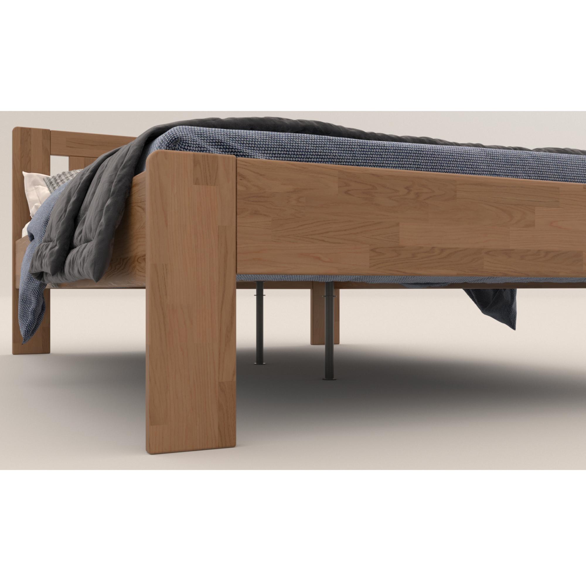 Konštrukcia je vyrobená z masívneho bukového či dubového dreva, záleží len na vás, aký typ dreva si vyberiete. Drevo sa môže pochváliť svojou pevnosťou, odolnosťou, vysokou nosnosťou a dlhou životnosťou. Povrchová olejovaná úprava jeho životnosť ešte predlžuje a tiež zvyšuje odolnosť proti oteru. Vďaka tejto úprave nie sú škrabance toľko vidieť a dajú sa ľahšie odstrániť. Pod posteľou sa vám bude ľahko upratovať vďaka vysokým, pevným nohám. Posteľ je dodávaná bez matraca a roštu, ale veríme, že si tie ideálne na skompletizovanie lôžka vyberiete z nášho širokého sortimentu.