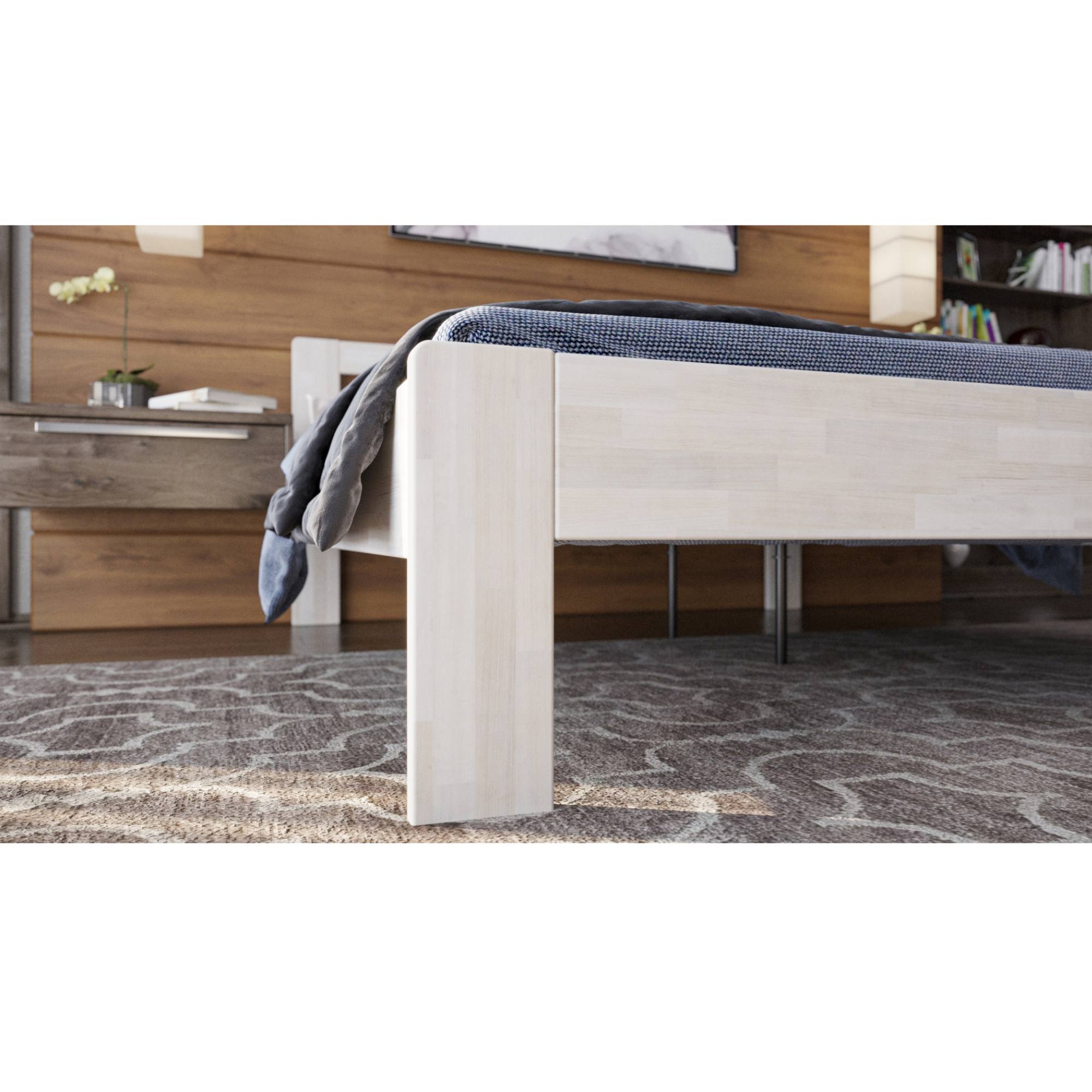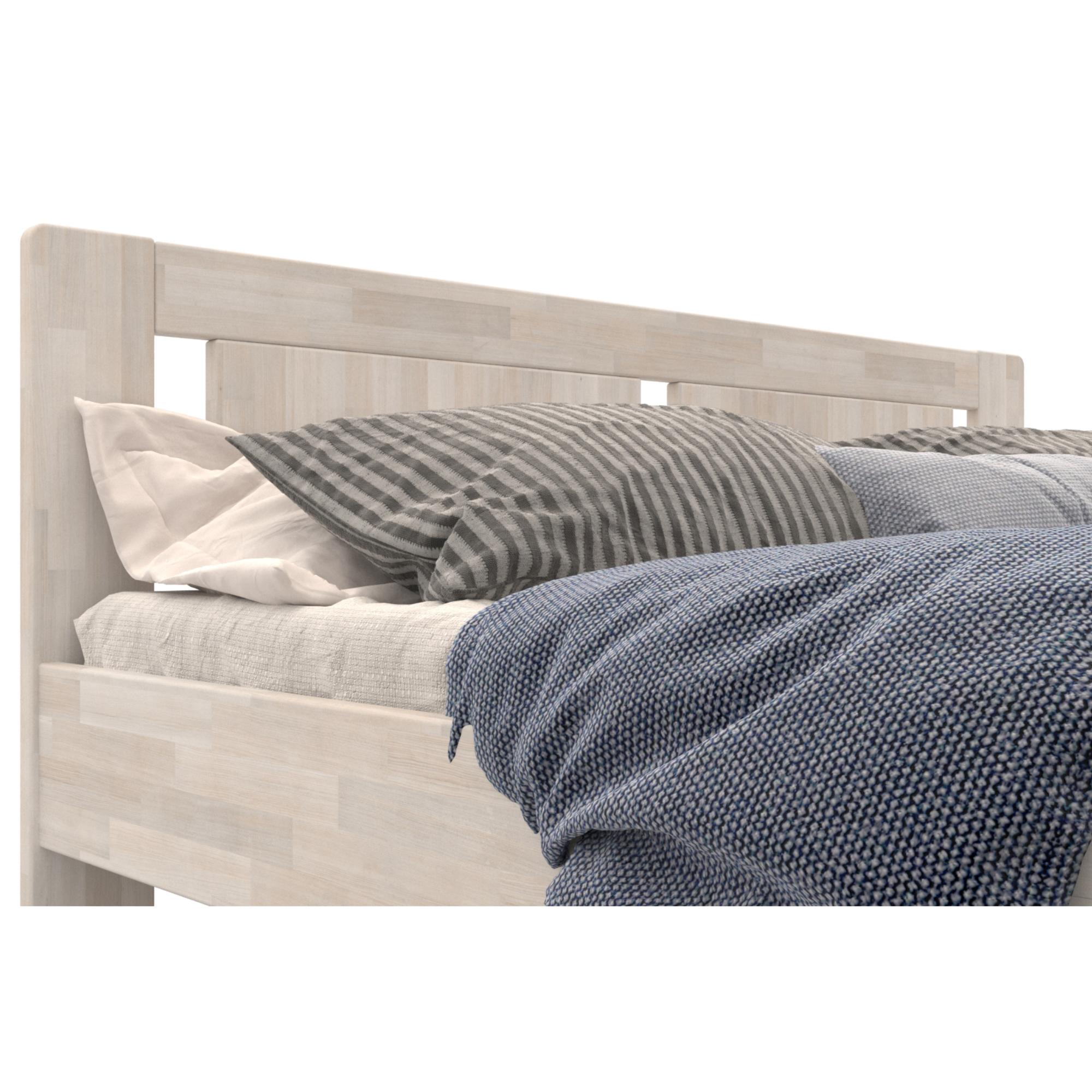 - Doplňujúca poznámka: Posteľ z bukového masívneho dreva je morená do bieleho odtieňa. Nosnosť 130 kg na jednu ložnú plochu.