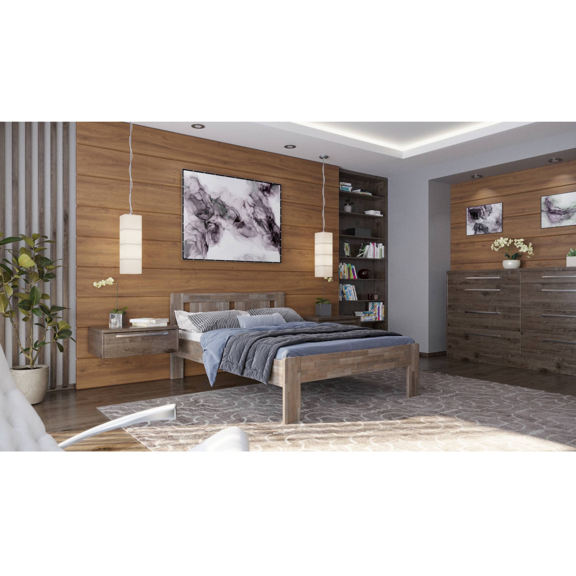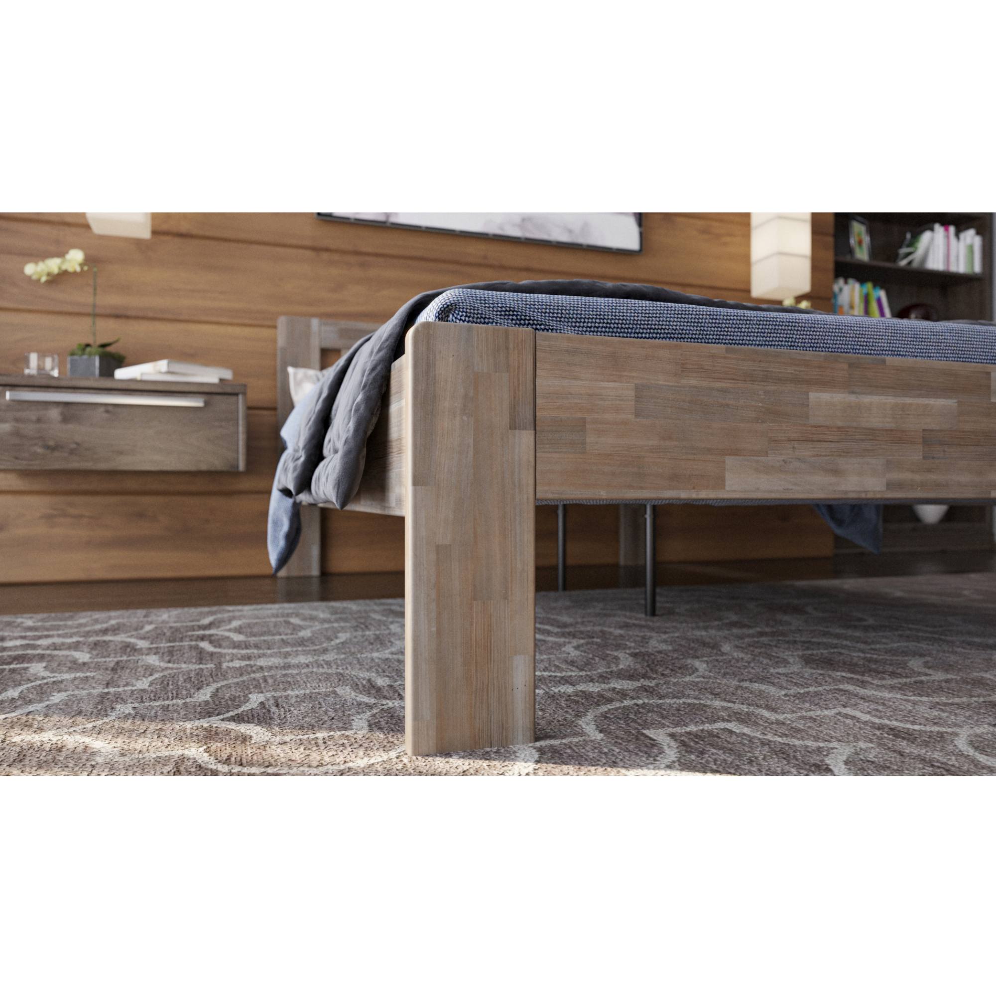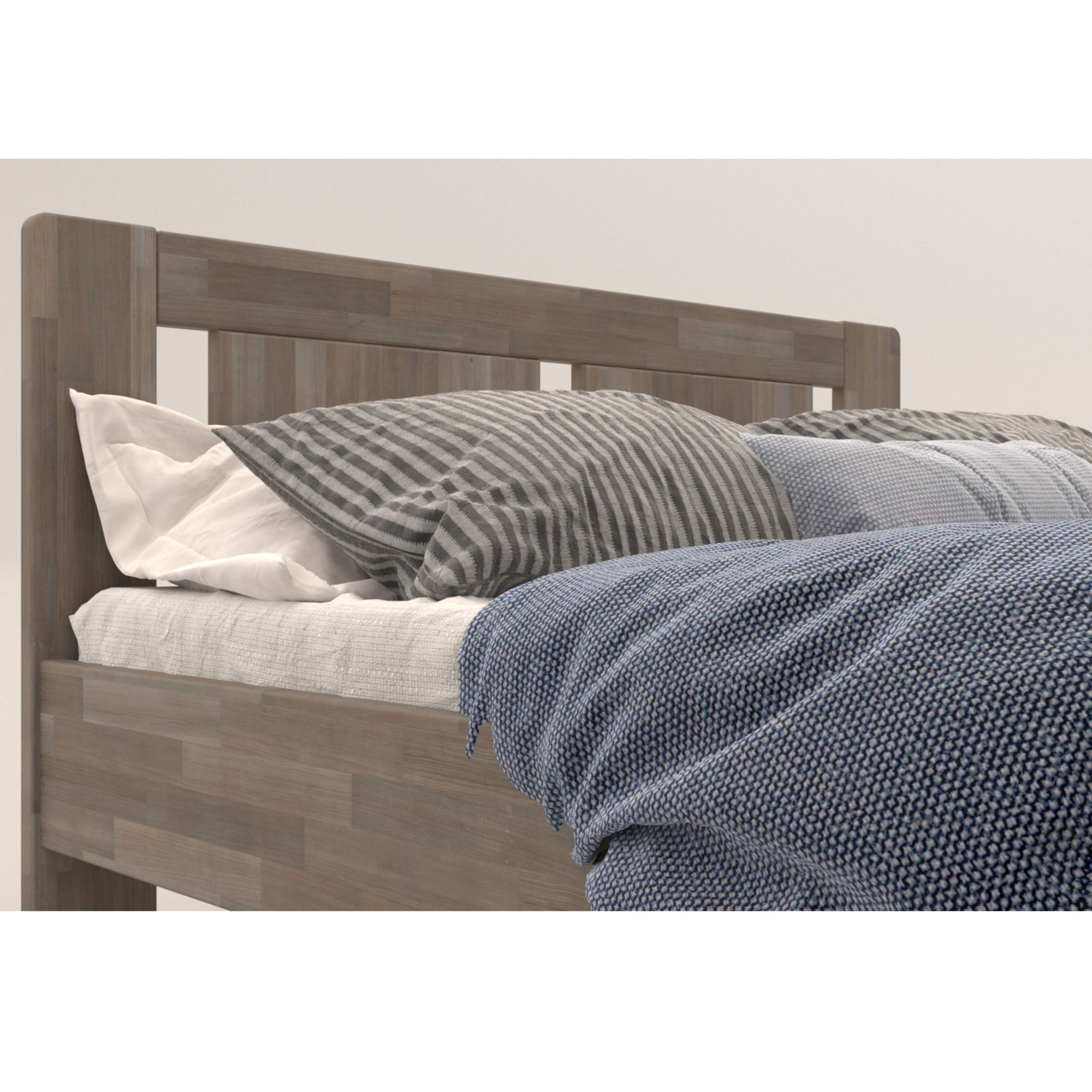 - Doplňujúca poznámka: Posteľ z bukového masívneho dreva je morená do sivého odtieňa. Nosnosť 195 kg na lôžko.