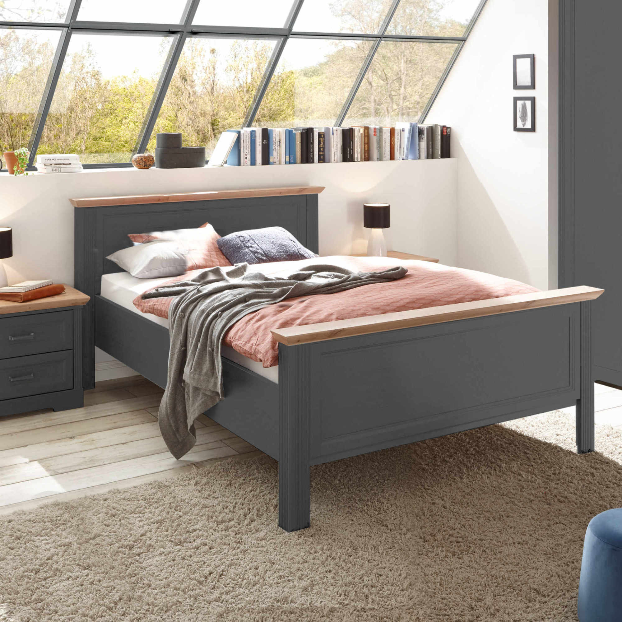 Posteľ JASMIN II - grafit/dub artisan, 140x200 cm