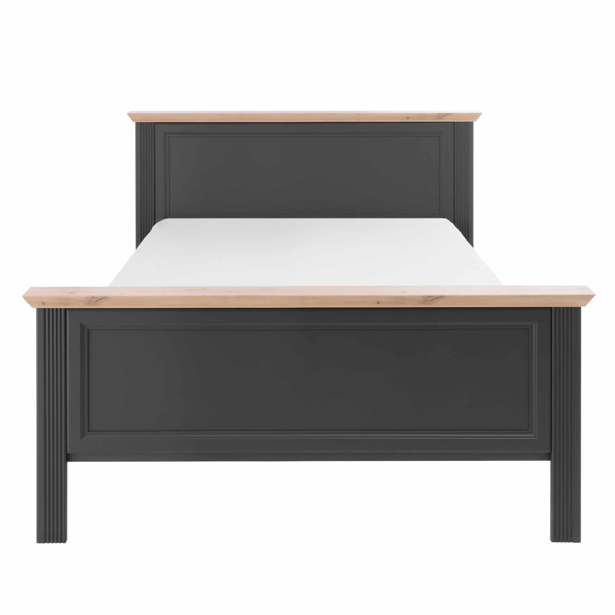 Posteľ disponuje stredovým priečnym nosníkom. Dodávaná je bez matraca a roštu, určite si ale vyberiete z našej širokej ponuky, aby bolo vaše lôžko kompletné. Chcete mať spálňu zjednotenú do jedného štýlu? Pozrite sa na ďalší nábytok z rovnomenného nábytkového programu JASMIN.