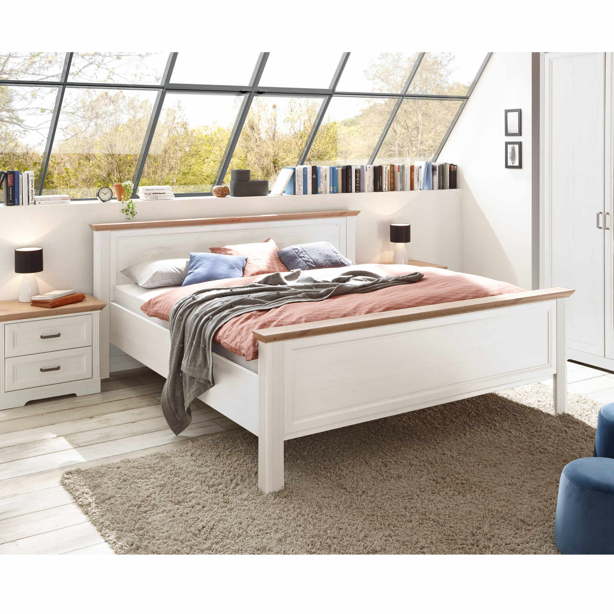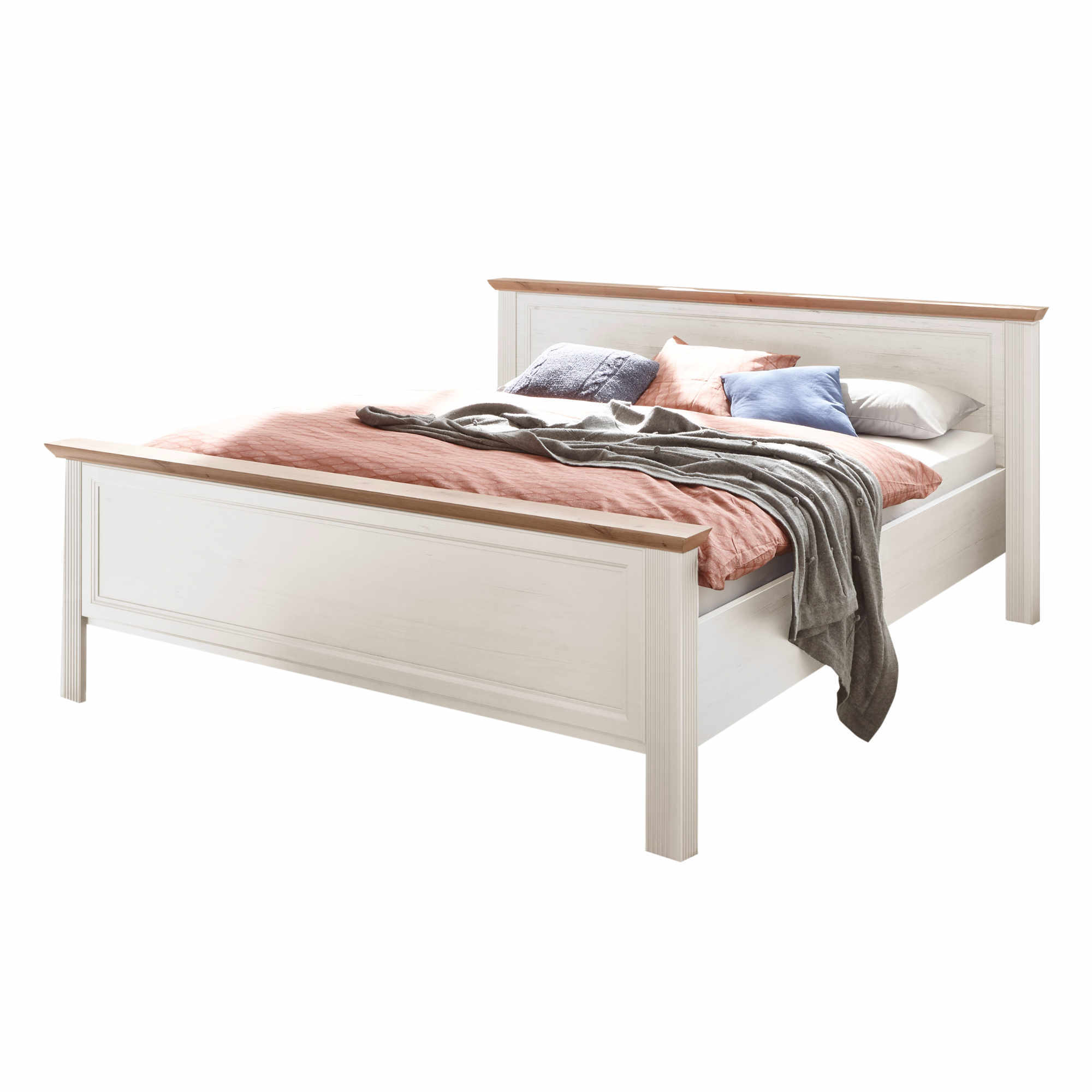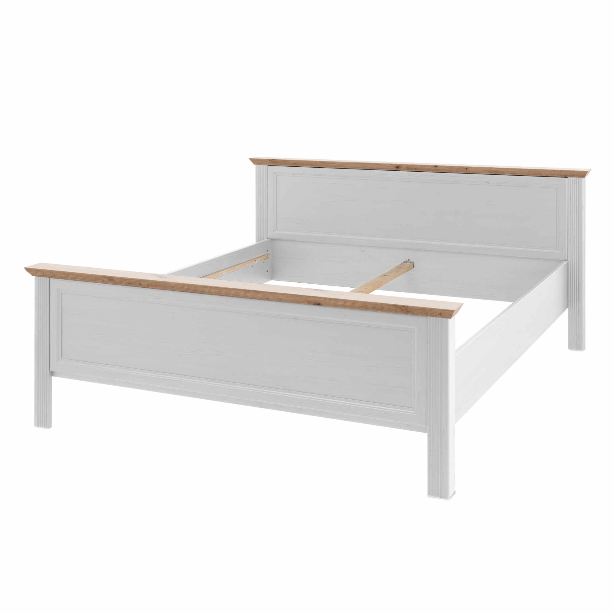 Posteľ disponuje stredovým priečnym nosníkom. Dodávaná je bez matraca a roštu, určite si ale vyberiete z našej širokej ponuky, aby bolo vaše lôžko kompletné. Chcete mať spálňu zjednotenú do jedného štýlu? Pozrite sa na ďalší nábytok z rovnomenného nábytkového programu JASMIN.