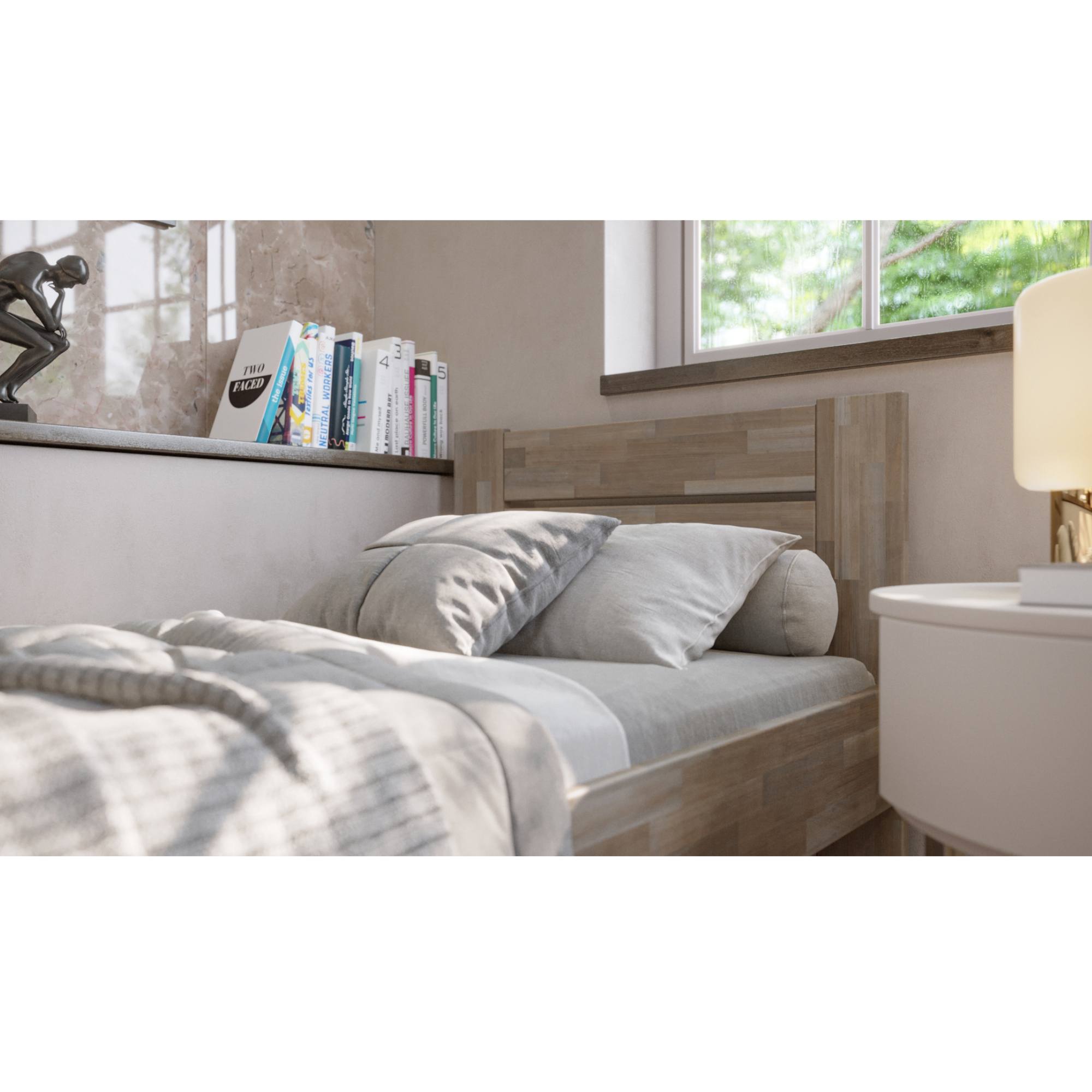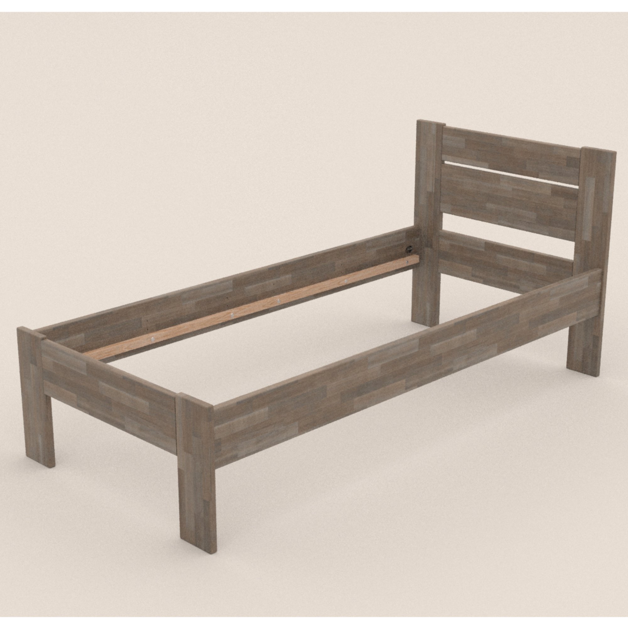 - Doplňujúca poznámka: Posteľ z bukového masívneho dreva je morená do sivého odtieňa. Maximálna nosnosť celého matraca je 130 kg.