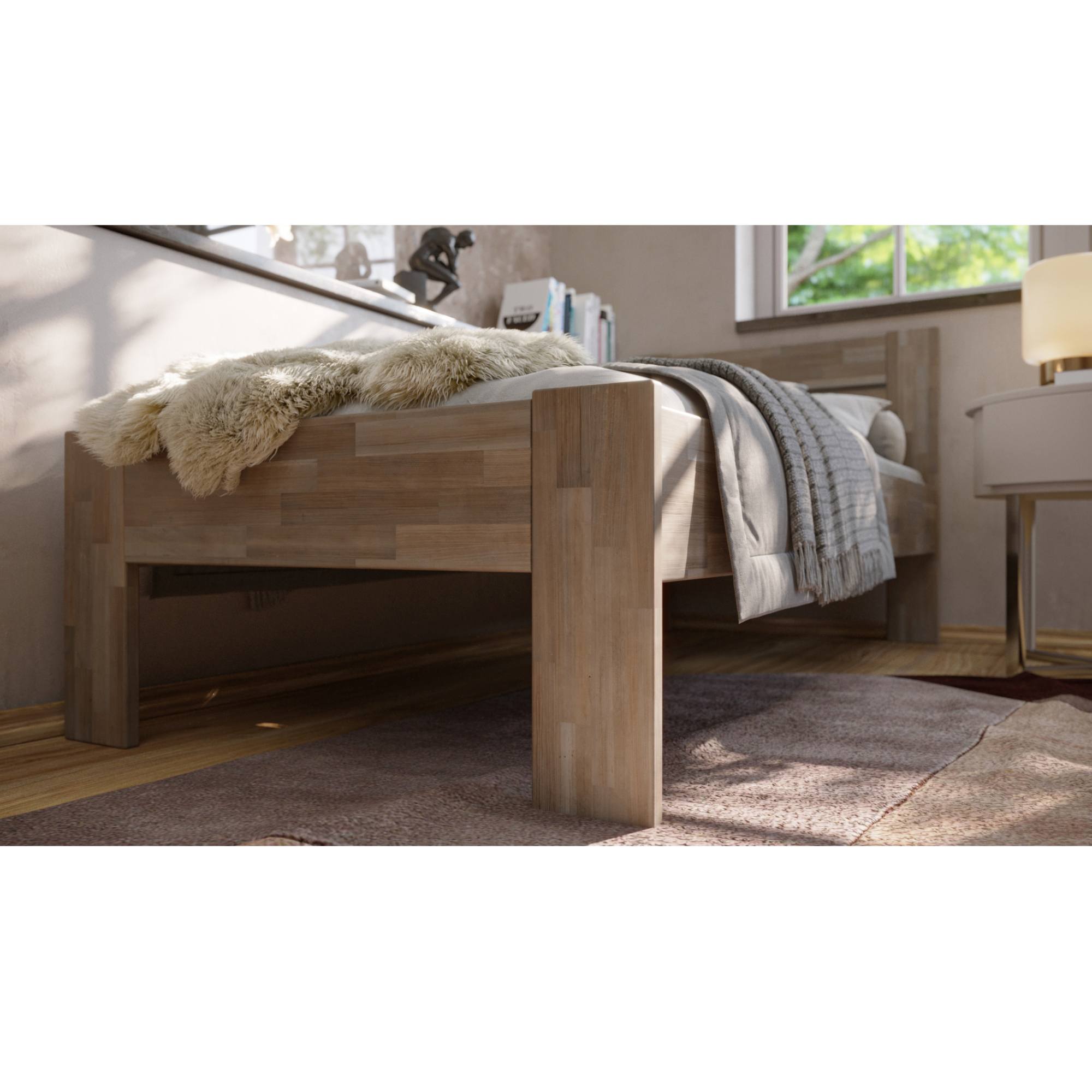 Vyrobená je z masívneho bukového a dubového dreva, záleží len na vás, aký typ dreva si vyberiete. Masívne drevo má vysokú nosnosť, odolnosť a dlhú životnosť. Povrchová olejová úprava jeho životnosť ešte predlžuje a zároveň poskytuje odolnosť proti oteru. Pohodlné opretie počas odpočinku zaisťuje vyššie čelo. O celkovú stabilitu postele sa starajú pevné pevné drevené nohy, ktoré zároveň umožňujú ľahké upratovanie pod posteľou. Posteľ je dodávaná bez matraca a roštu, ale veríme, že si tie ideálne vyberiete z nášho širokého sortimentu a vytvoríte kompletné lôžko podľa vašich predstáv.