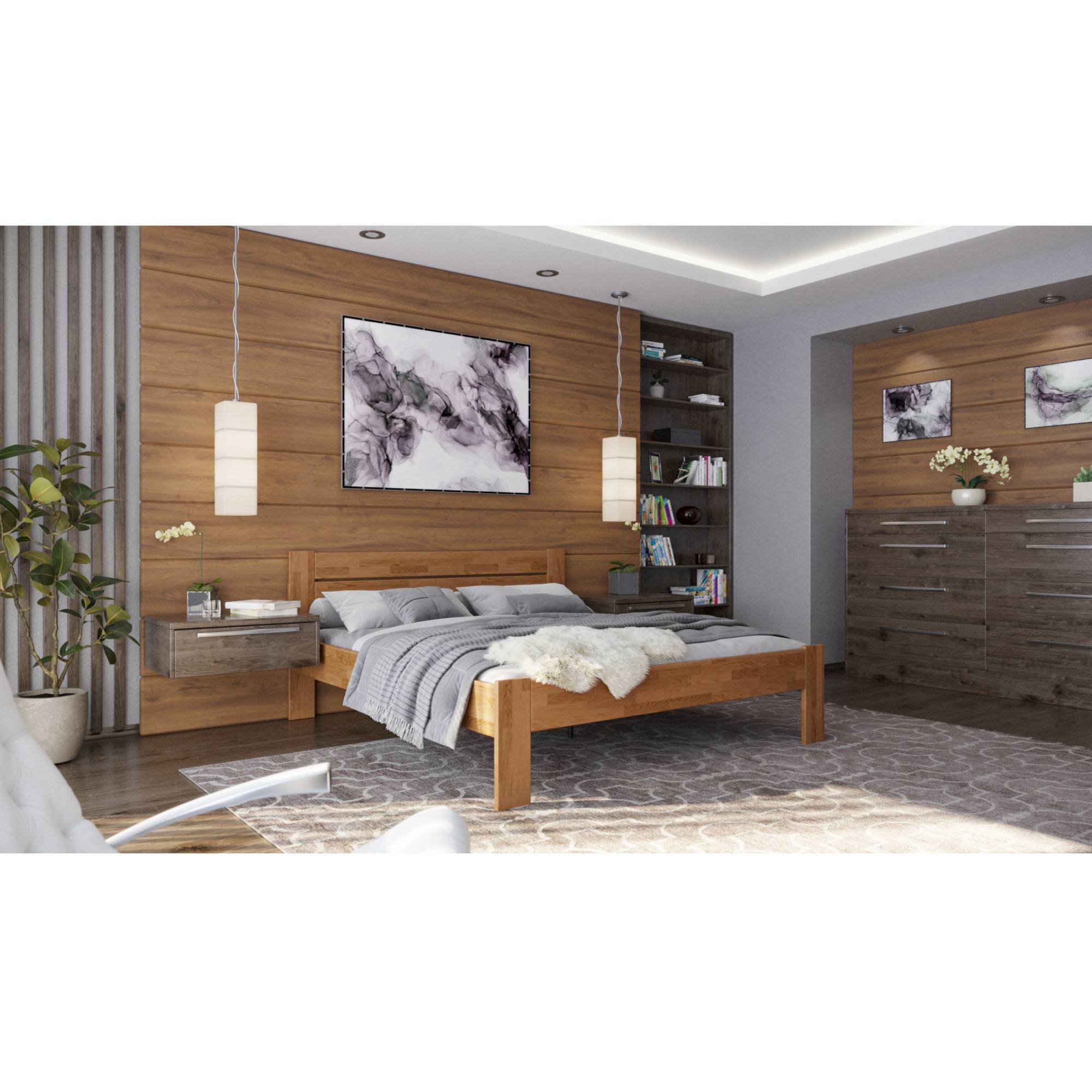 - Doplňujúca poznámka: Posteľ z dubového masívneho dreva je morená do odtieňa svetlý orech. Nosnosť 130 kg na jednu ložnú plochu.