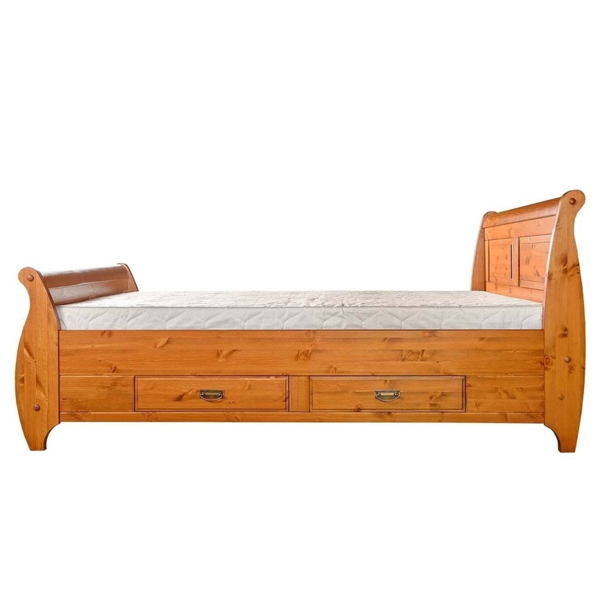 Vyrobená je z masívneho borovicového dreva, ktoré nábytku dodáva potrebnú pevnosť, odolnosť a predlžuje jeho životnosť. Pohodlné opretie si môžete dopriať vďaka vysokému čelu, ktoré je rovnako ako čelo na nohách doplnené o dekoratívne frézovanie. Na uloženie aktuálne nepoužívaných predmetov môžete využiť praktické posteľné zásuvky s kovovými rúčkami. Posteľ podopierajú netradične riešené nohy zvýrazňujúce celkový romantický vzhľad.