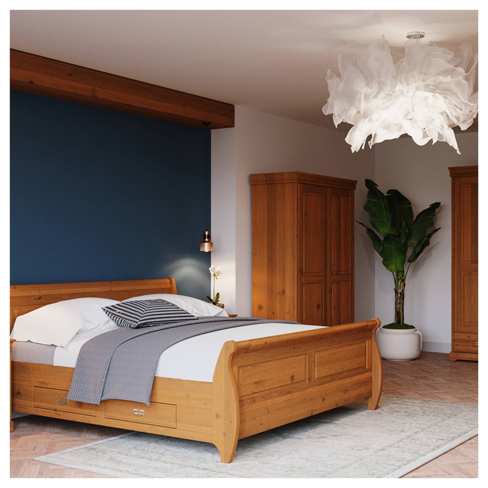 Manželská posteľ KANIA vyhotovená v originálnom spracovaní s množstvom dekoratívnych prvkov vám poskytne komfortné zázemie na kvalitný spánok a zároveň dodá vašej spálni vidiecky nádych.