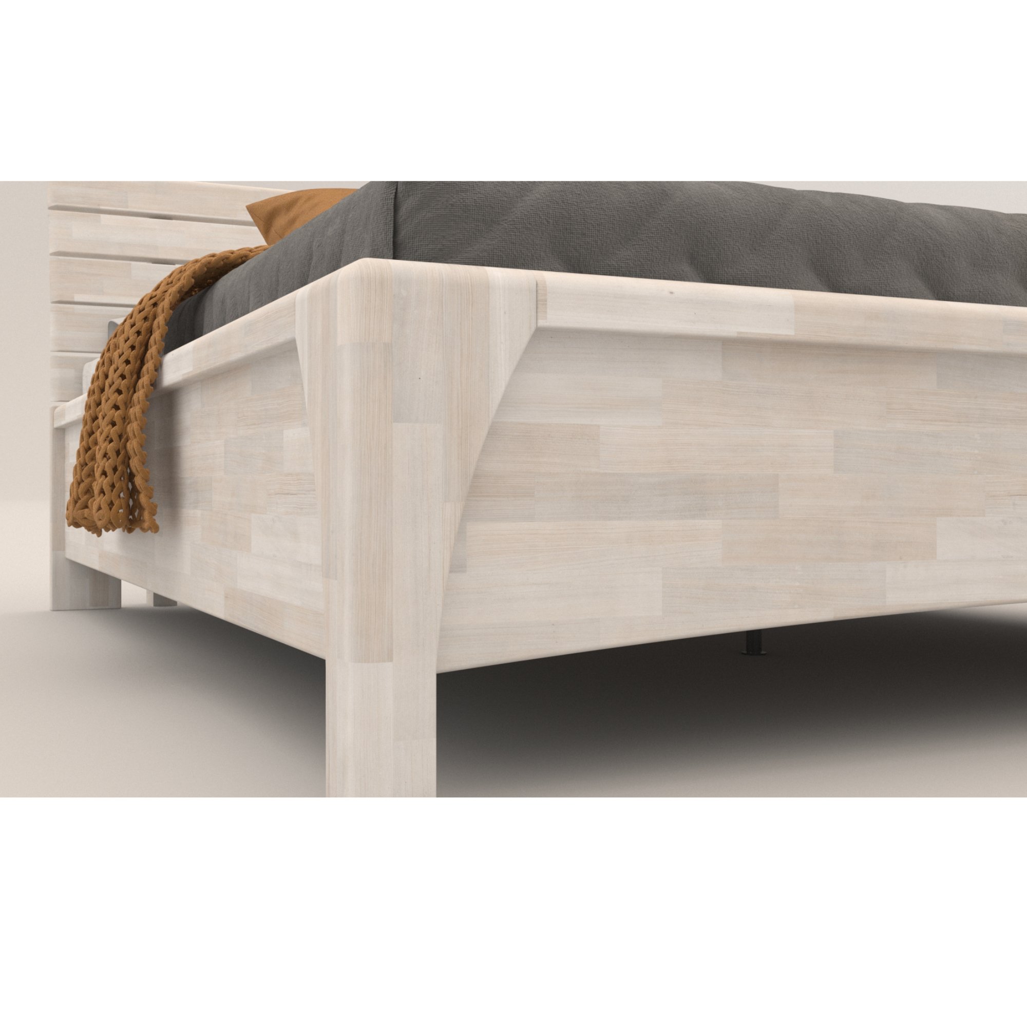Posteľ je vyrobená z lepených drevených latiek z masívneho dreva. Tento typ dreva si roky uchováva svoj stály tvar a obsahuje len starostlivo vybrané kusy latiek vysokej kvality. Masívne drevo má navyše vysokú nosnosť, odolnosť a je nenáročné na údržbu. Povrchová olejová úprava dreva predlžuje jeho životnosť a zároveň poskytuje odolnosť proti oteru. Táto úprava je obľúbená hlavne vďaka tomu, že škrabance nie sú na prvý pohľad viditeľné a hlbšie stopy sa dajú odstrániť čistením a miestnou opravou. Na výber máte medzi masívnym bukovým a dubovým drevom, zaleží len na vás, aký typ dreva si vyberiete.
