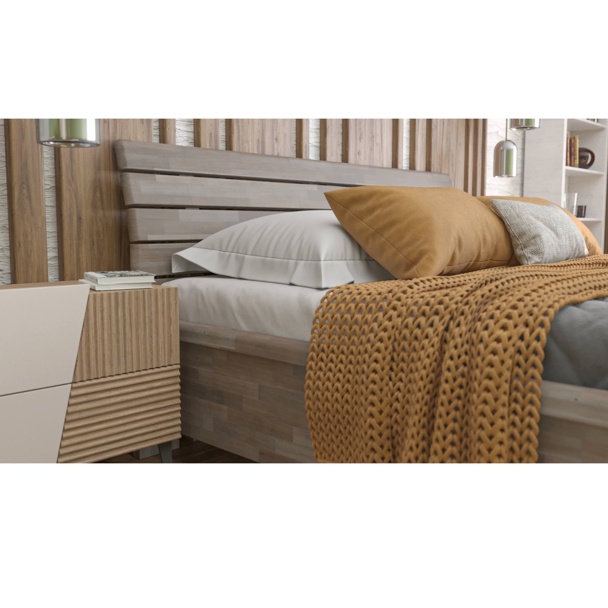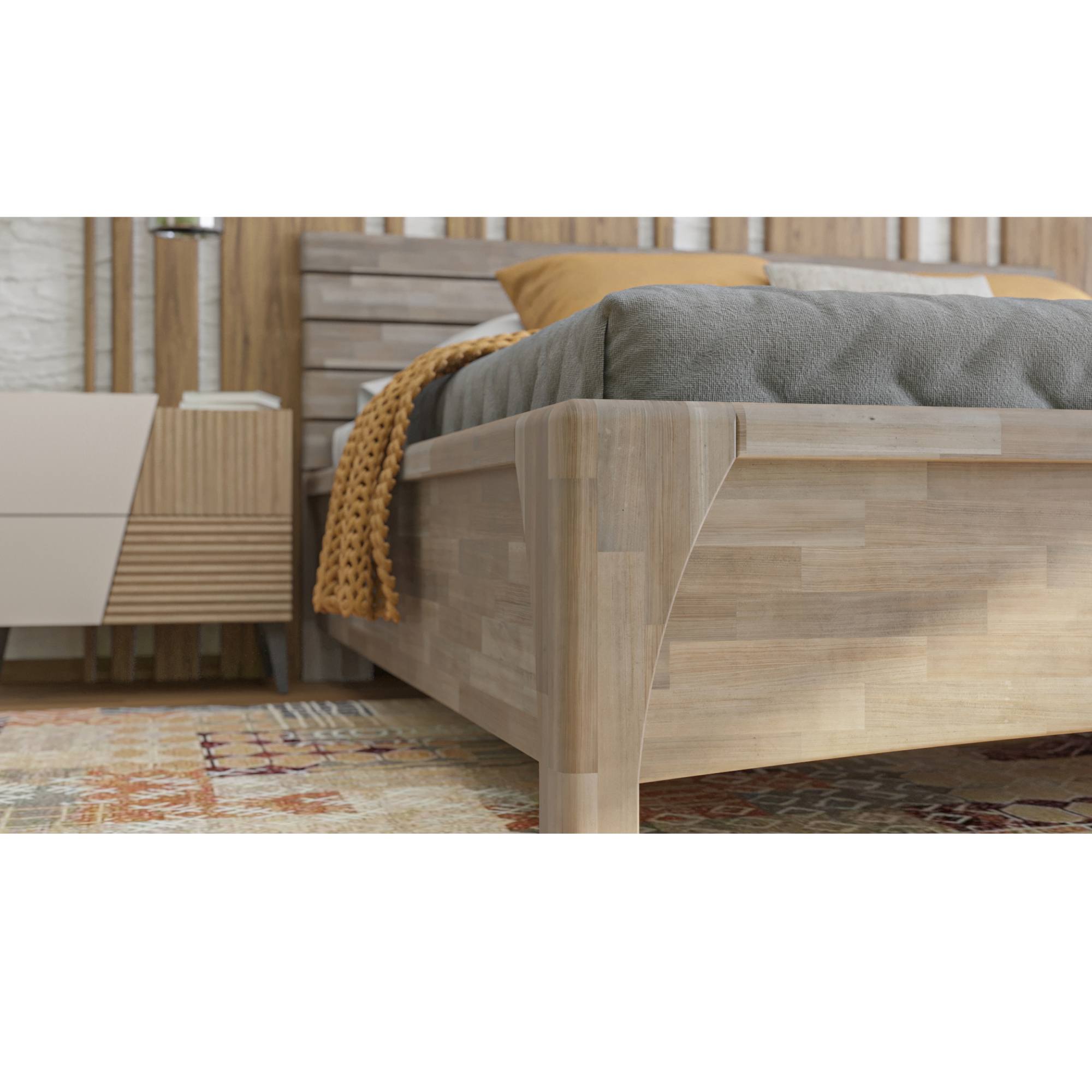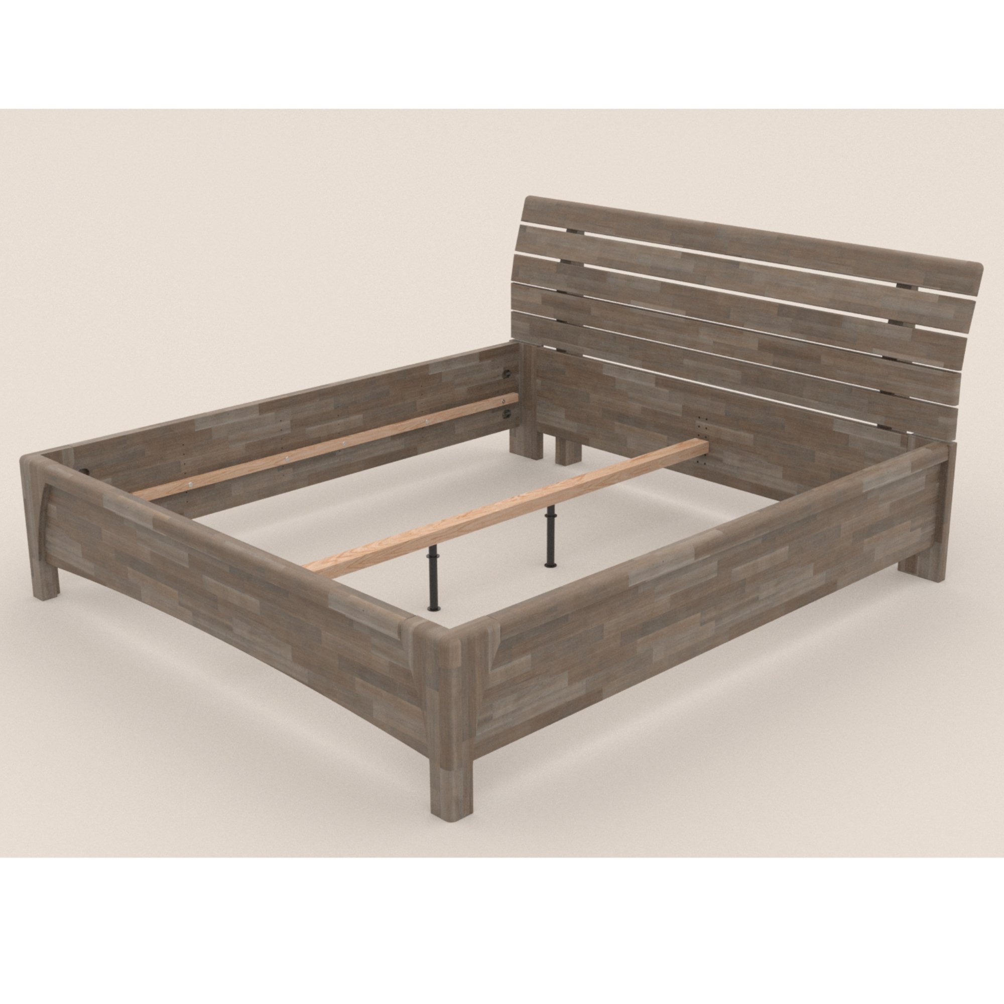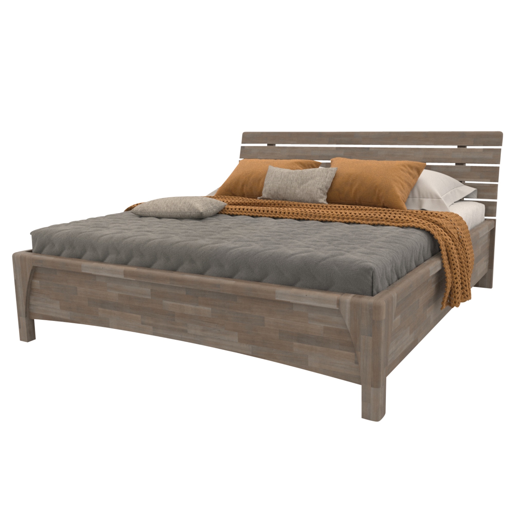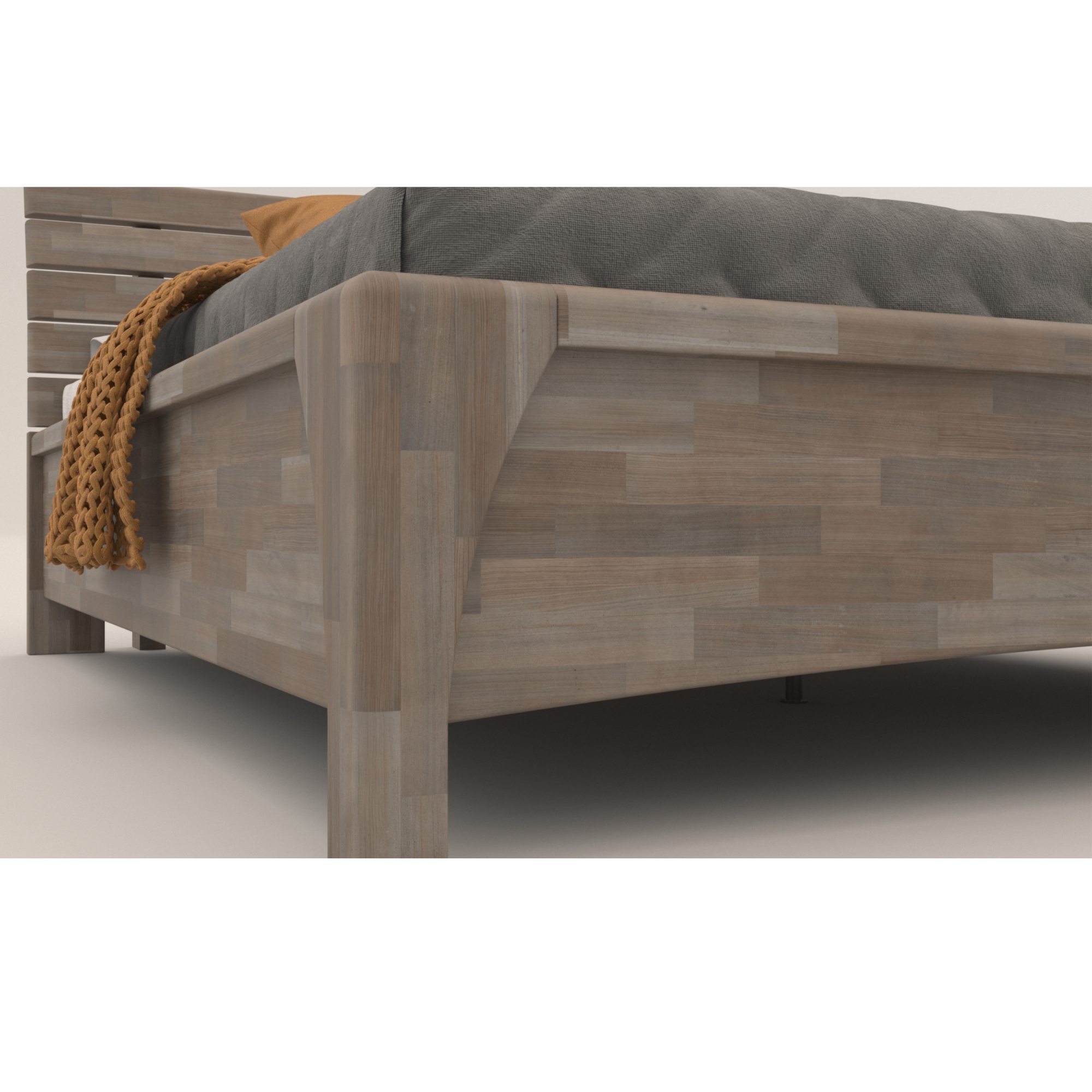 Posteľ je vyrobená z lepených drevených latiek z masívneho dreva. Tento typ dreva si roky uchováva svoj stály tvar a obsahuje len starostlivo vybrané kusy latiek vysokej kvality. Masívne drevo má navyše vysokú nosnosť, odolnosť a je nenáročné na údržbu. Povrchová olejová úprava dreva predlžuje jeho životnosť a zároveň poskytuje odolnosť proti oteru. Táto úprava je obľúbená hlavne vďaka tomu, že škrabance nie sú na prvý pohľad viditeľné a hlbšie stopy sa dajú odstrániť čistením a miestnou opravou. Na výber máte medzi masívnym bukovým a dubovým drevom, zaleží len na vás, aký typ dreva si vyberiete.