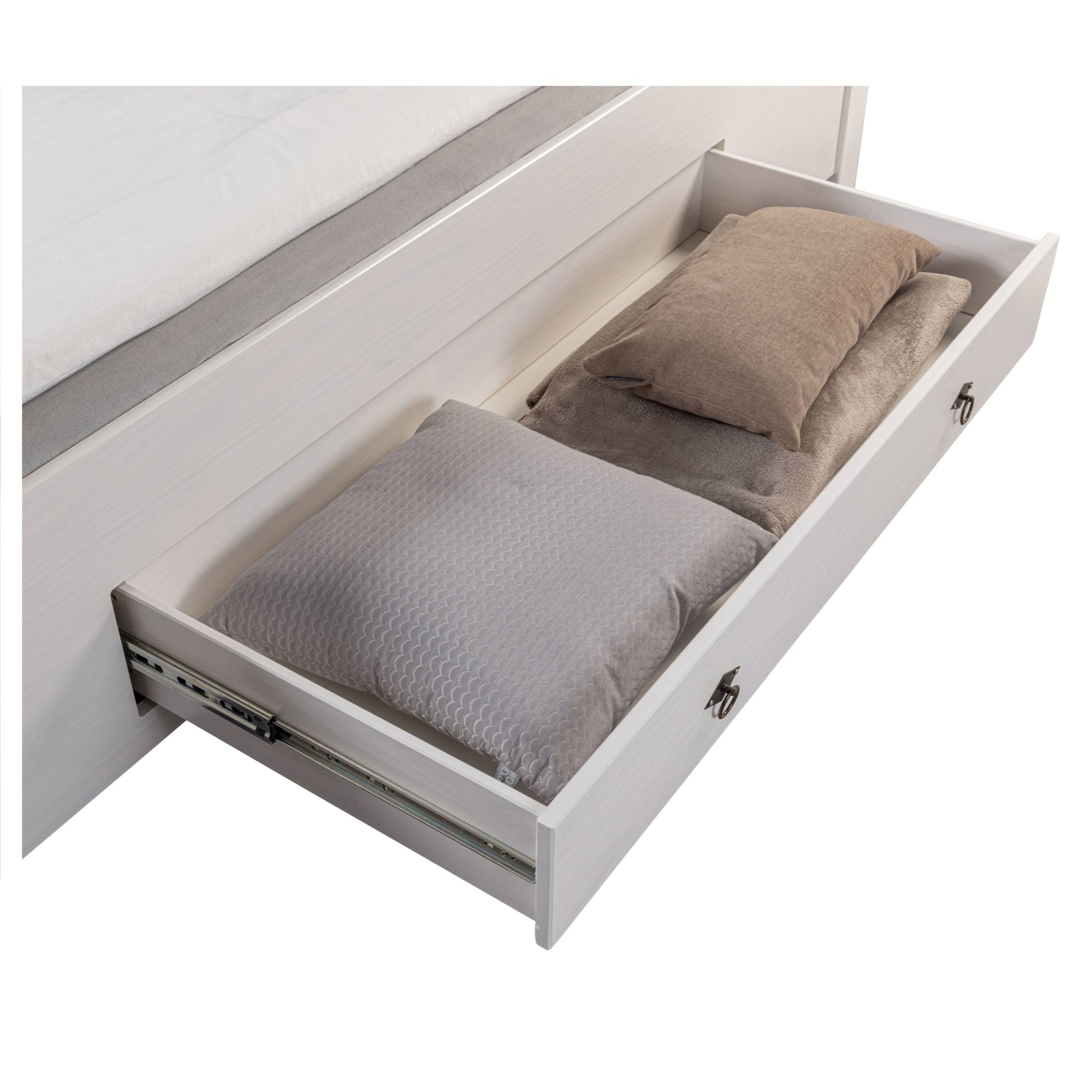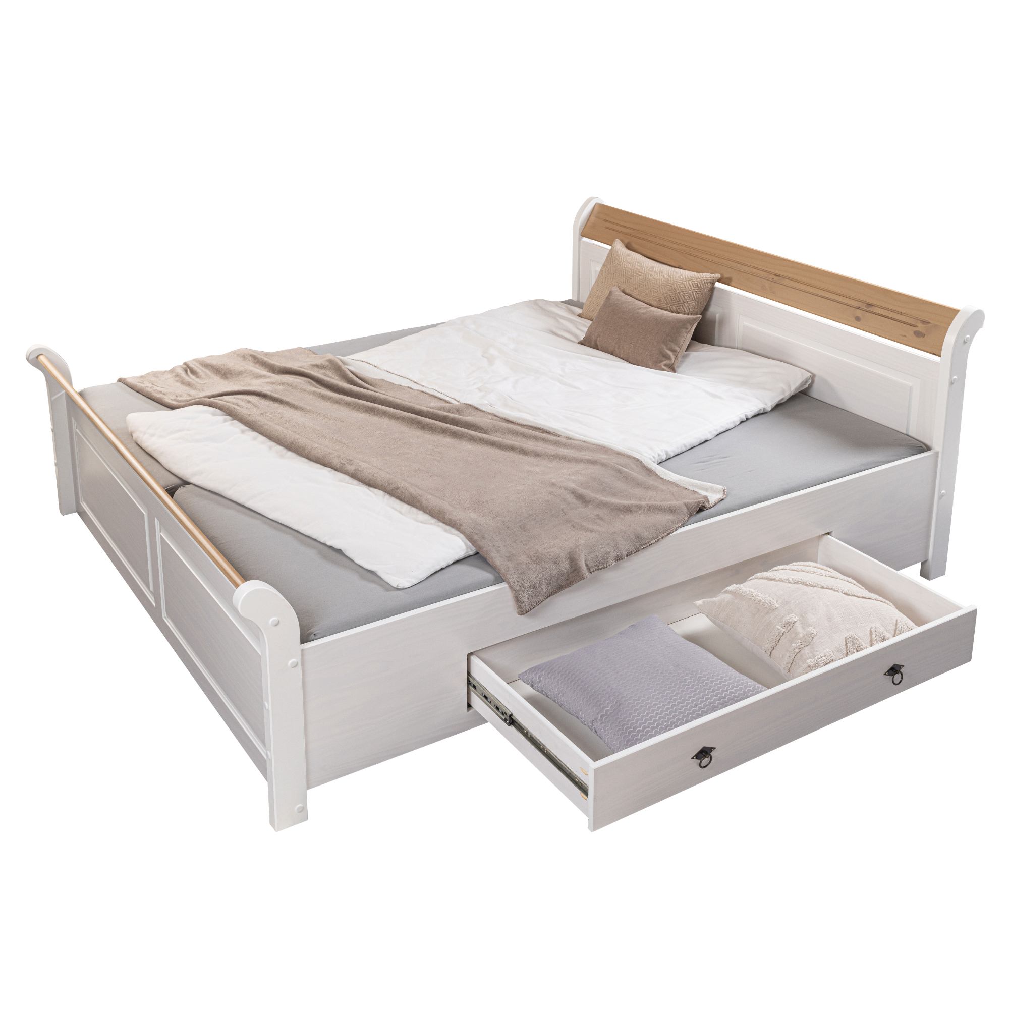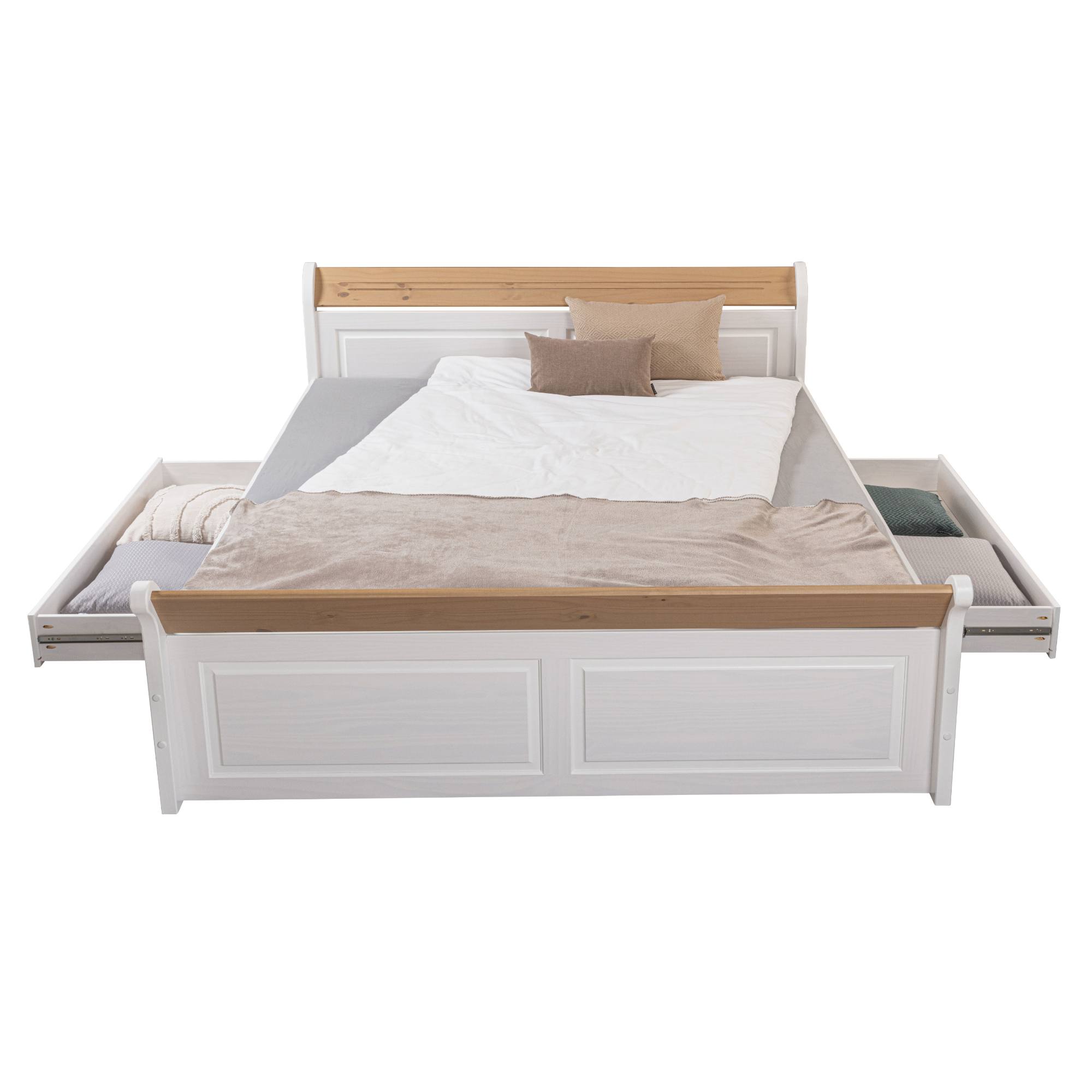 Vyrobená je z masívneho borovicového dreva, ktoré nábytku dodáva potrebnú pevnosť, odolnosť a predlžuje jeho životnosť. Pohodlné opretie si môžete dopriať vďaka vysokému čelu, ktoré je rovnako ako čelo na nohách doplnené o dekoratívne frézovanie. Na uloženie aktuálne nepoužívaných predmetov môžete využiť praktické posteľné zásuvky s kovovými rúčkami.