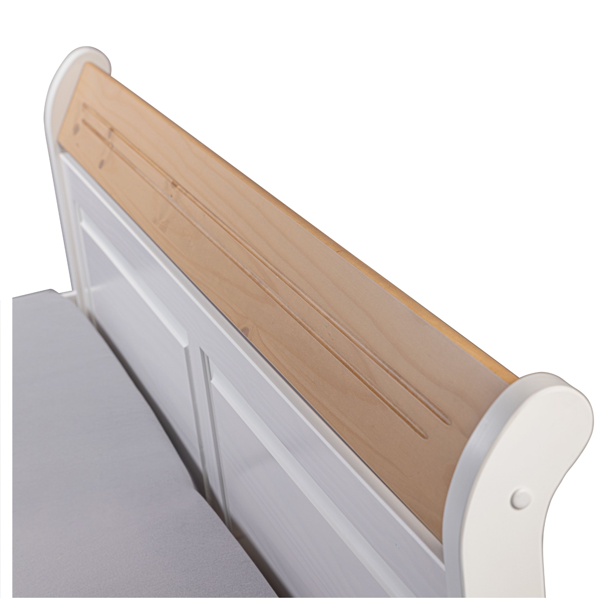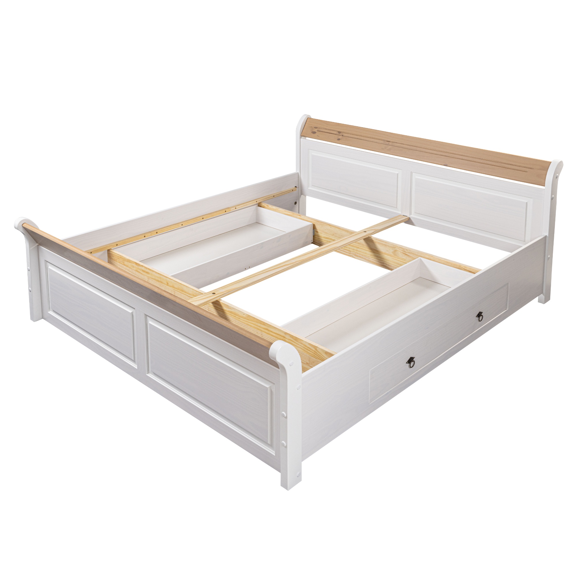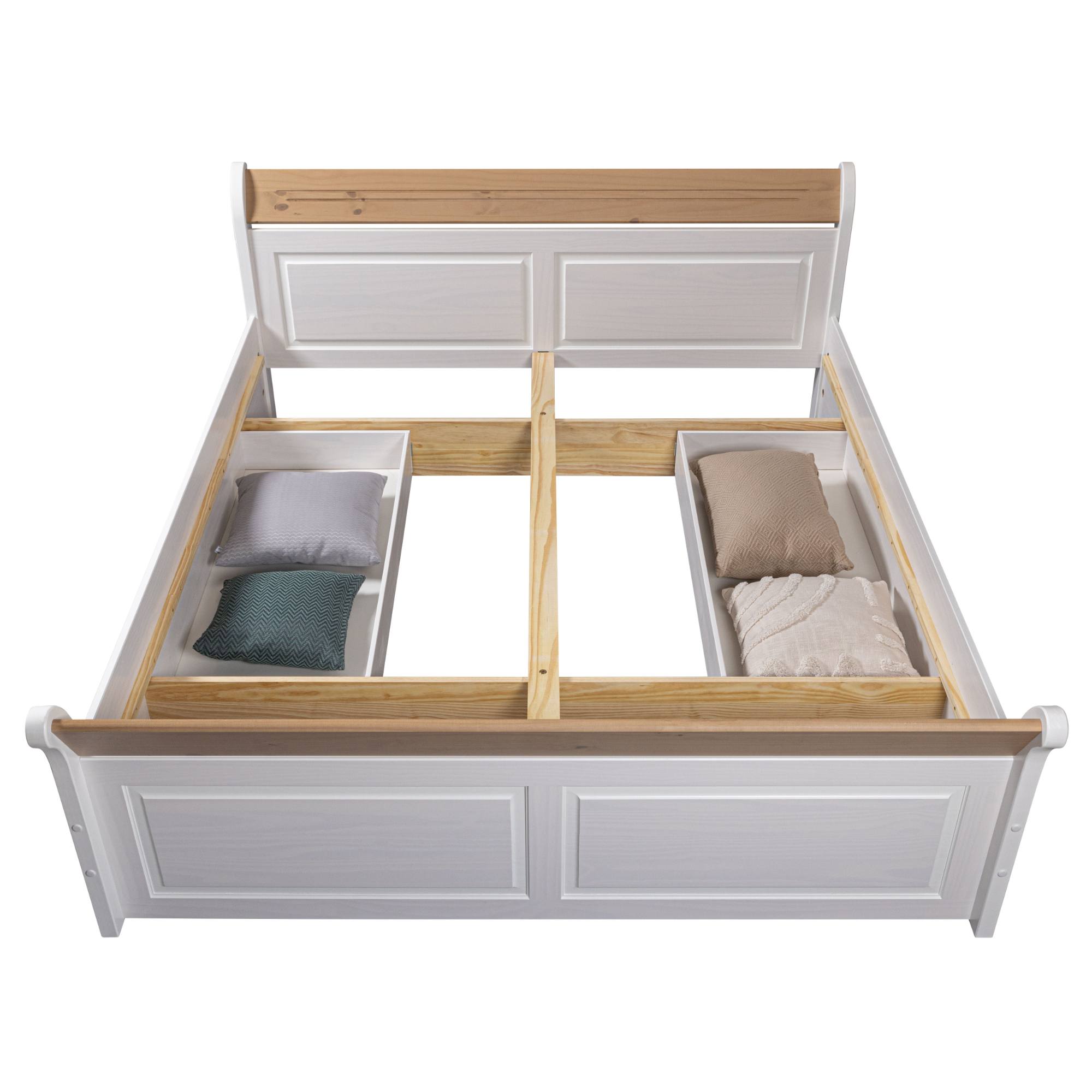 Vyrobená je z masívneho borovicového dreva, ktoré nábytku dodáva potrebnú pevnosť, odolnosť a predlžuje jeho životnosť. Pohodlné opretie si môžete dopriať vďaka vysokému čelu, ktoré je rovnako ako čelo na nohách doplnené o dekoratívne frézovanie. Na uloženie aktuálne nepoužívaných predmetov môžete využiť praktické posteľné zásuvky s kovovými rúčkami.