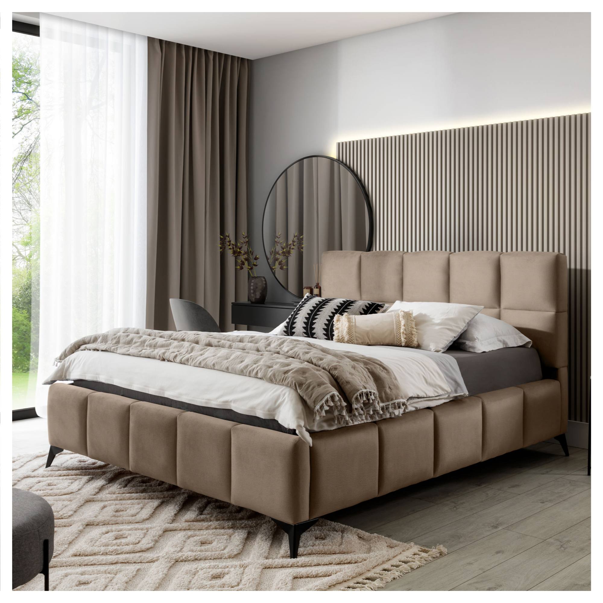 Čalúnená manželská posteľ MISTY vyhotovená v štýlovom, modernom spracovaní vám zaistí komfortný odpočinok a zároveň zútulní vašu spálňu.
