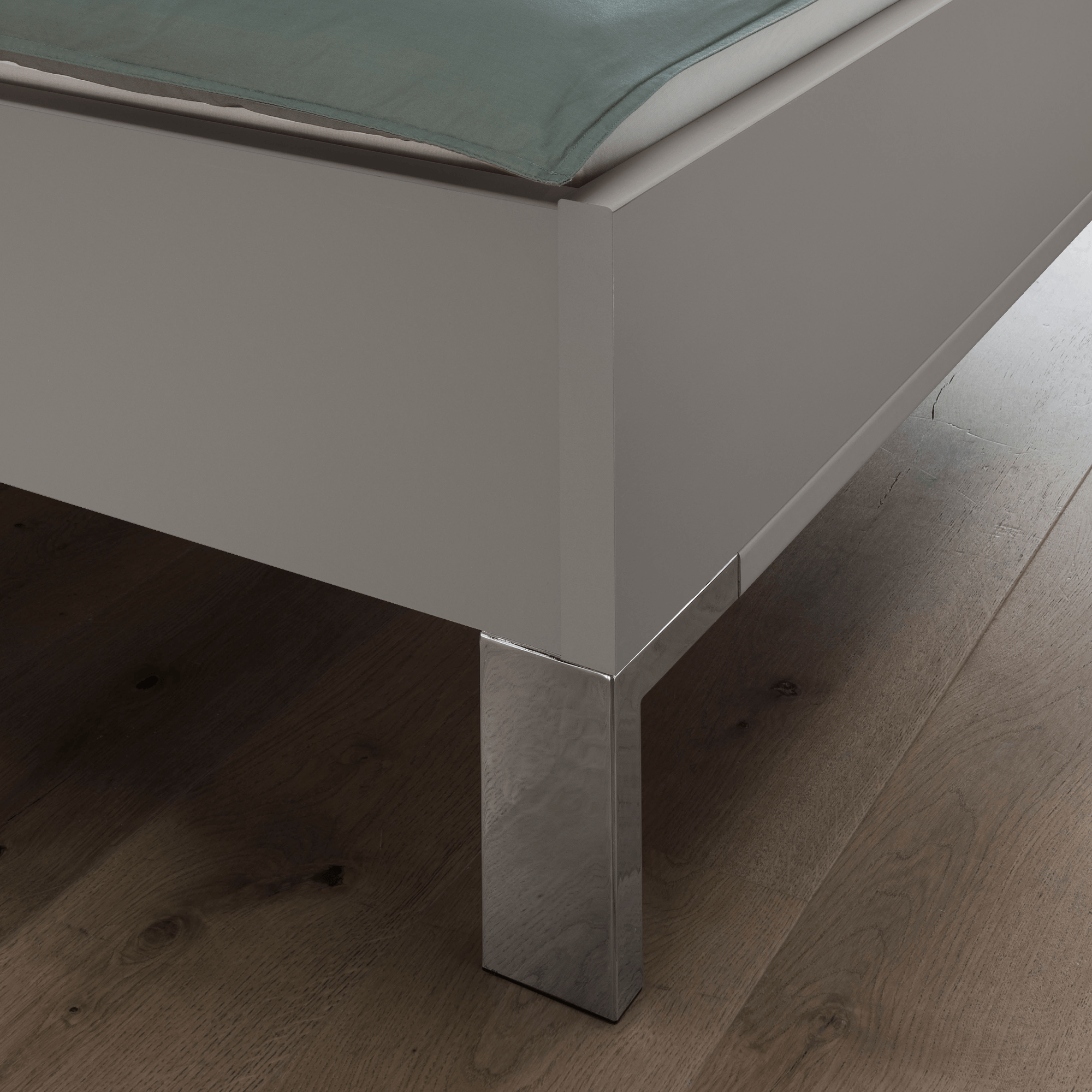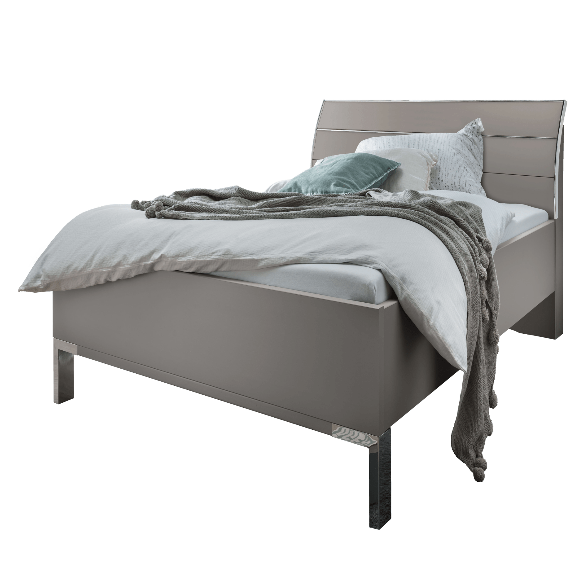 Posteľ je vyrobená z laminovaného dreveného materiálu vo vyhotovení so striebornými chrómovými lištami, ktoré zaujímavo dopĺňajú jej futuristický vzhľad. Doplnená je o výrazné, prehnuté čelo na pohodlnejšie opretie počas odpočinku po náročnom dni. *Výšku lôžka je možné variabilne nastaviť**. Posteľ je dodávaná bez roštu a matraca. Ideálny matrac a rošt si môžete vybrať z našej širokej ponuky a zostaviť si tak komfortné lôžko presne podľa vašich predstáv.