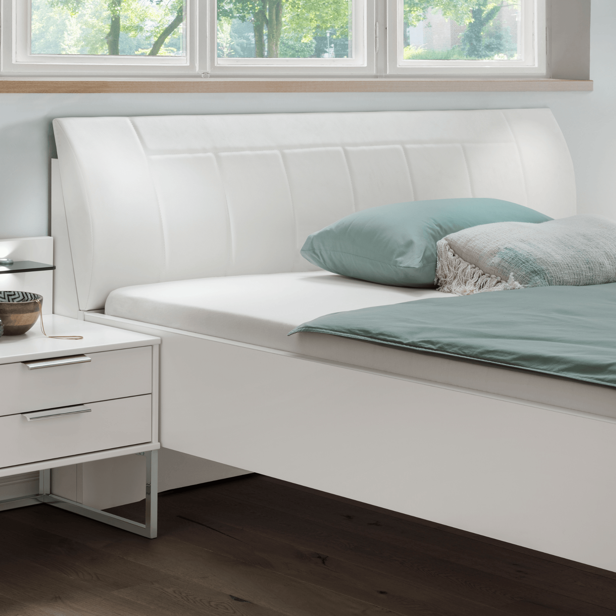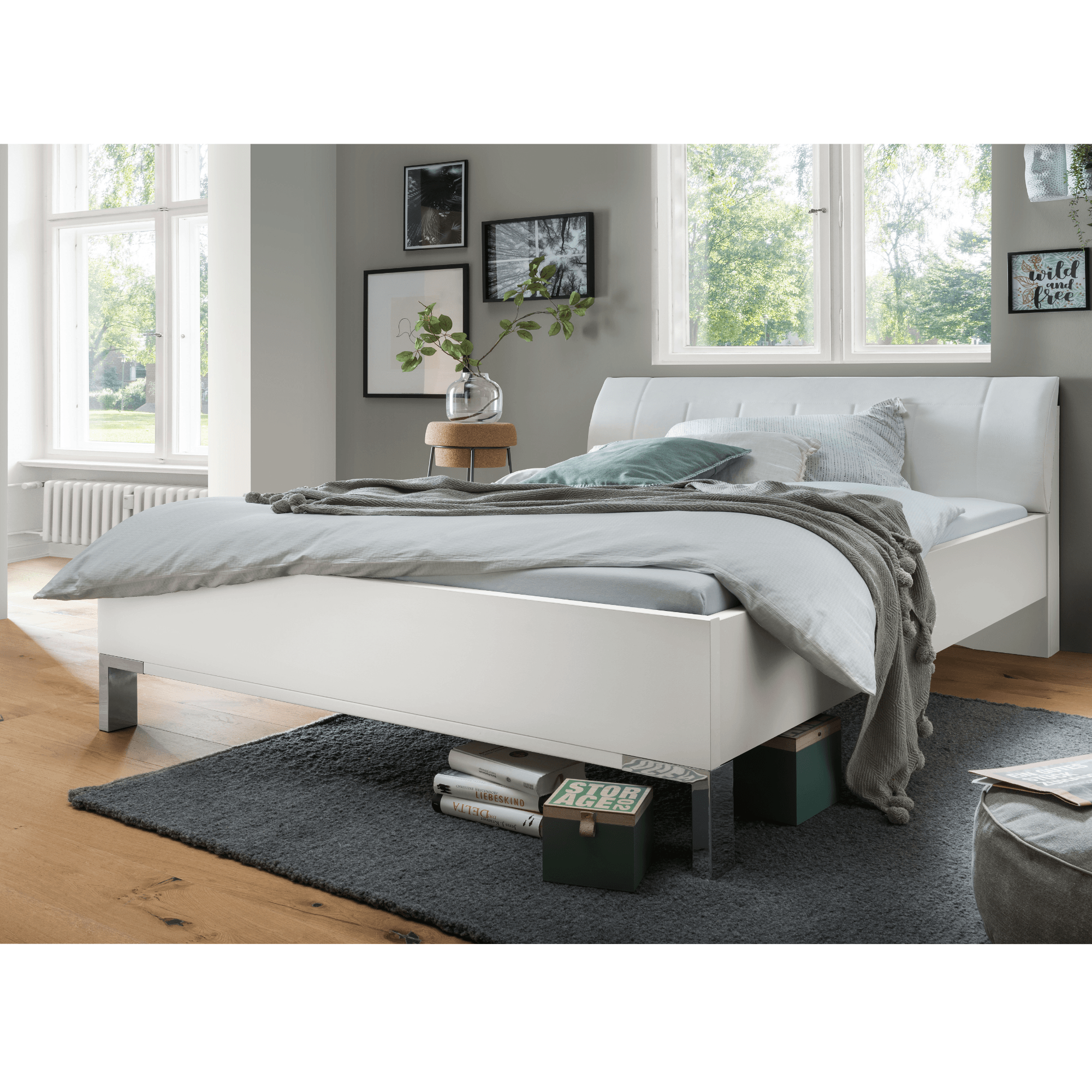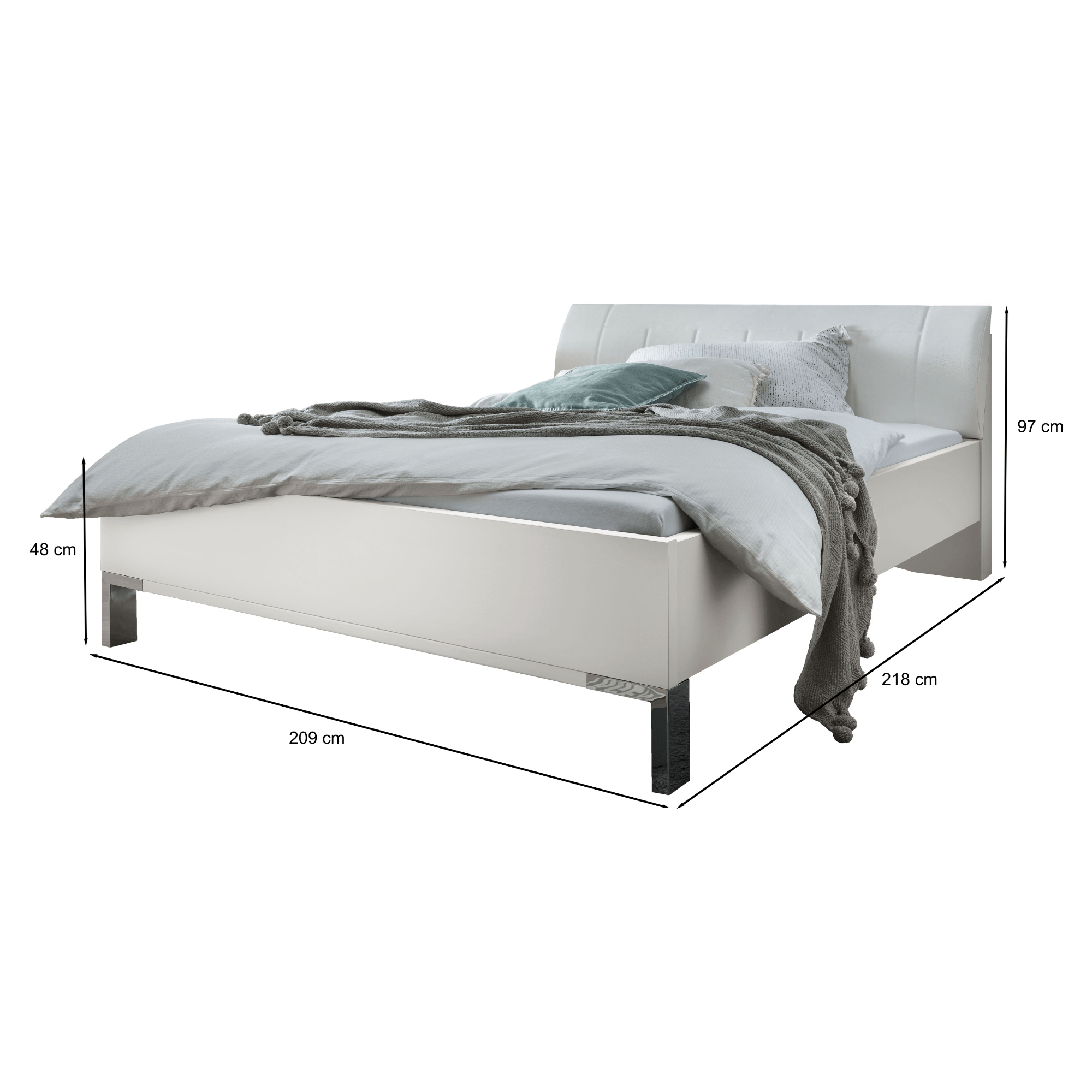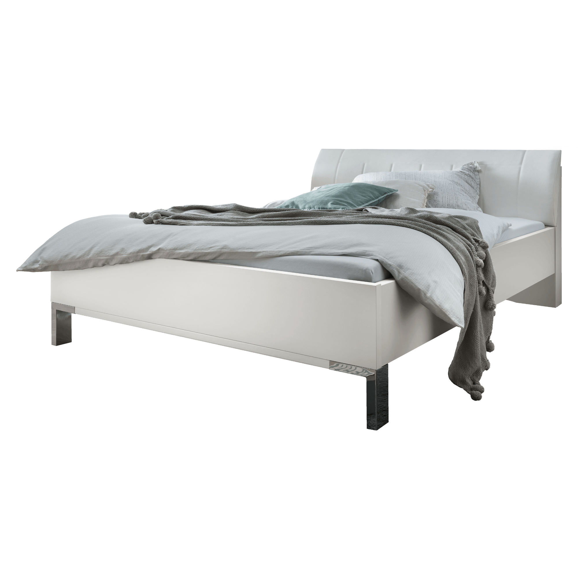 Posteľ je vyrobená z laminovaného dreveného materiálu, vďaka ktorému sa vám bude posteľ ľahko udržiavať. Vysoké, prehnuté čelo čalúnené syntetickou kožou v bielej farbe je nielen vzhľadovo atraktívnym prvkom, ale predovšetkým ideálnym pomocníkom na pohodlné opretie. Výšku lôžka si môžete variabilne nastaviť výberom zo 4 polôh. Posteľ je dodávaná bez matraca a roštu, ale určite si vyberiete z nášho širokého sortimentu a vytvoríte kompletné lôžko presne podľa vašich predstáv.