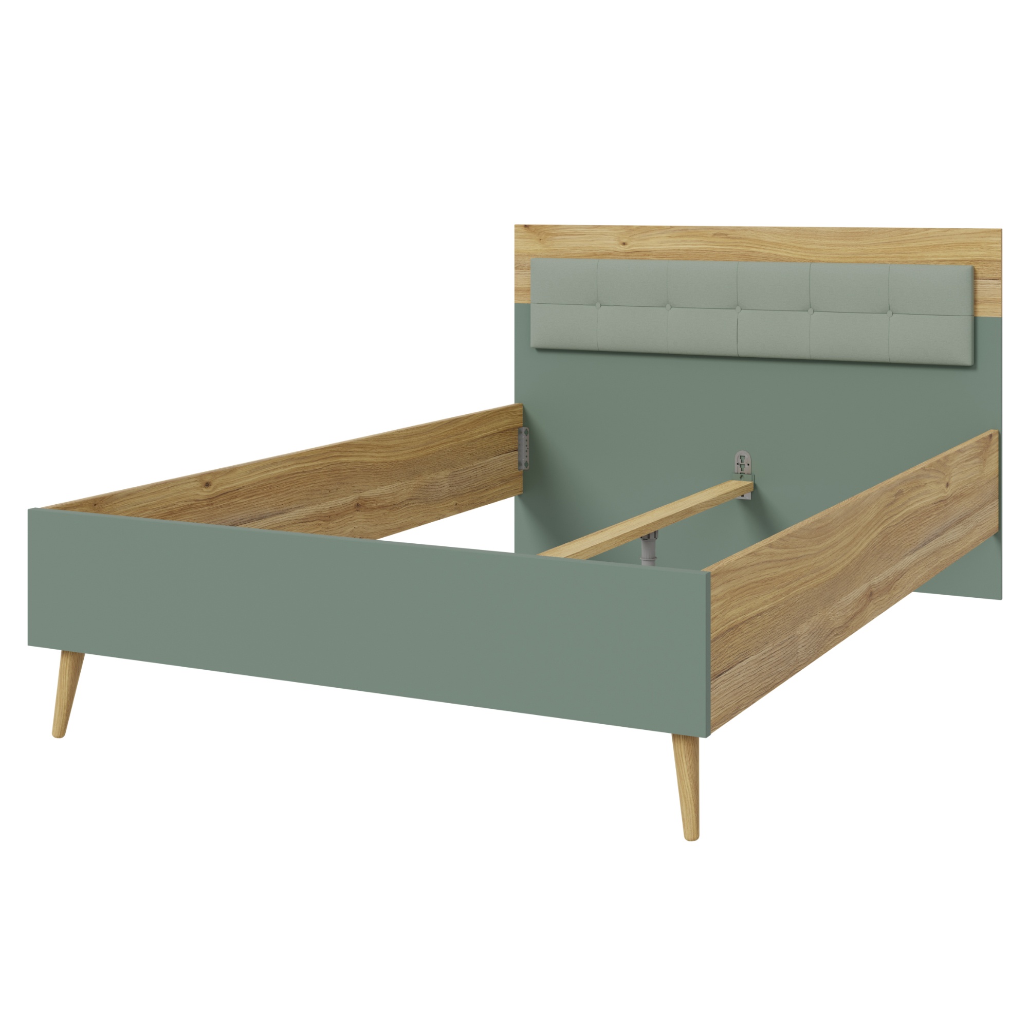 Posteľ NESRYN - šalviová zelená/dub mauvella, 140x200 cm