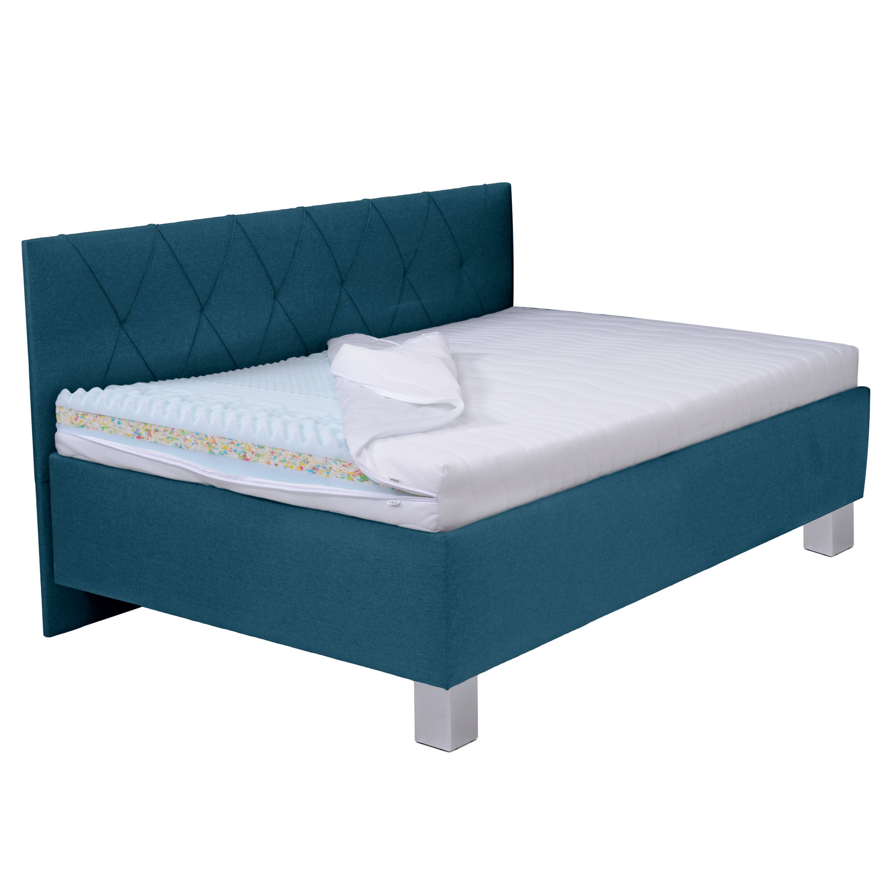 Posteľ s bočným čelom a matracom AFRODITE - petrolejová, 140x200 cm