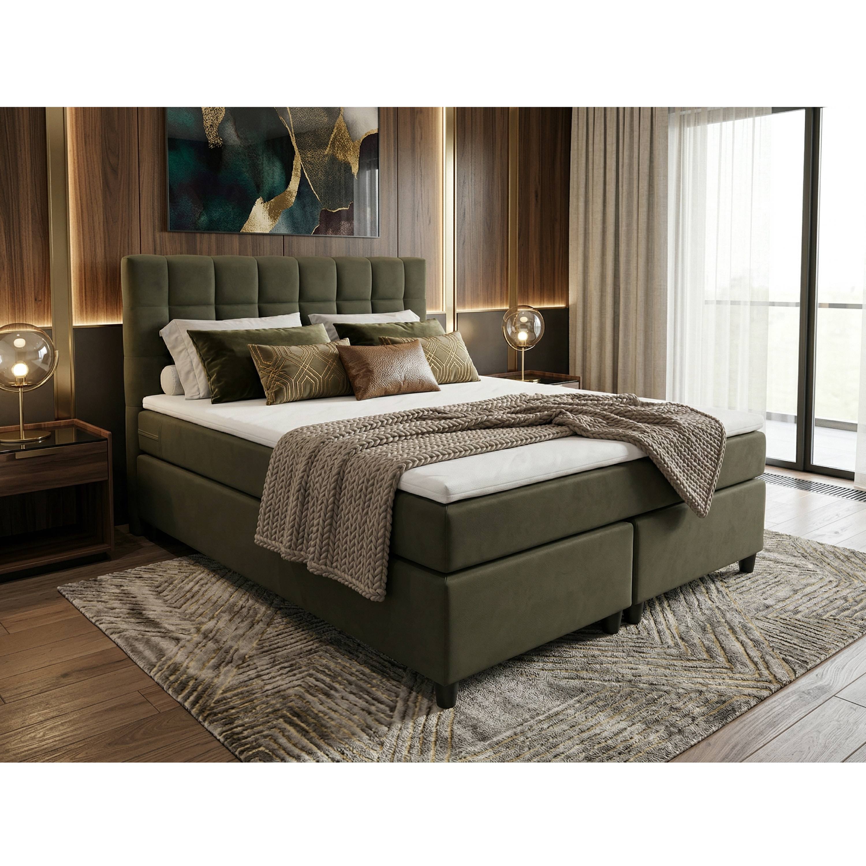 Posteľ s matracom a topperom BIRNA 2 BSB - olivová, 140x200 cm