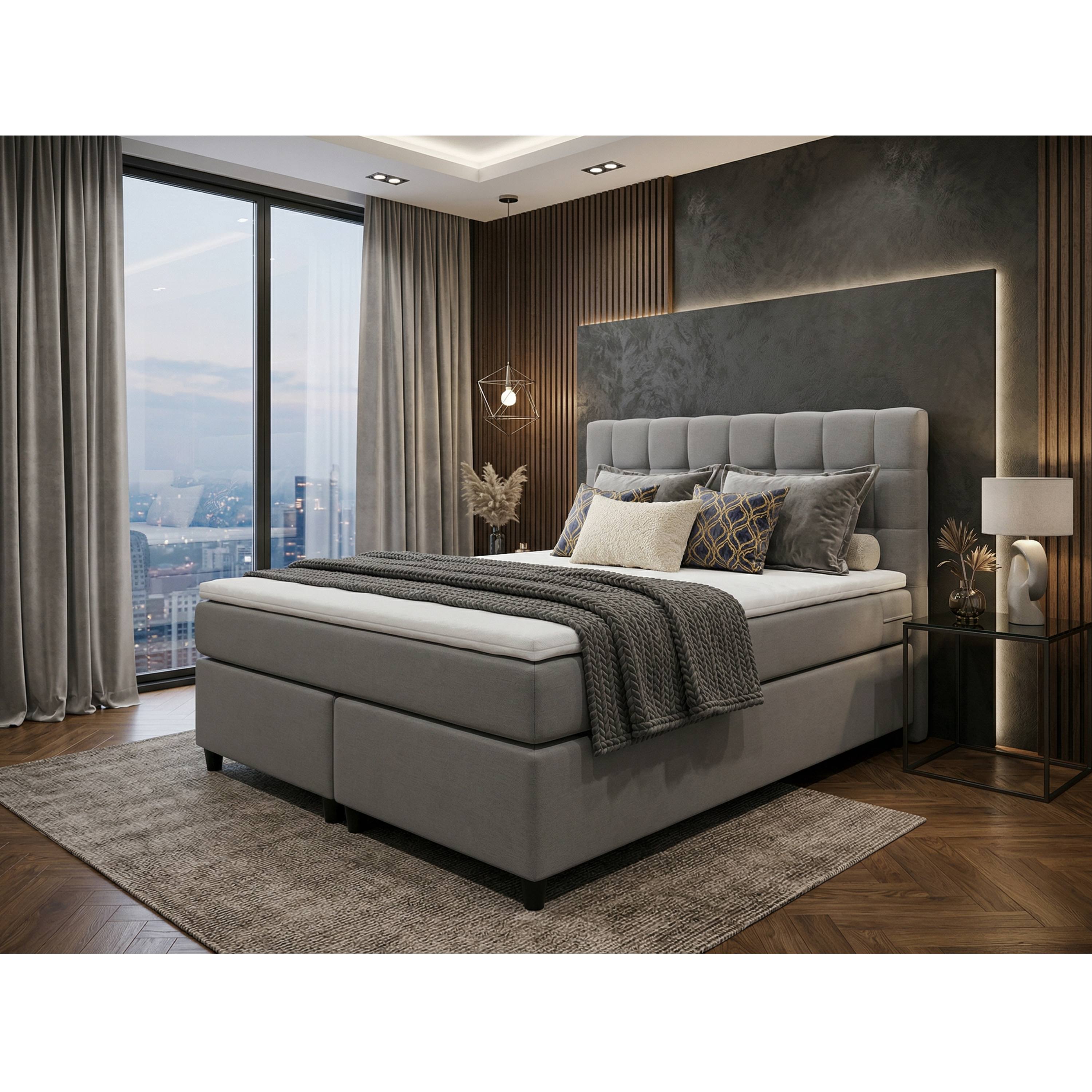 Posteľ s matracom a topperom BIRNA 2 BSB - svetlosivá, 140x200 cm