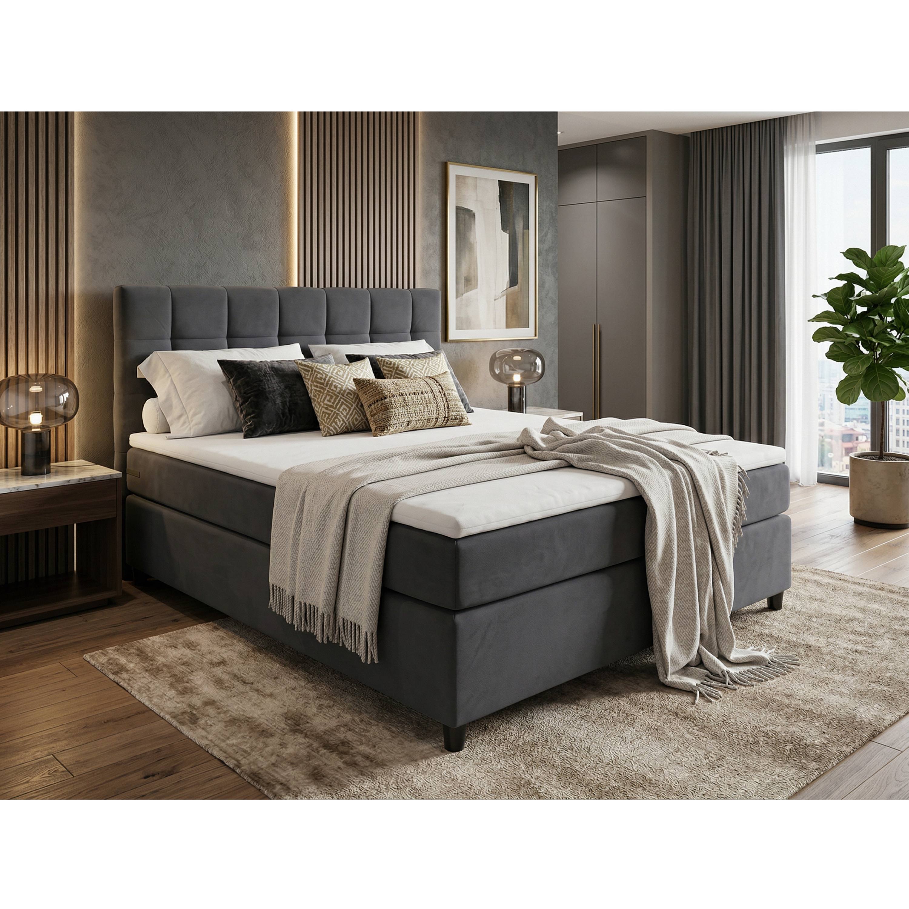 Posteľ s matracom a topperom BIRNA 2 BSB - tmavosivá, 120x200 cm