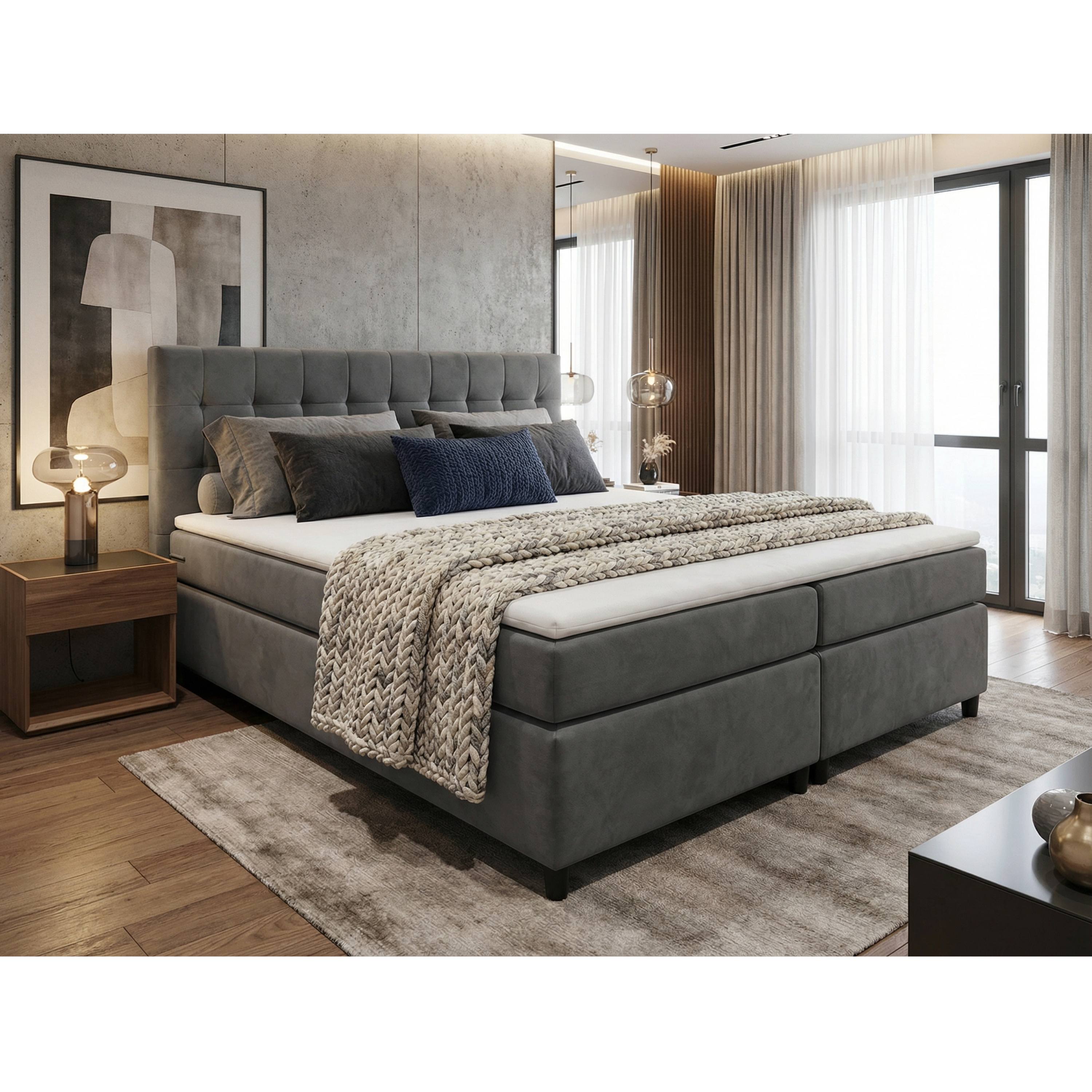 Posteľ s matracom a topperom BIRNA 2 BSB - tmavosivá, 160x200 cm