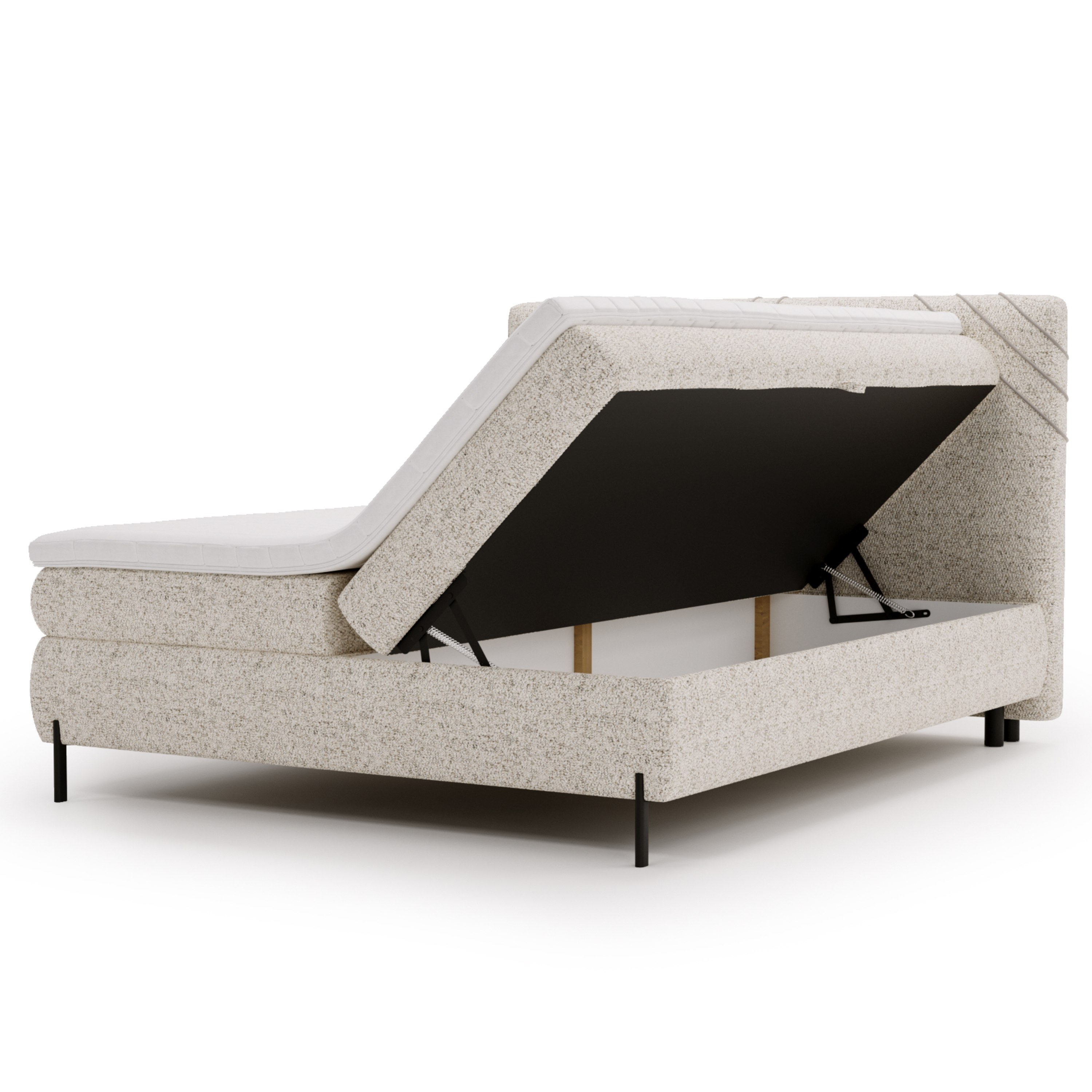 Na uloženie aktuálne nepoužívanej posteľnej bielizne a ďalších predmetov môžete využiť aj úložný priestor v ráme postele, ktorý je ľahko prístupný vďaka bočnému výklopu matracov.