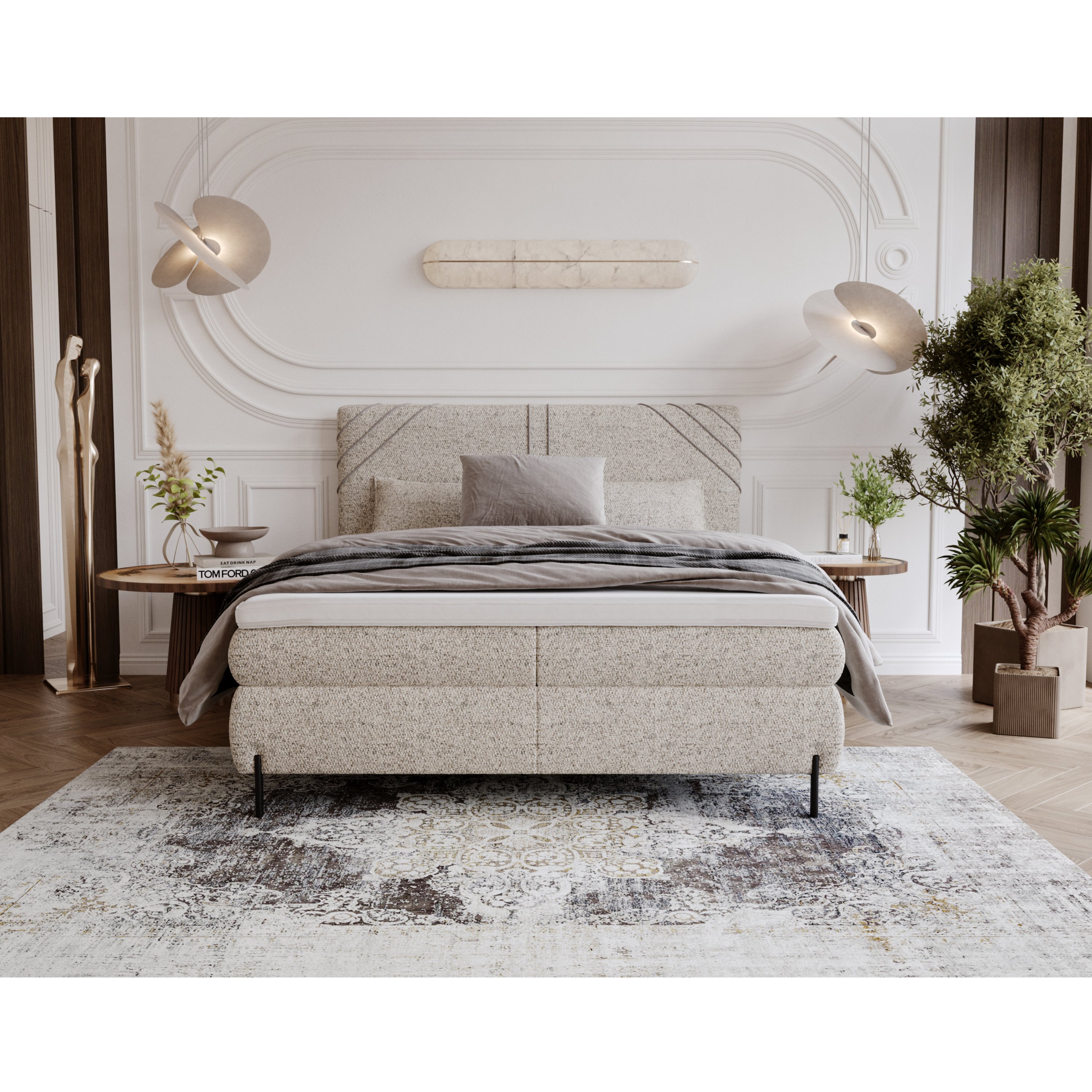 - Povrch postele: Čalúnený