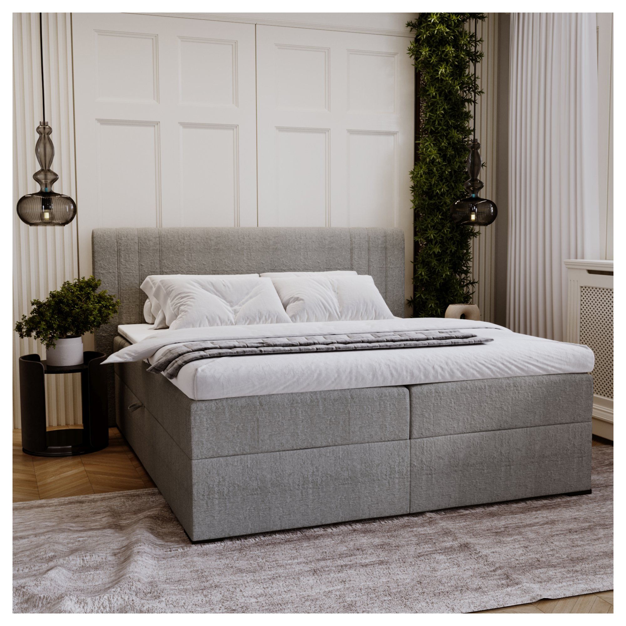Posteľ s matracom a topperom PARIS - sivá, 180x200 cm