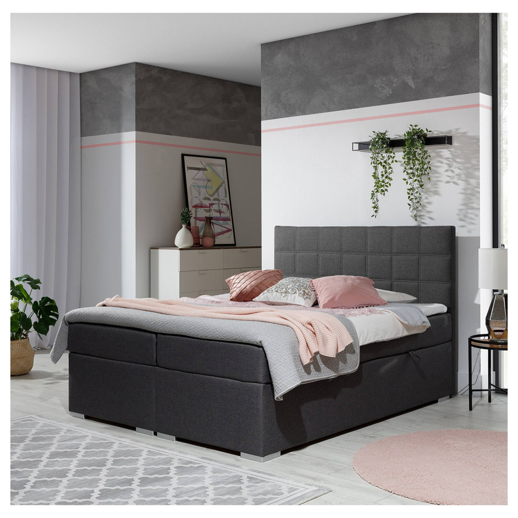 Posteľ s matracom a topperom ROSIE - tmavosivá, 180x200 cm