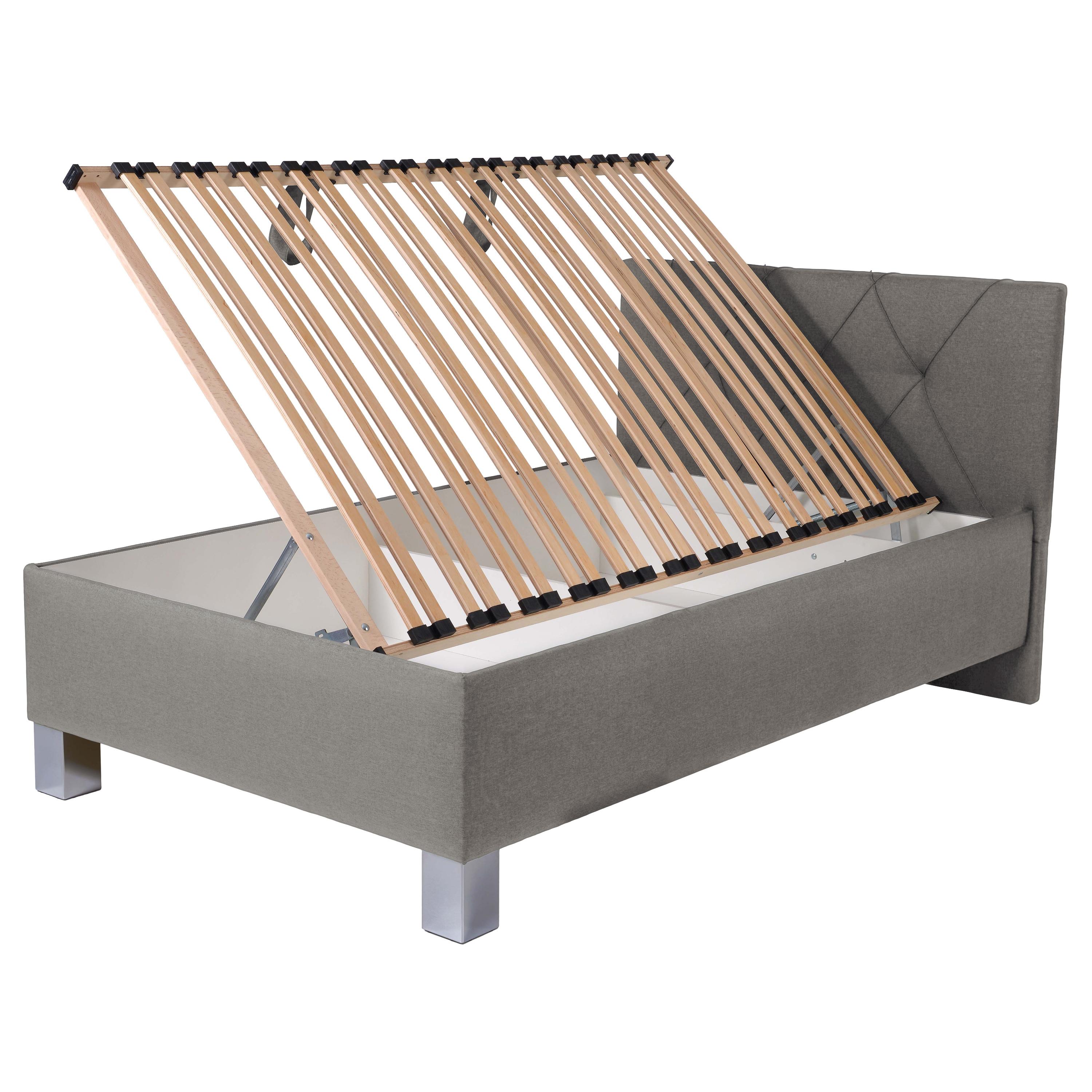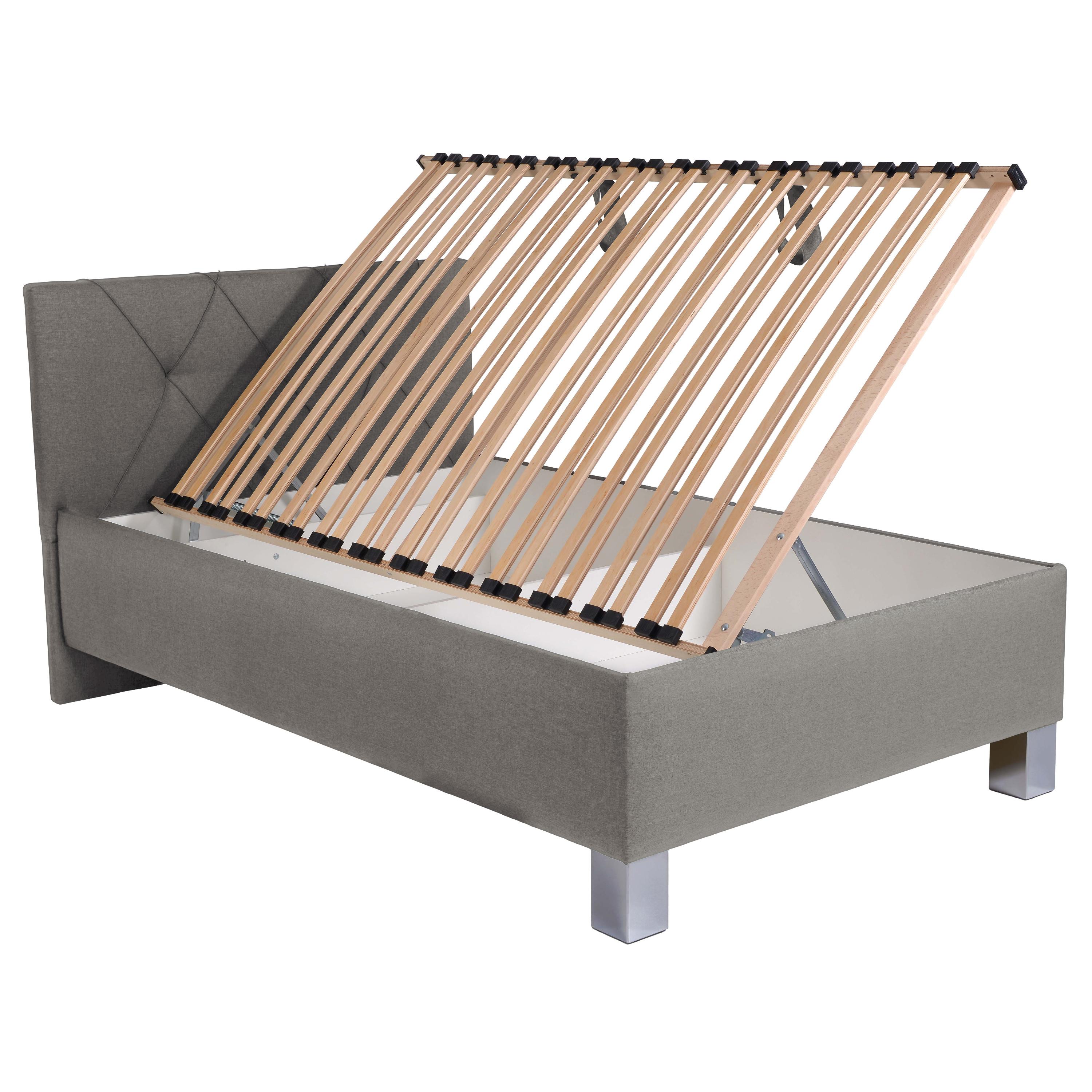 Konštrukcia je potiahnutá na dotyk príjemnou hladkou tkaninou zo 100% polyesteru. Vďaka vysokému čelu s dekoratívnym prešívaním a čalúnnickými gombíkmi sa môžete pohodlne oprieť pri čítaní obľúbenej knihy či sledovaní filmu. Čelo tiež ochráni stenu za posteľou pred odretím či ušpinením. Posteľ je vybavená kvalitným lamelovým roštom s lamelami so zvýšenou pevnosťou a vynikajúcou pružnosťou. Pomáhajú tak k dlhšej životnosti celej postele a zlepšujú vlastnosti matraca. Pod roštom nájdete v ráme postele úložný priestor na lôžkoviny prístupný po bočnom výklope roštu. Počas montáže sa môžete sami rozhodnúť či sa rošt bude vyklápať na ľavú alebo pravú stranu. Posteľ je dodávaná vrátane pohodlného polyuretánového matraca s ideálnymi termoregulačnými vlastnosťami. Jednoduchým otočením si môžete vybrať tuhosť matraca medzi tvrdšou a mäkšou stranou. Poťah matraca je snímateľný a prateľný na 30 °C. Celkový vzhľad dotvárajú masívne, kovové nohy s výškou 15 cm umožňujúce ľahké upratovanie pod posteľou.