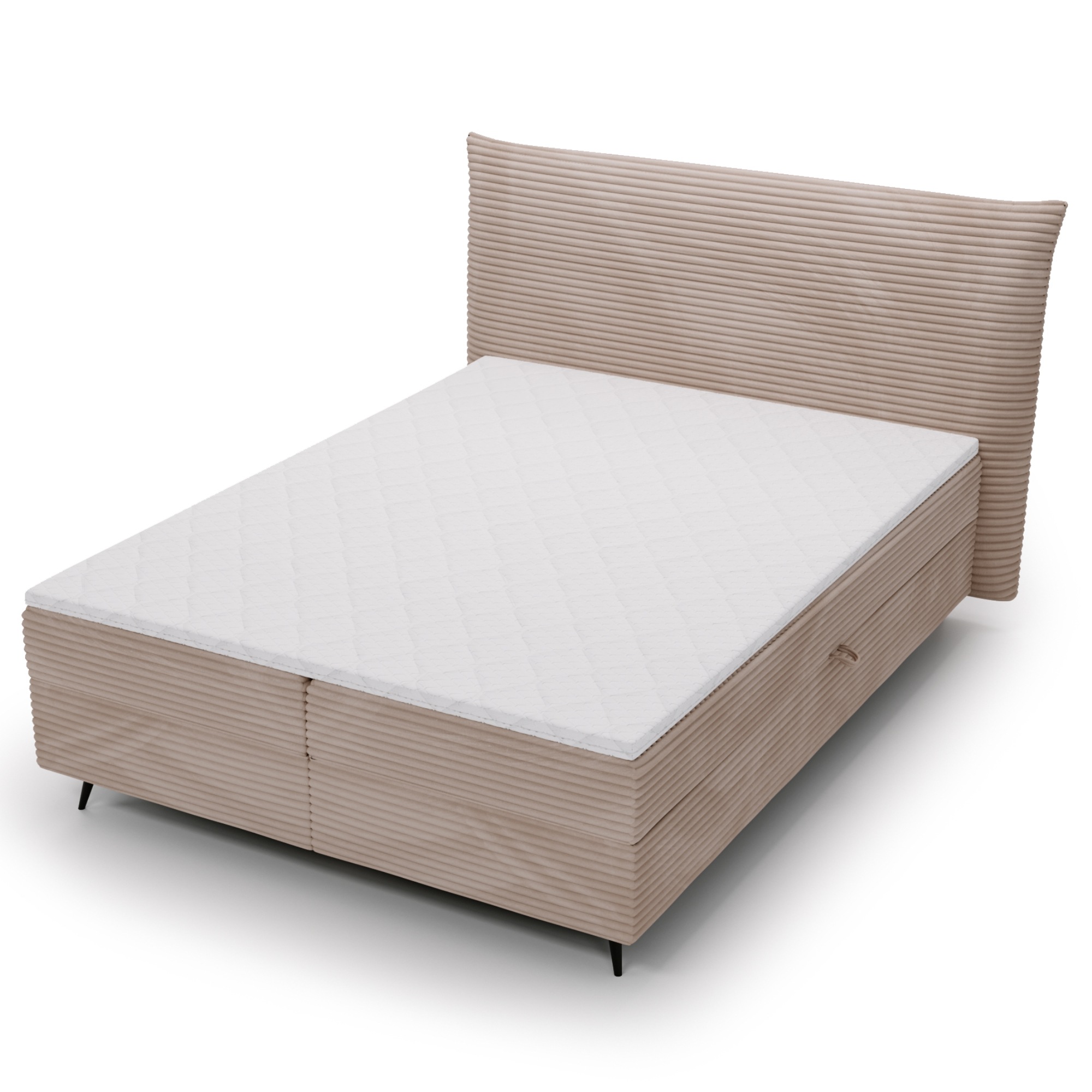 Posteľ je čalúnená príjemnou tkaninou s hustým vlasom a rebrovaným povrchom v jednofarebnom vyhotovení. Dodávaná je vrátane 2 matracov s bonell-pružinovým jadrom, ktoré sa prispôsobia tvaru tela a poskytujú optimálnu oporu počas spánku. Pre ešte väčší komfort sú pružinové matrace doplnené o ochranný topper, ktorý zjednocuje ložnú plochu a predlžuje životnosť matracov.