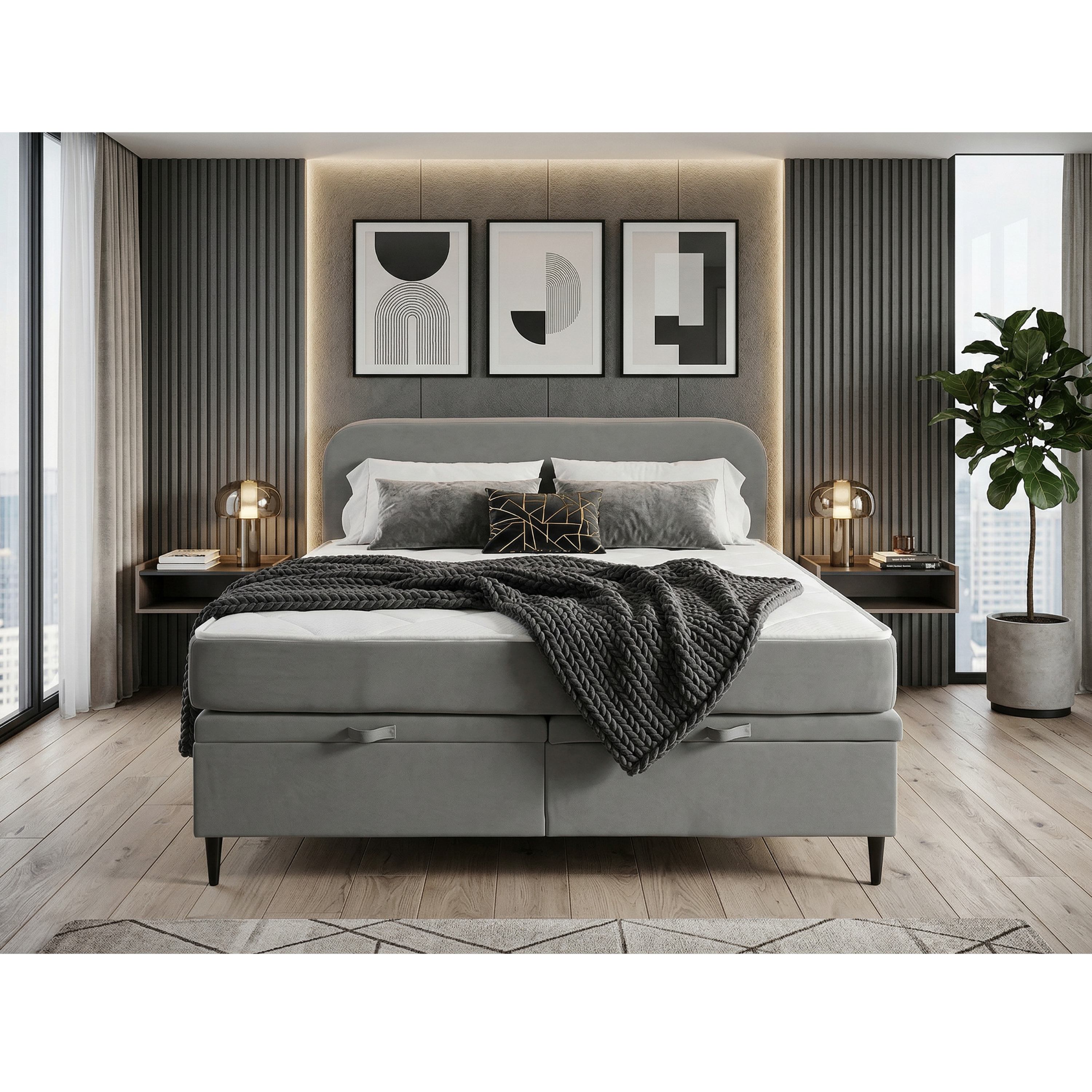 Posteľ je dodávaná vrátane 7-zónovej matrace s jadrom z taštičkových pružín v kombinácii s penovou vrstvou. Na skladovanie aktuálne nepoužívaných lôžkovín a ďalších predmetov môžete využiť členený úložný priestor v ráme postele, ktorý je ľahko prístupný vďaka čelnému výklopu matrace.