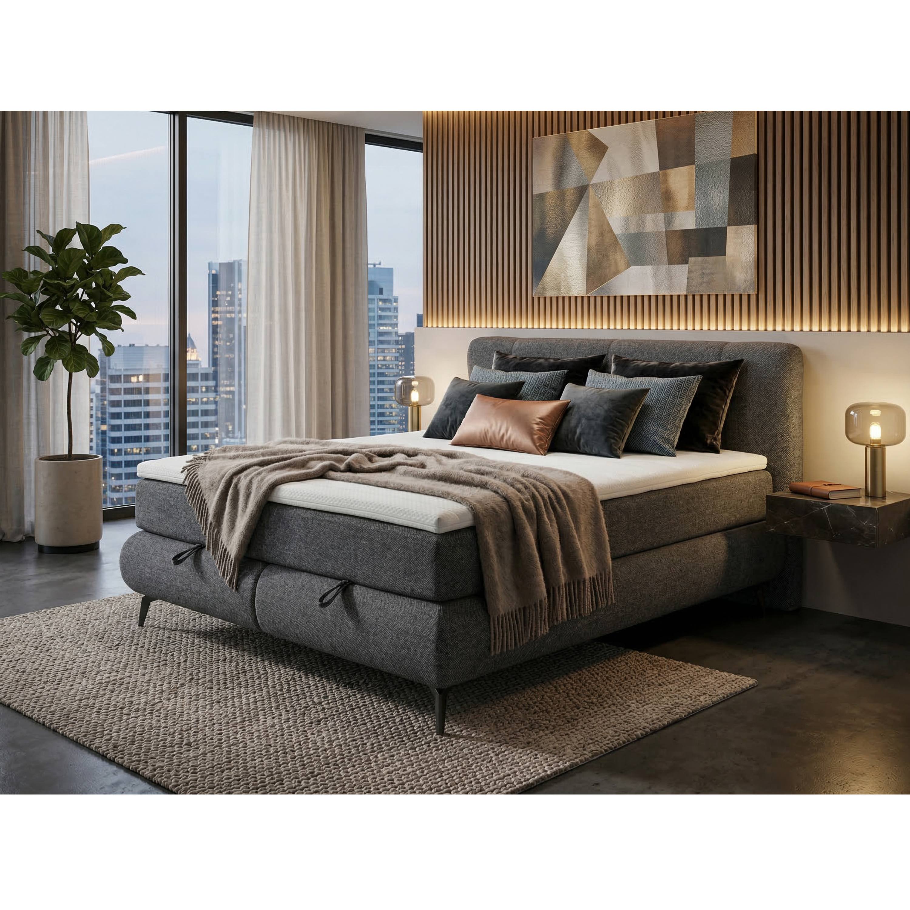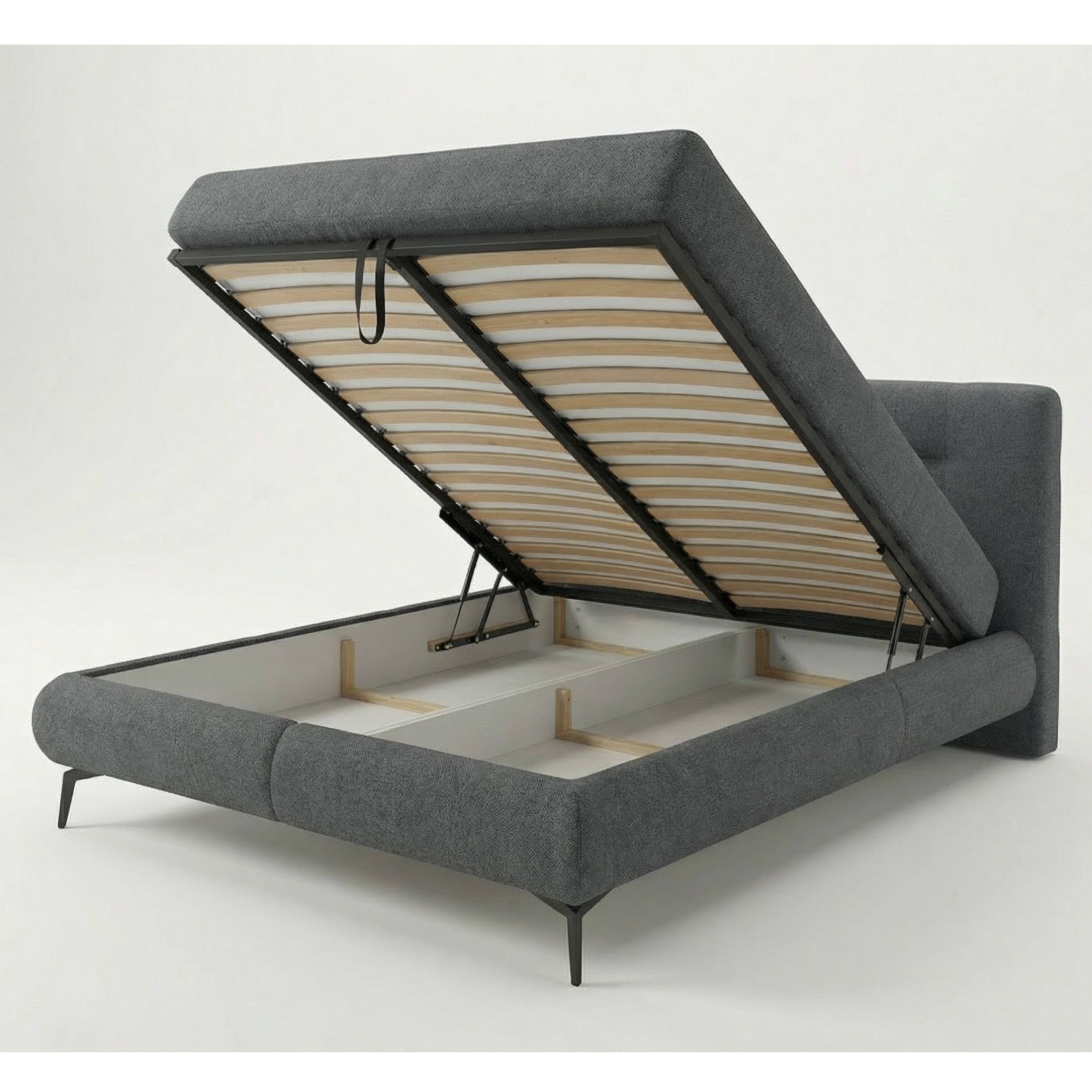 Posteľ je dodávaná vrátane 9-zónového matraca s jadrom z taštičkových pružín v kombinácii s penovou vrstvou a kokosovými vláknami. Na uskladnenie aktuálne nepoužívaných lôžkovín a ďalších predmetov môžete využiť úložný priestor v ráme postele, ktorý je ľahko prístupný vďaka čelnému výklopu matraca. Celkový vzhľad postele dopĺňajú kovové nohy v čiernej farbe, ktoré zároveň uľahčujú upratovanie pod nábytkom.